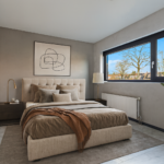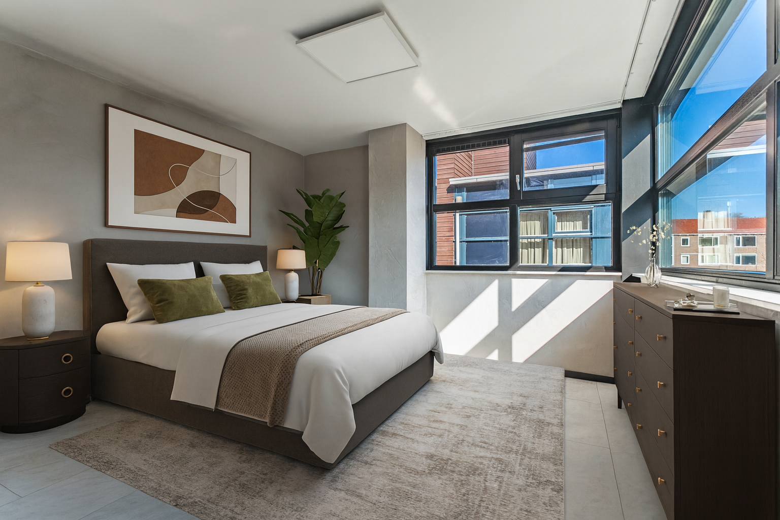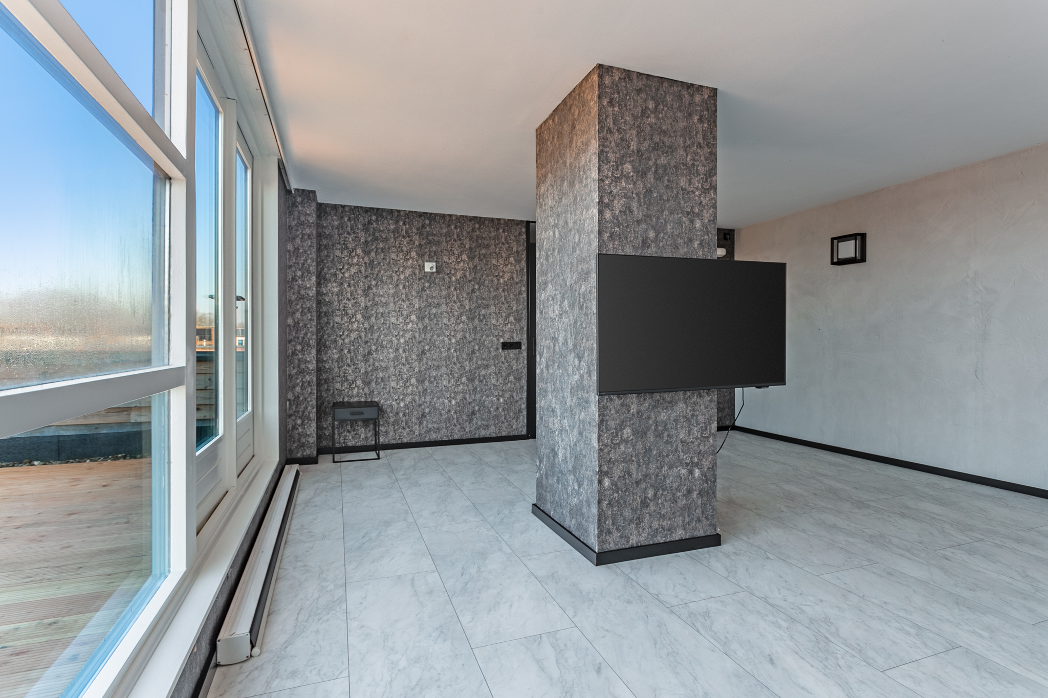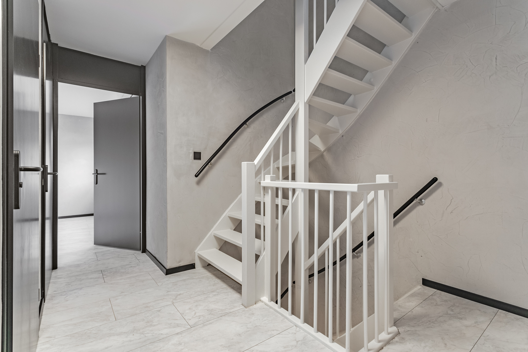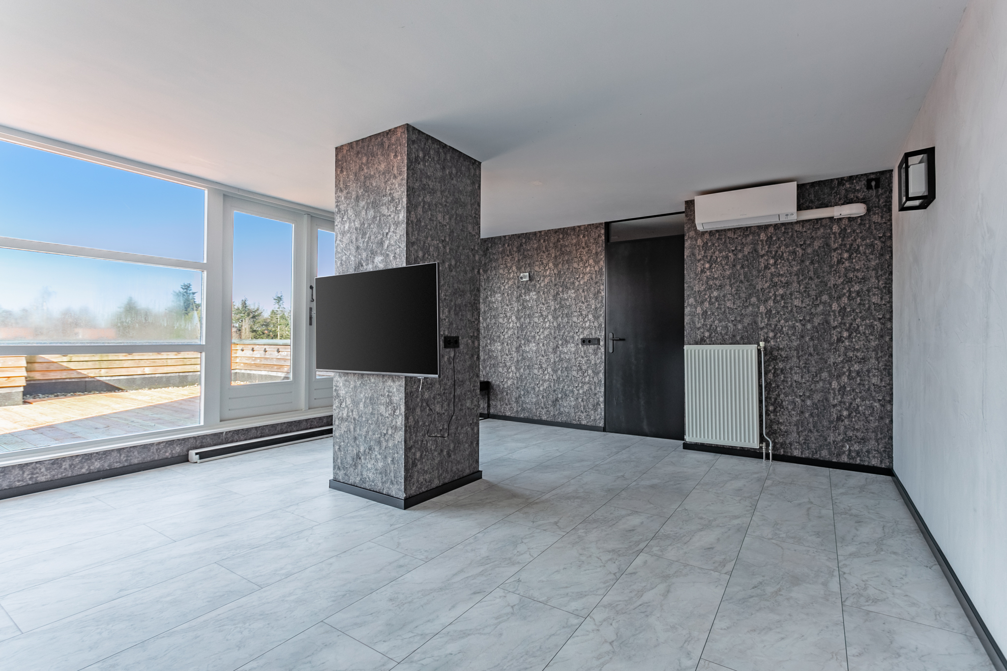 Hier is een vierde royale slaap-/werkkamer aanwezig en toegang tot het platte dak met een dakterras. Deze woning is ten opzichte van diverse vergelijkbare woning al voorzien van deze extra grote kamer. Inmiddels zijn er woningen die een nog grotere opbouw hebben gerealiseerd.