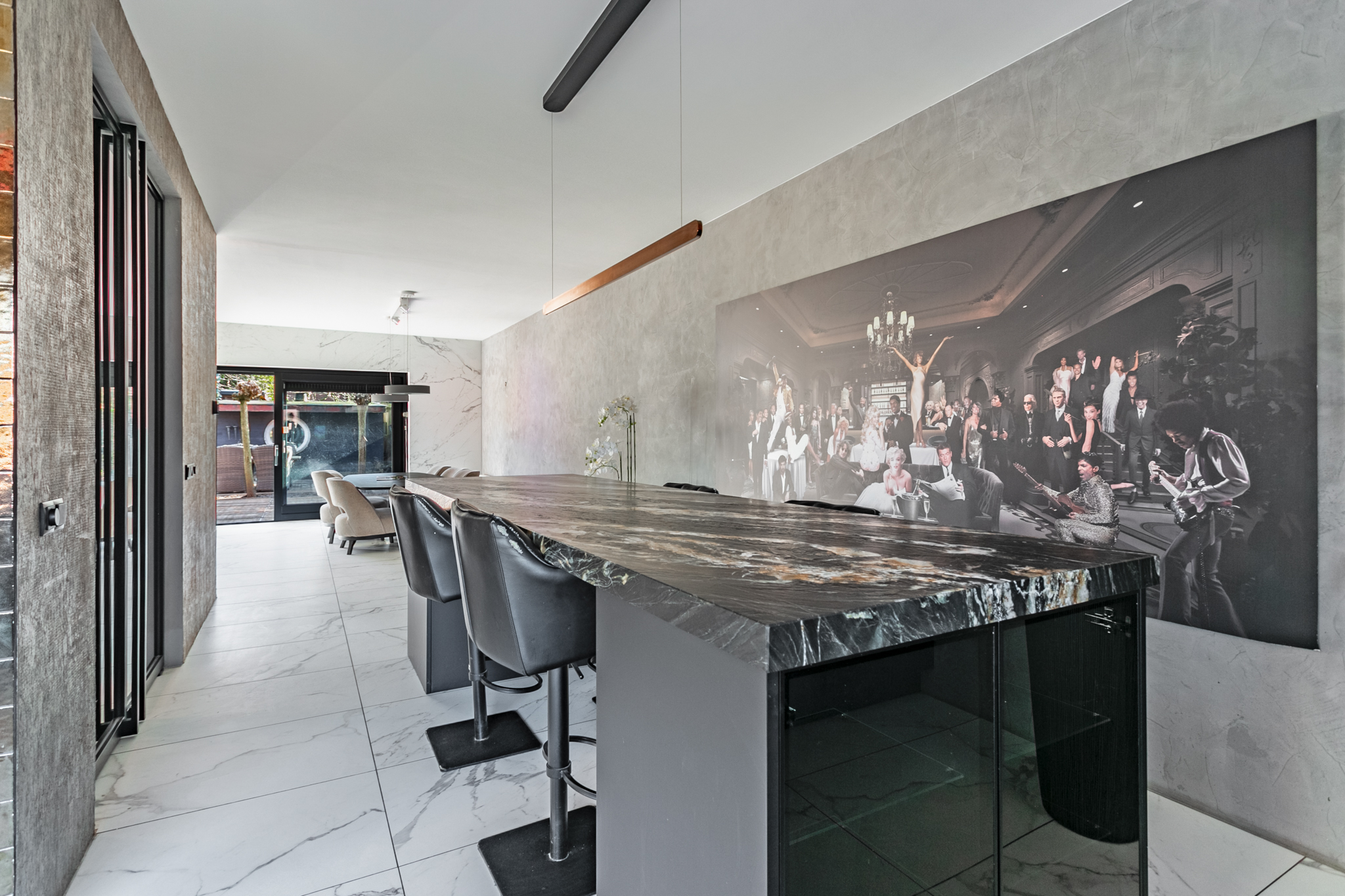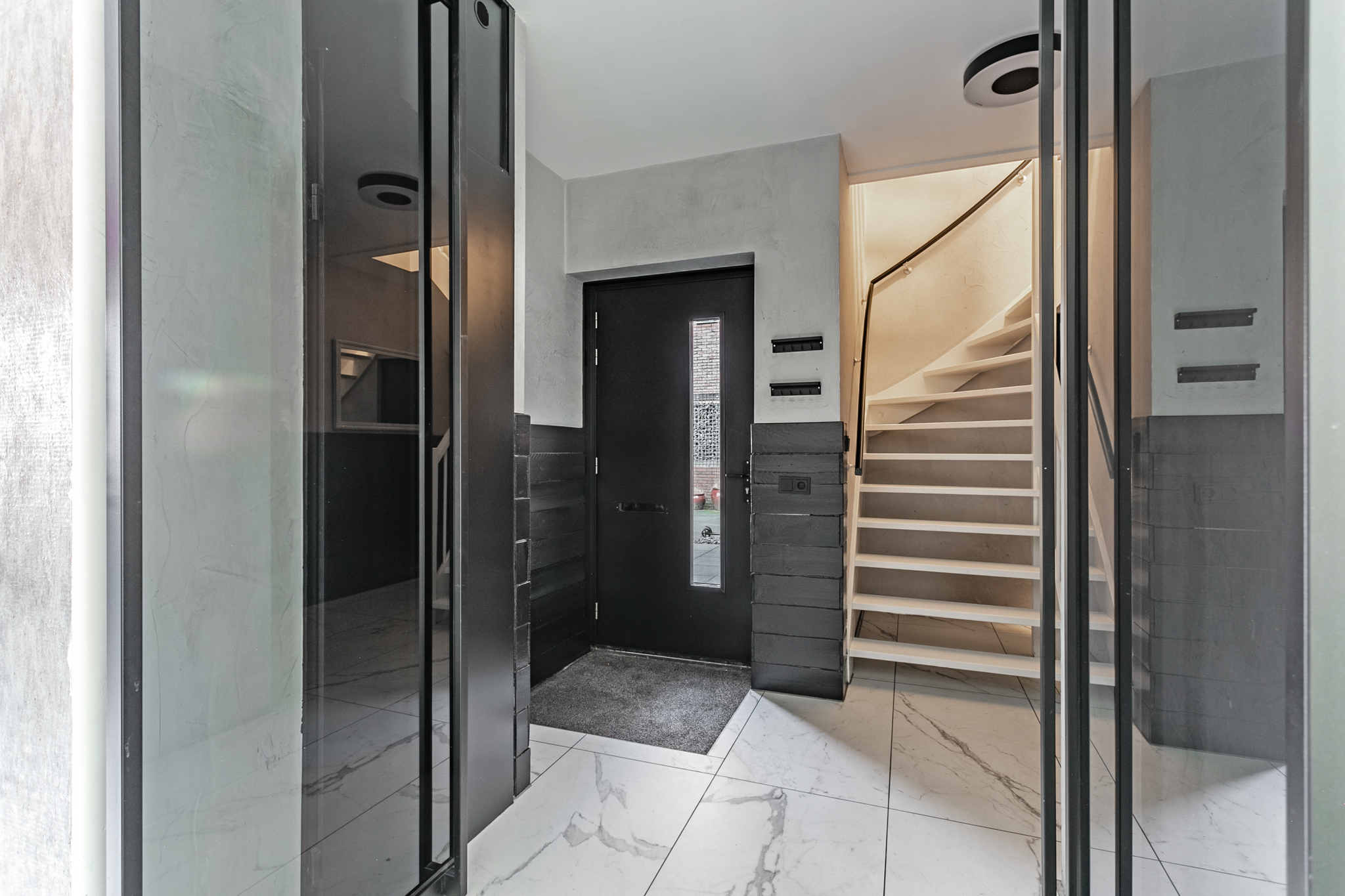 Entree, ruime hal met meterkast, toilet v.v. fonteintje. Via fraaie taatsdeuren komt u vanuit de hal de lichte en ruime woon-/eetkamer binnen. Aan de voorzijde bevindt zich een luxe- eilandkeuken met diverse hoogwaardige inbouwapparatuur. Aan de achterzijde bevindt zich de living met airconditioning, een openhaard en het eetgedeelte. Op de begane grond bevindt zich tevens een garage met eveneens toegang tot de achtertuin. Vele gezinnen hebben van deze ruimte een werkkamer of ‘chillkamer’ gemaakt.
