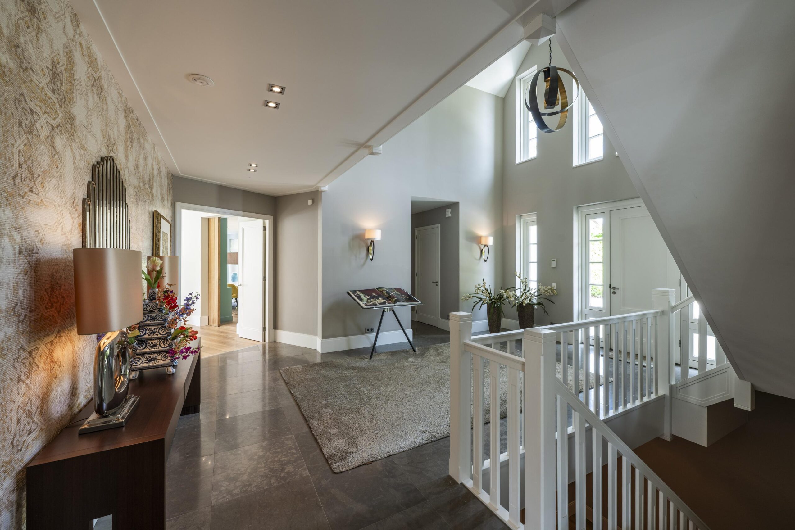 Bij binnenkomst via de statige entree wordt direct duidelijk dat dit geen gewone woning is. De imposante hal met vide vormt het stijlvolle middelpunt van de begane grond en geeft toegang tot alle leefruimtes, waarbij licht, ruimte en verfijning de toon zetten.