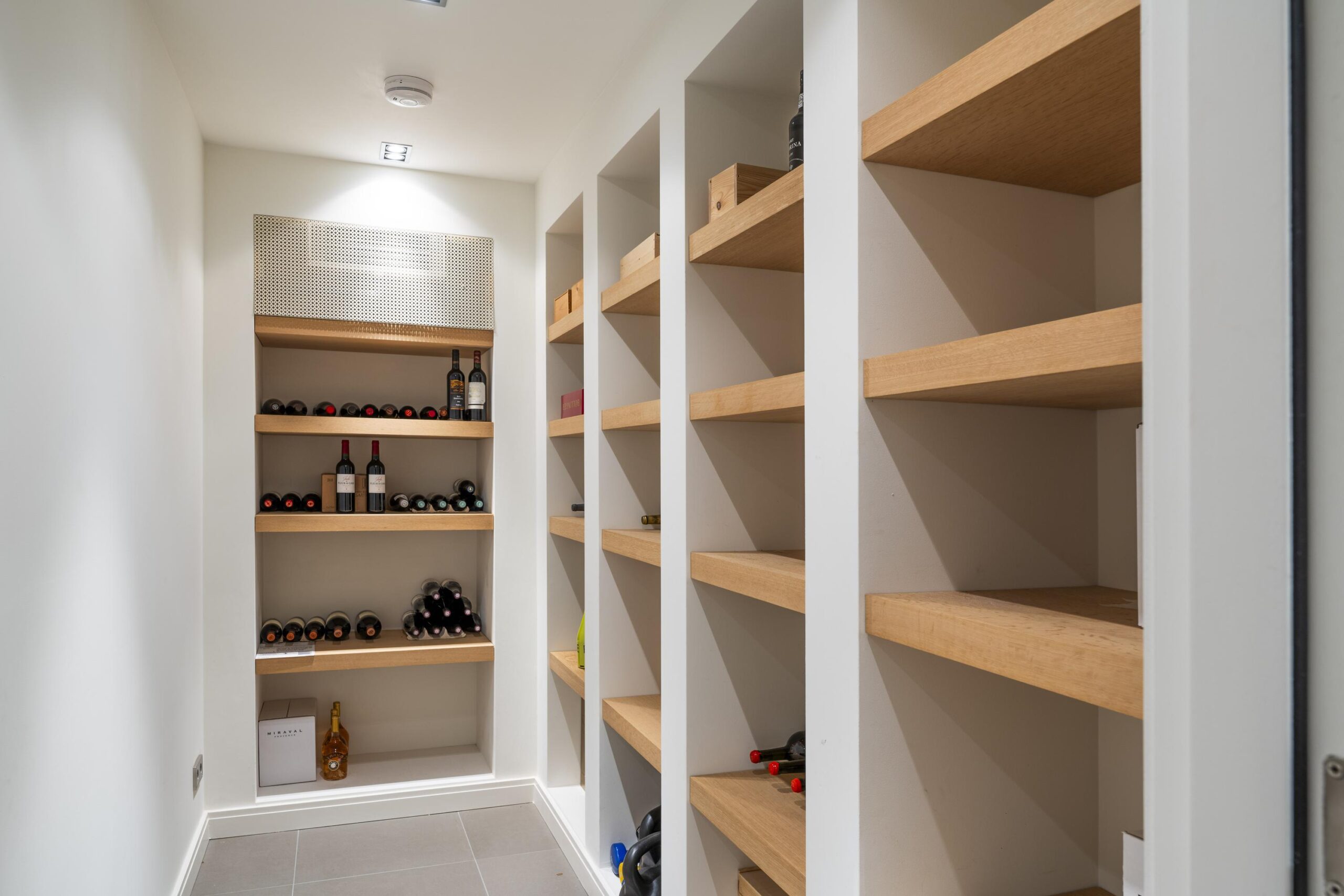 Het souterrain is volledig afgewerkt en biedt een scala aan mogelijkheden. Eyecatcher is de privé bioscoopruimte – een waar thuis-theater voor ultiem kijkplezier. Daarnaast is er een stijlvolle wijnkelder, twee ruime slaapkamers, een moderne badkamer en een volwaardige wasruimte.