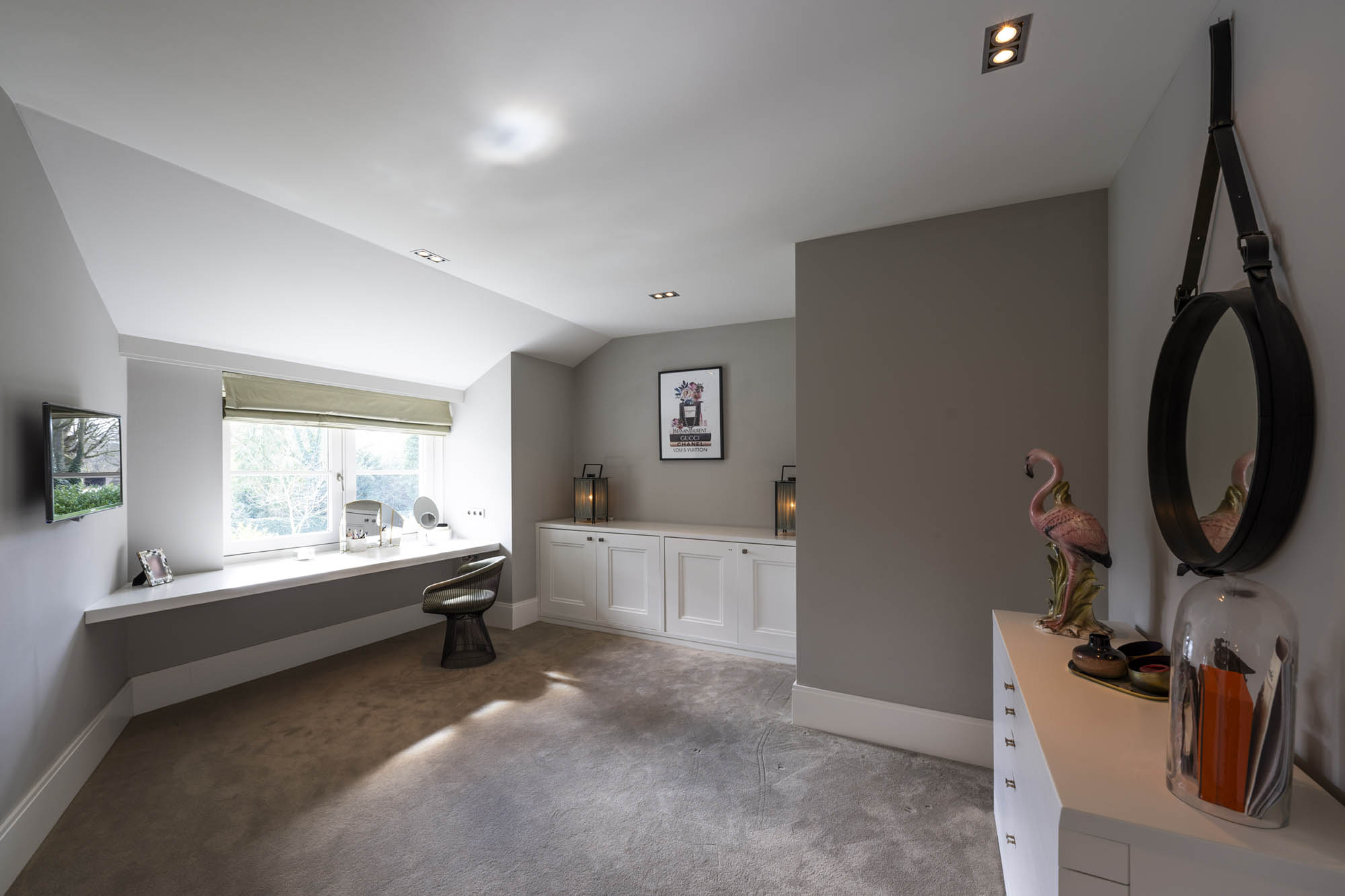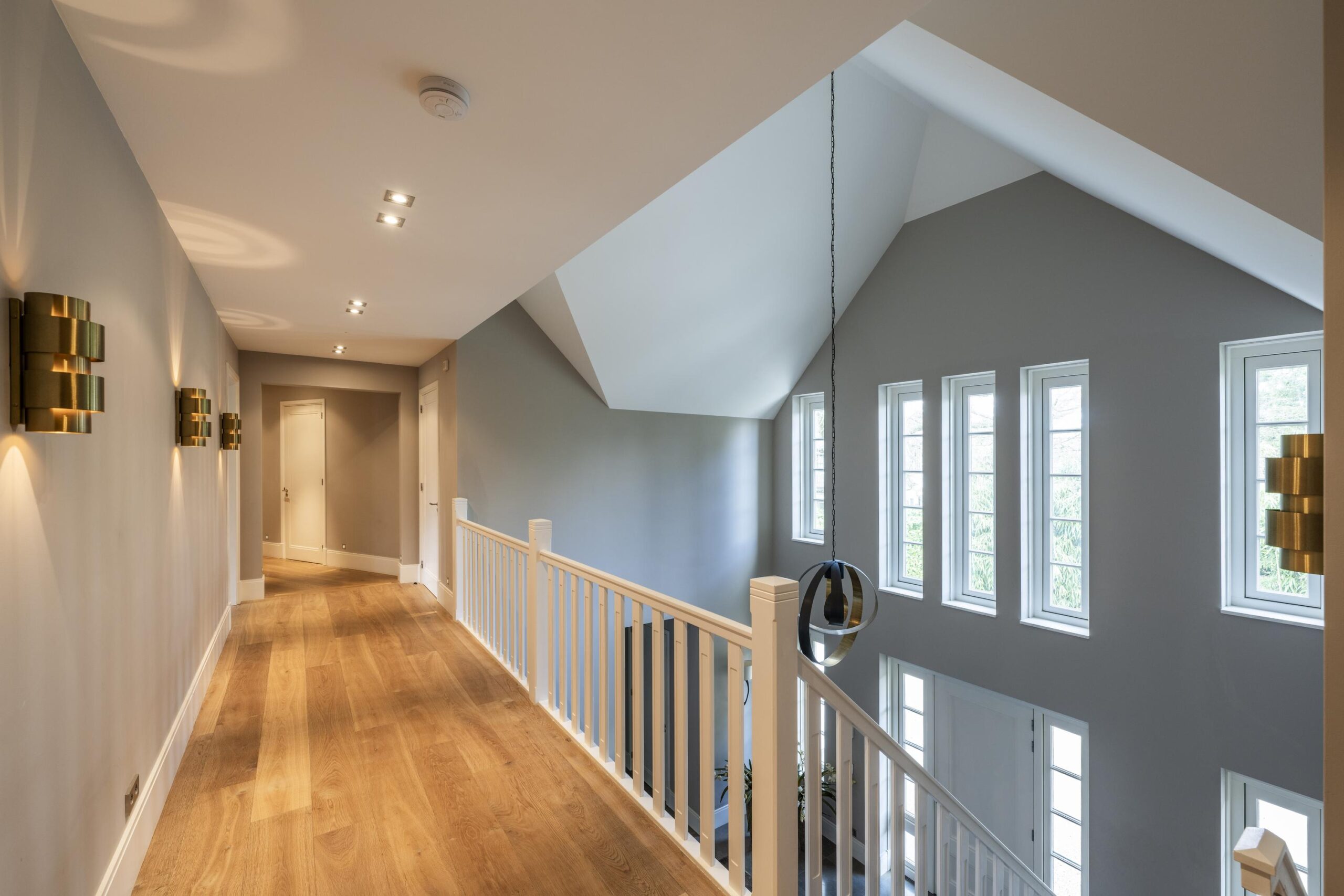 Op de slaapverdieping bevinden zich vier uitzonderlijk ruime slaapkamers, waaronder een master suite van hotelwaardige allure. Deze beschikt over een eigen balkon, een royale inloopkleedruimte, een en suite badkamer met een vrijstaand ligbad, dubbele wastafel en inloopdouche en aparte zitkamer.