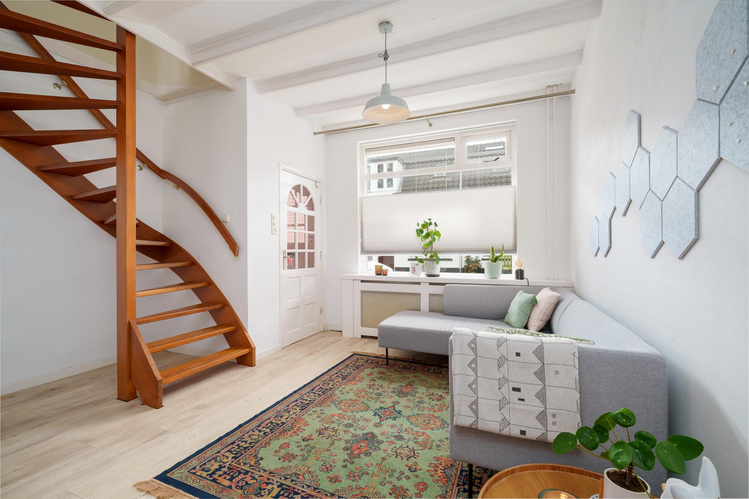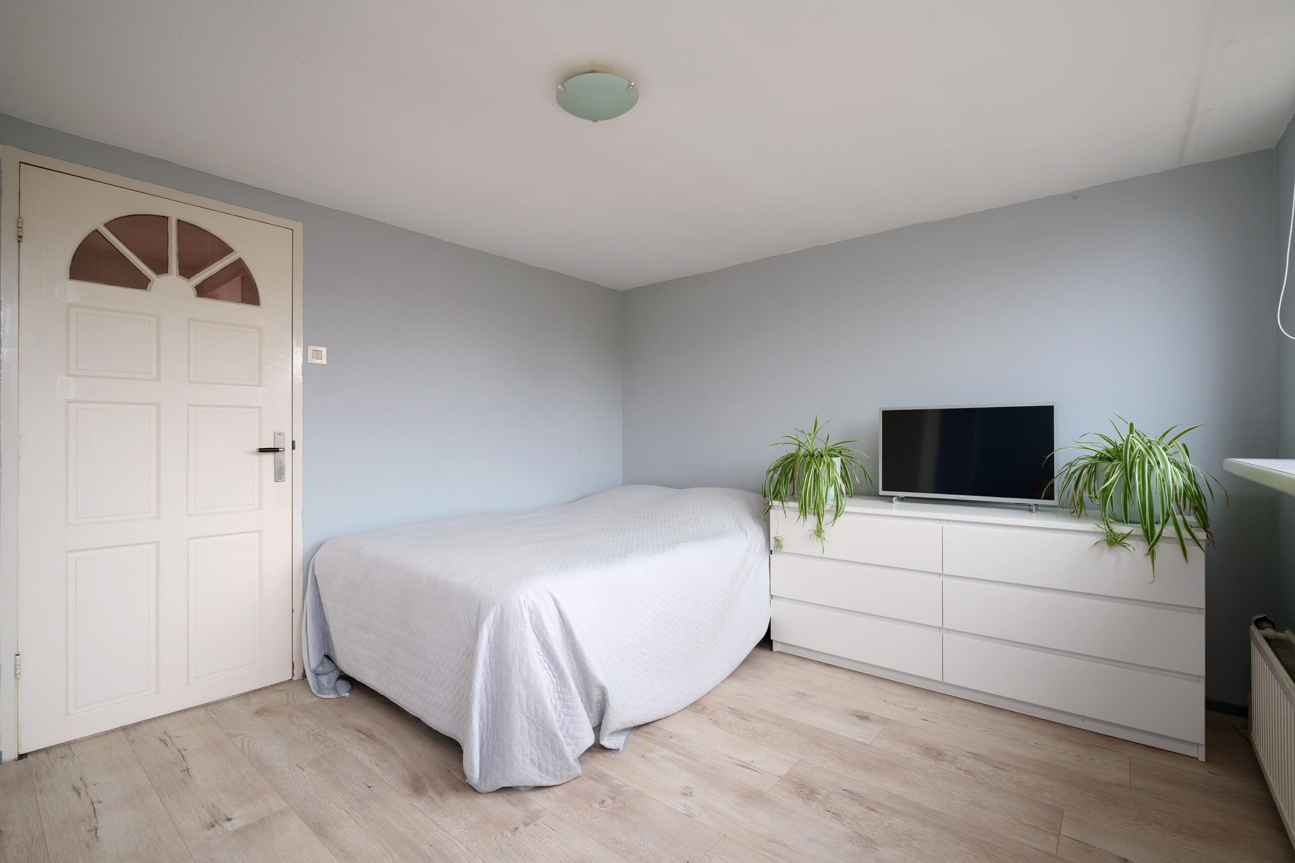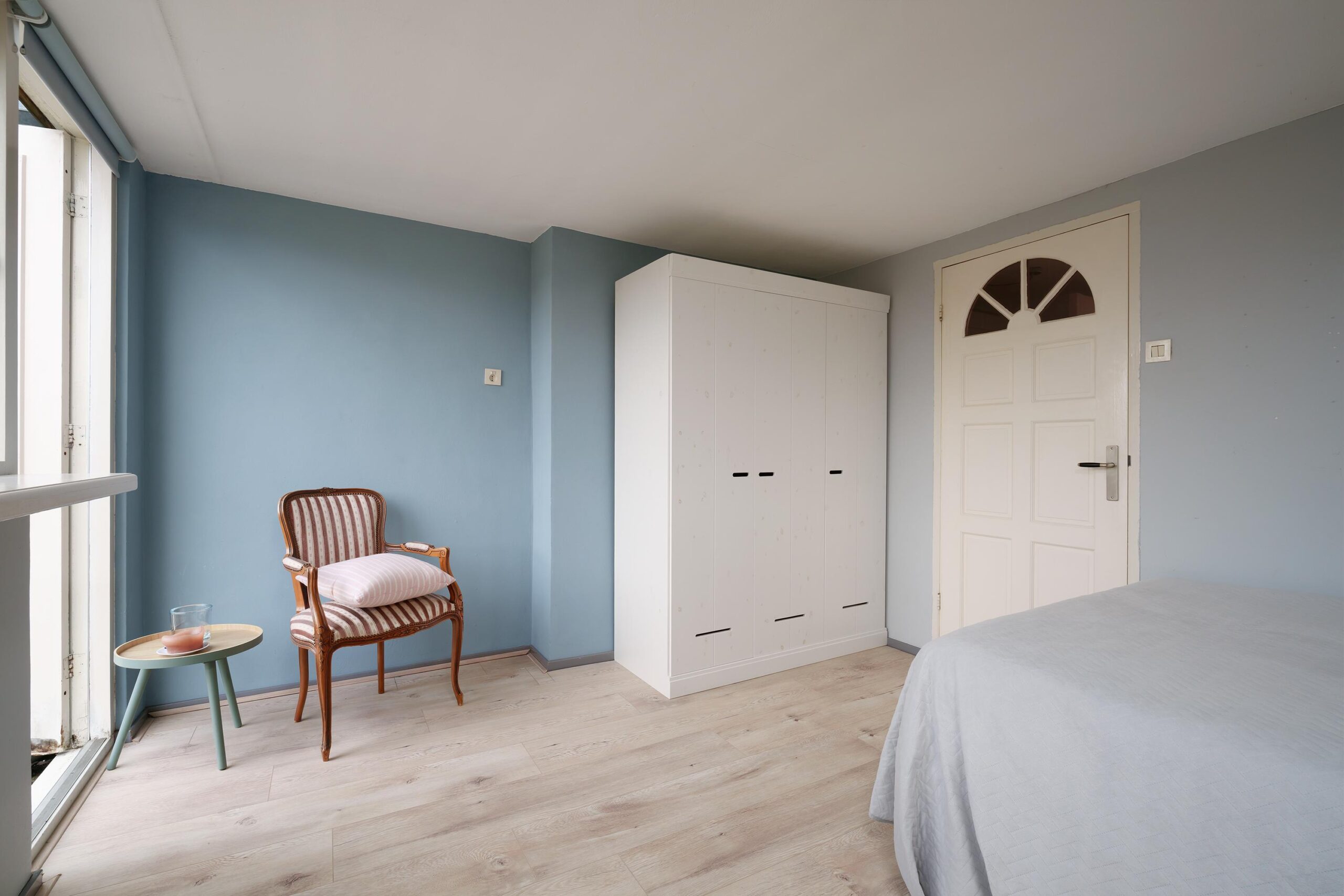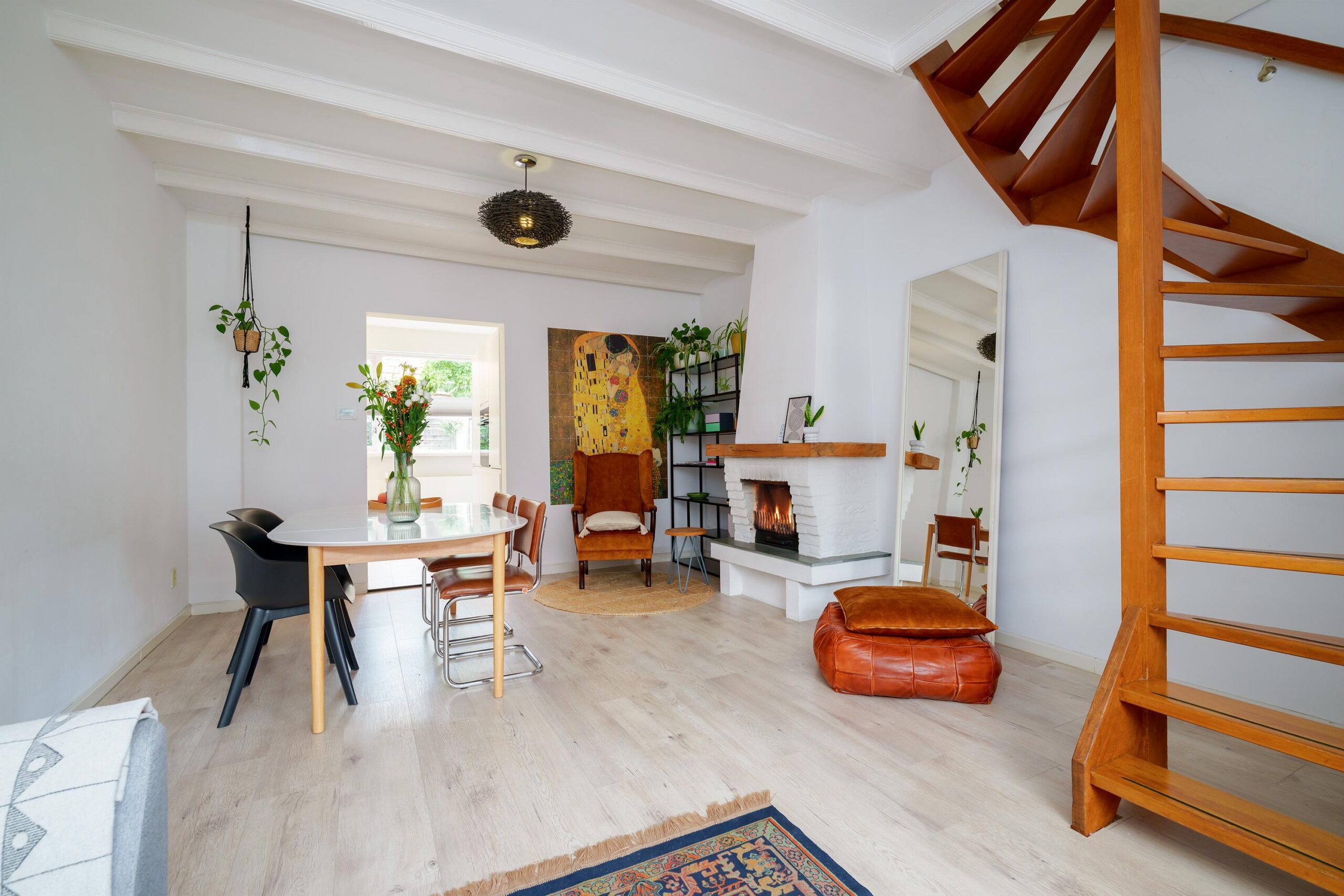 Eerste verdieping Via de open trap kom je op de slaapverdieping met drie slaapkamers van verschillende afmetingen: ideaal als hoofdslaapkamer, logeer-/kinderkamer en een extra (thuis)werkplek. De grootste slaapkamer heeft directe toegang tot het dakterras—een zonnige bonus. Vliering bereikbaar vanaf de overloop voor extra bergruimte. Buitenruimte Achtertuin (van ca. 20 m²) met achterom en houten berging; dakterras aan de hoofdslaapkamer. Zo heb je altijd een plek in de schaduw óf zon.