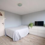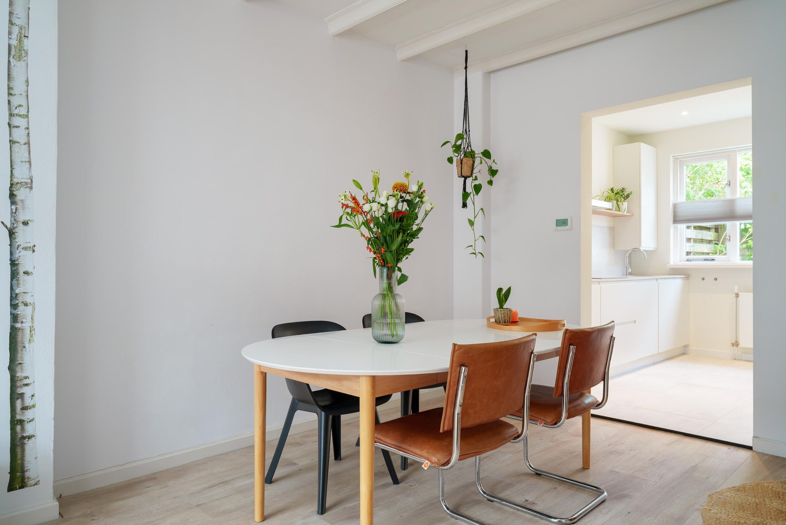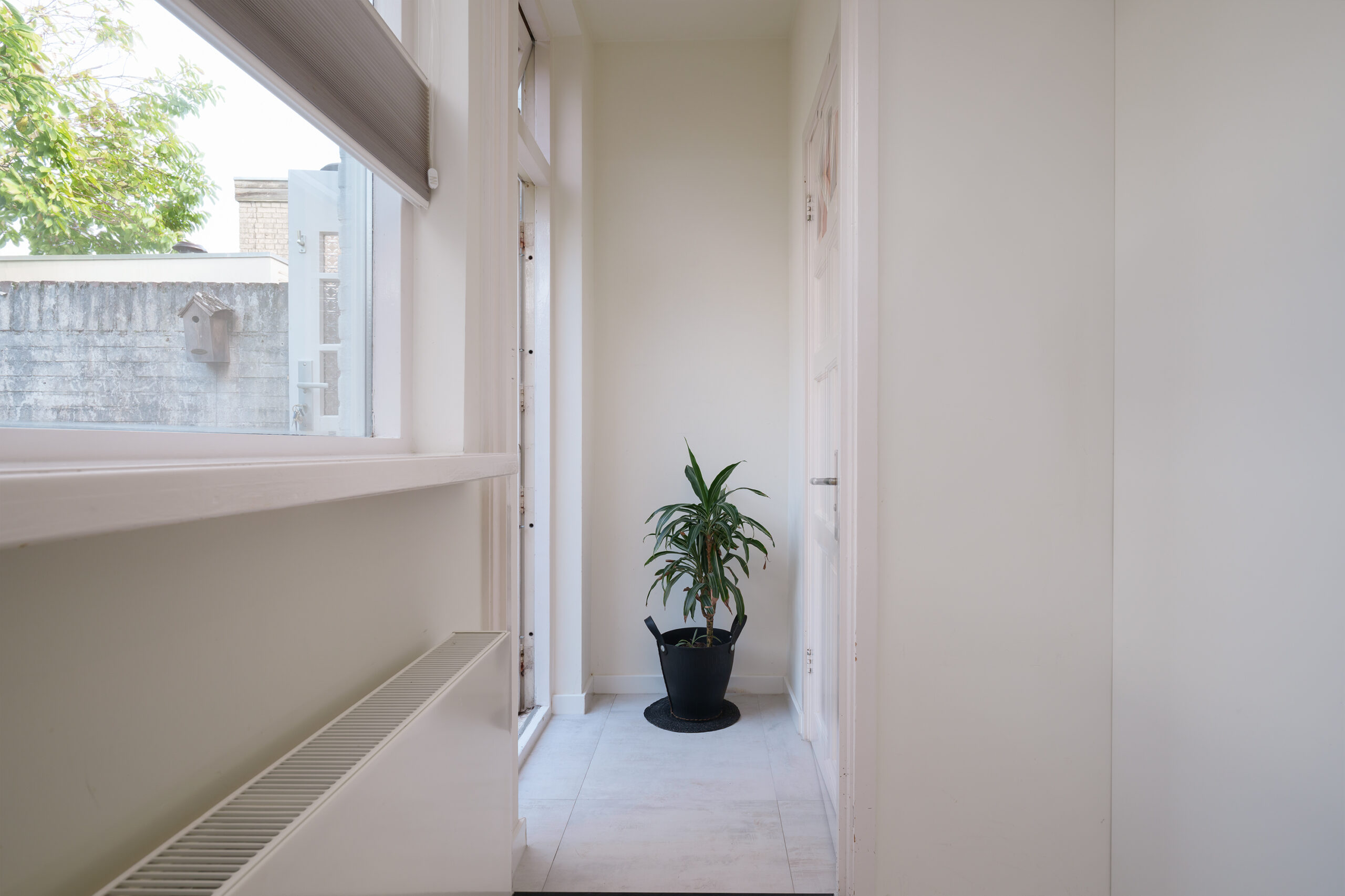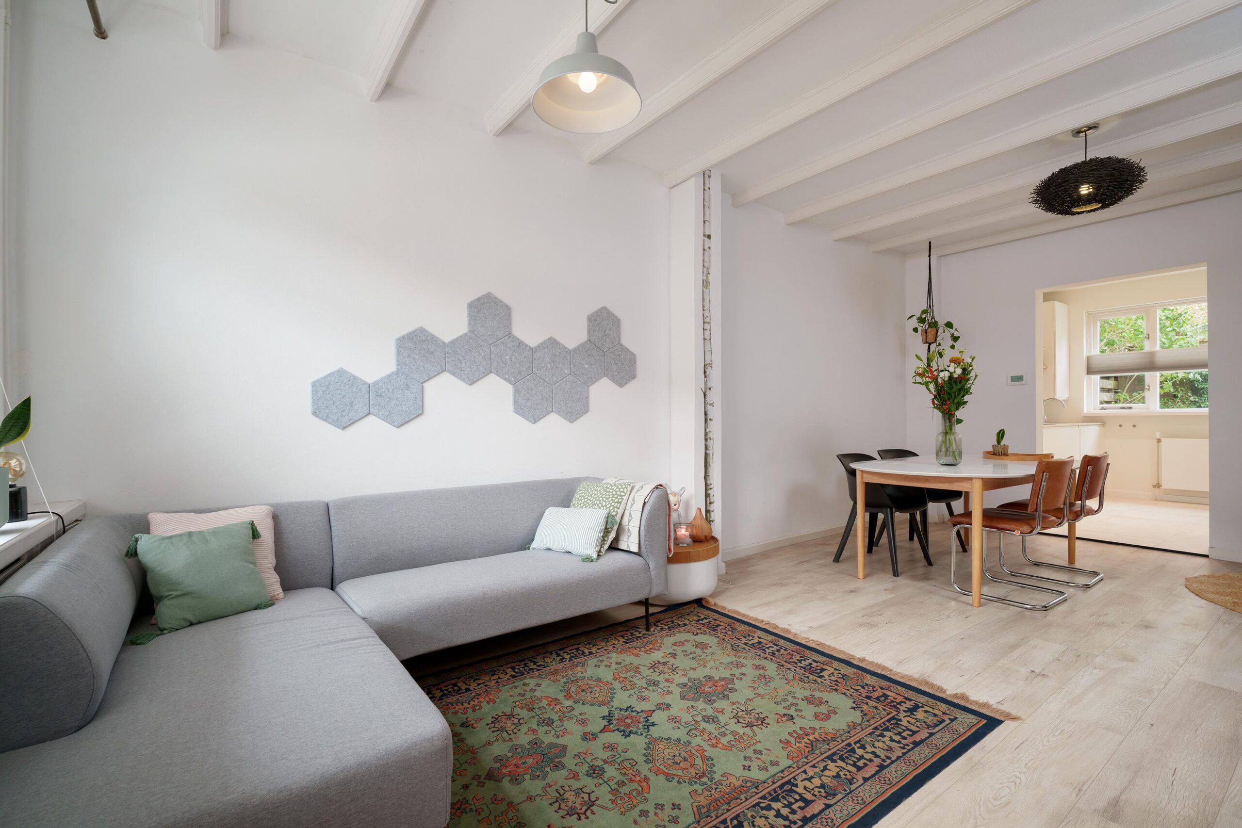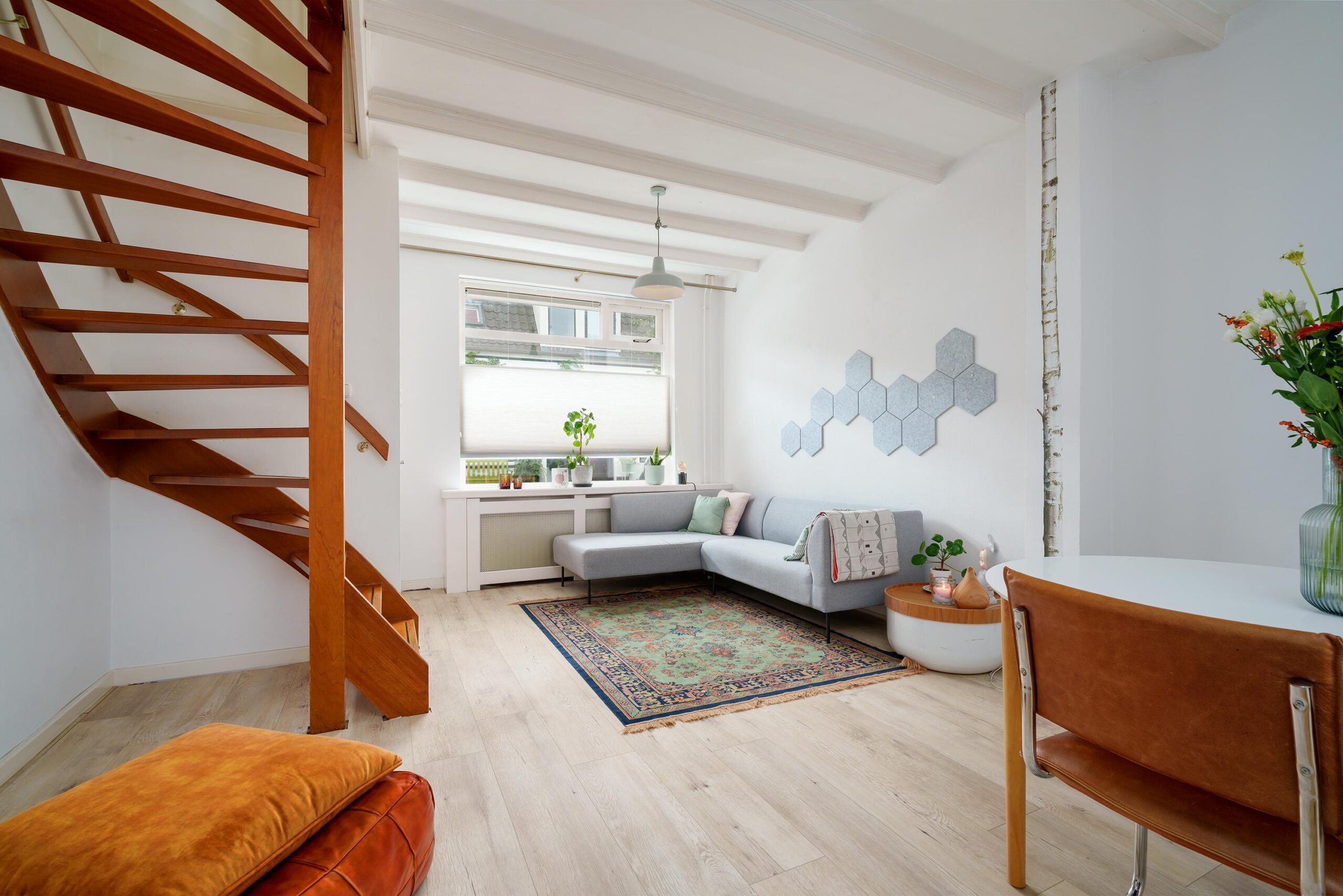Eerste verdieping Via de open trap kom je op de slaapverdieping met drie slaapkamers van verschillende afmetingen: ideaal als hoofdslaapkamer, logeer-/kinderkamer en een extra (thuis)werkplek. De grootste slaapkamer heeft directe toegang tot het dakterras—een zonnige bonus. Vliering bereikbaar vanaf de overloop voor extra bergruimte. Buitenruimte Achtertuin (van ca. 20 m²) met achterom en houten berging; dakterras aan de hoofdslaapkamer. Zo heb je altijd een plek in de schaduw óf zon.