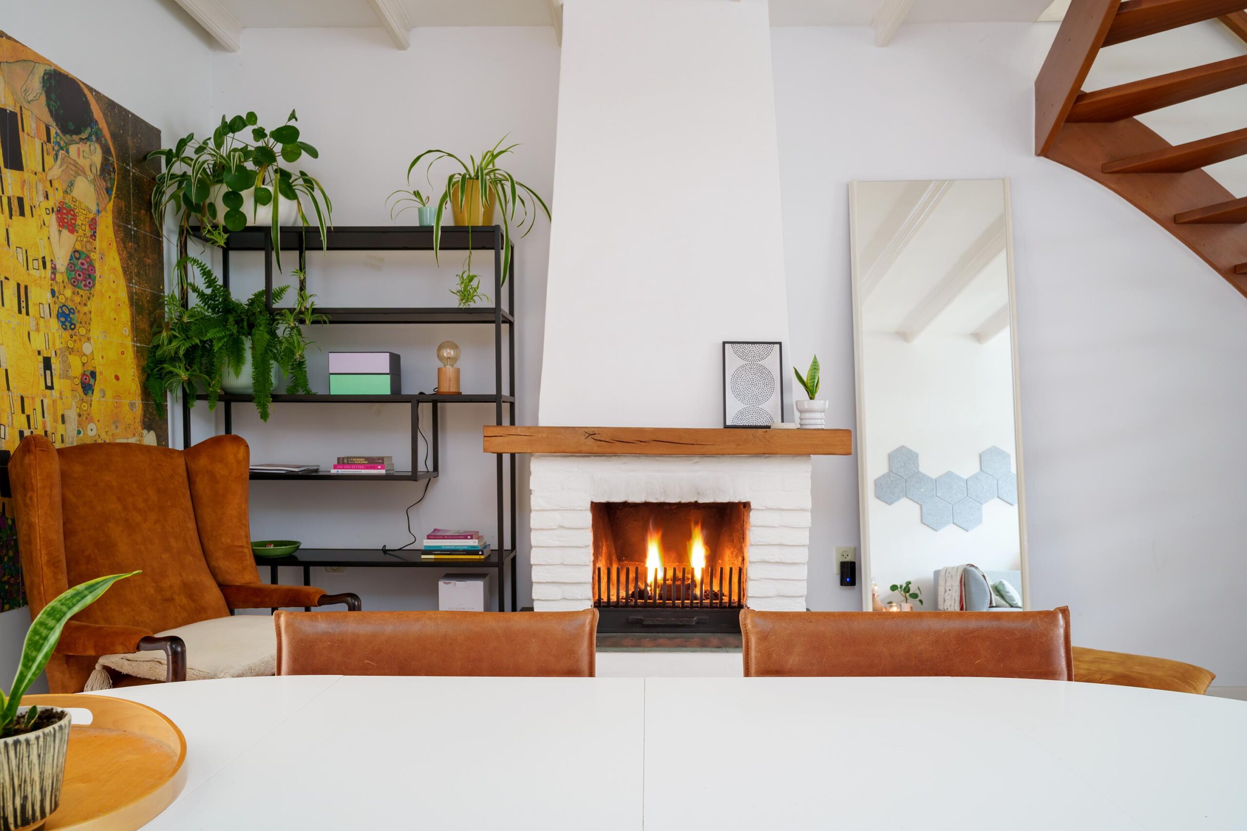 Entree met tochtportaal en meterkast. Lichte woonkamer met open haard en prettige lichtinval; perfecte plek voor relaxen of een ruime eettafel. Aansluitend de moderne keuken (2023) met inbouwapparatuur (o.a. inductiekookplaat, oven, koel-vries en vaatwasser) en wasmachine-aansluiting. De keuken geeft toegang tot de patio met berging (ca. 2,9 m²) én naar de moderne badkamer (2023) met inloopdouche, wastafelmeubel en toilet. Keuken en badkamer hebben comfortabele vloerverwarming.