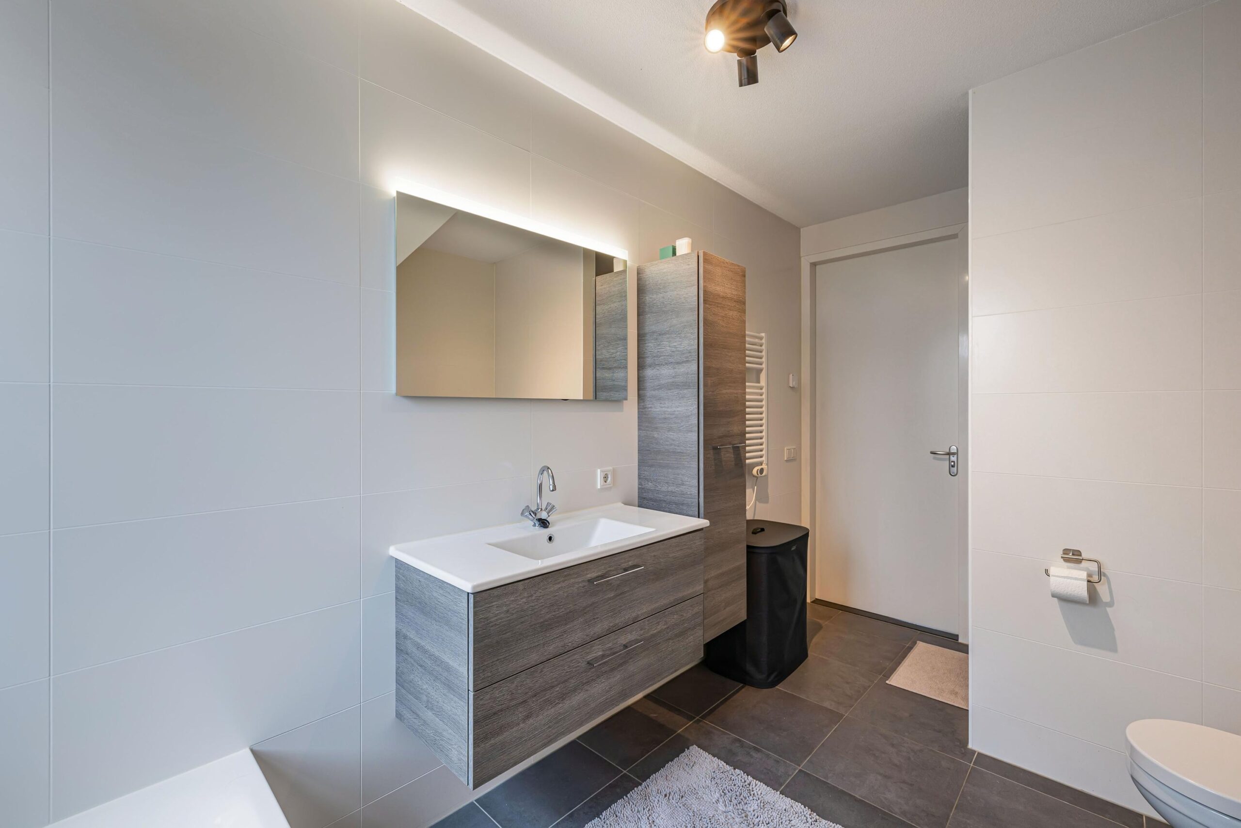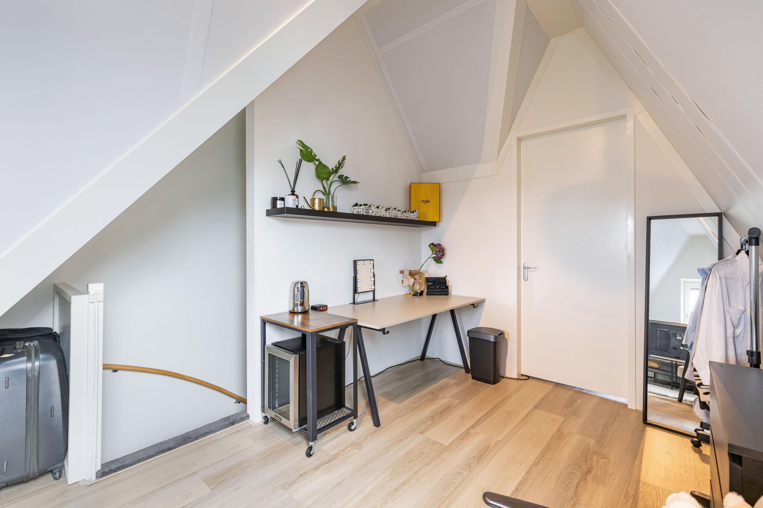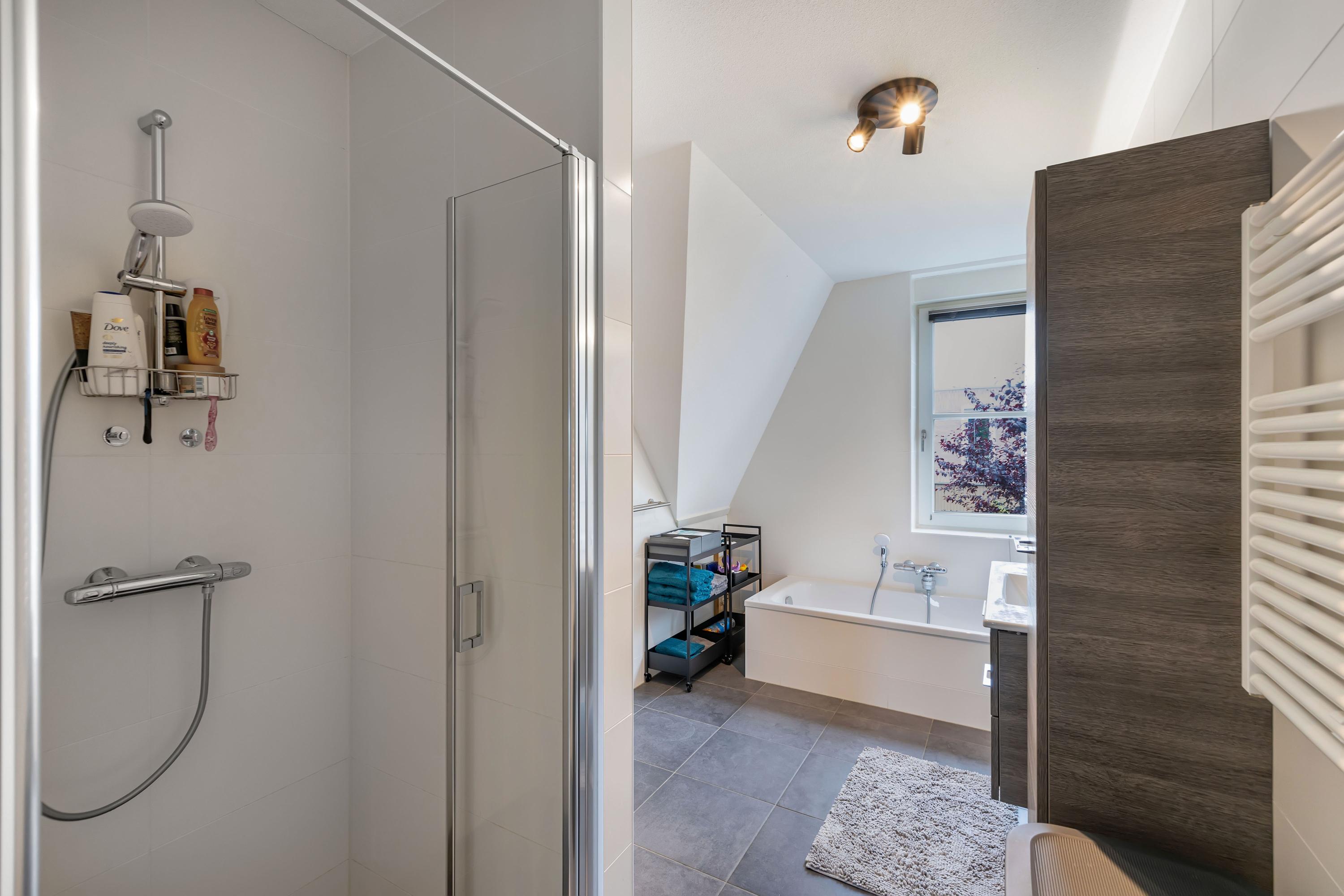Royale overloop, 3 royale slaapkamers met een mooi uitzicht op de Meentstroom. De luxe badkamer is voorzien van een ruime inloopdouche, een ligbad, vrij hangend toilet, design radiator en wastafelmeubel met spiegel.