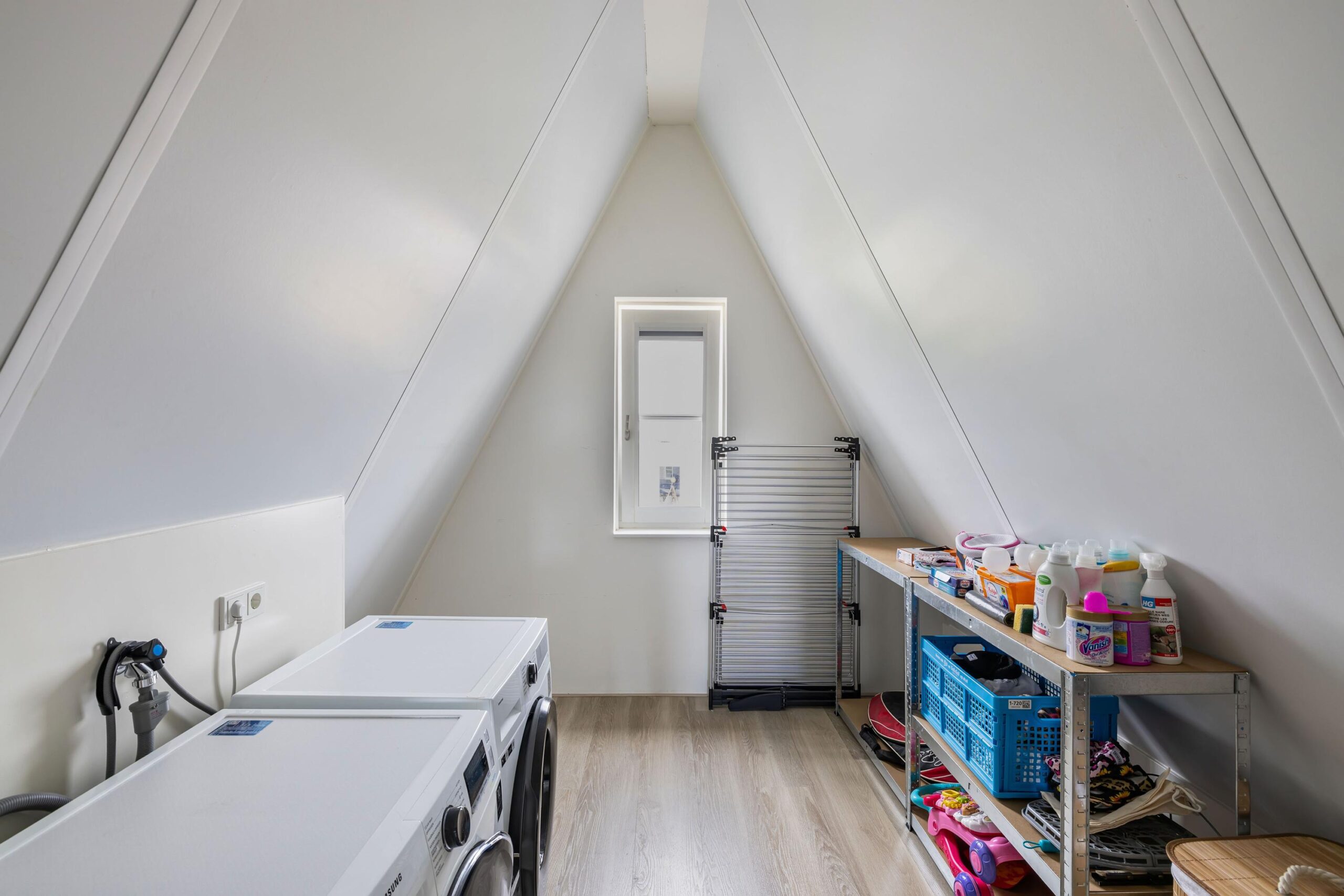 4de slaapkamers aan de achterzijde. Aan de voorzijde is de waskamer met de aansluitingen voor de was en droog apparatuur.