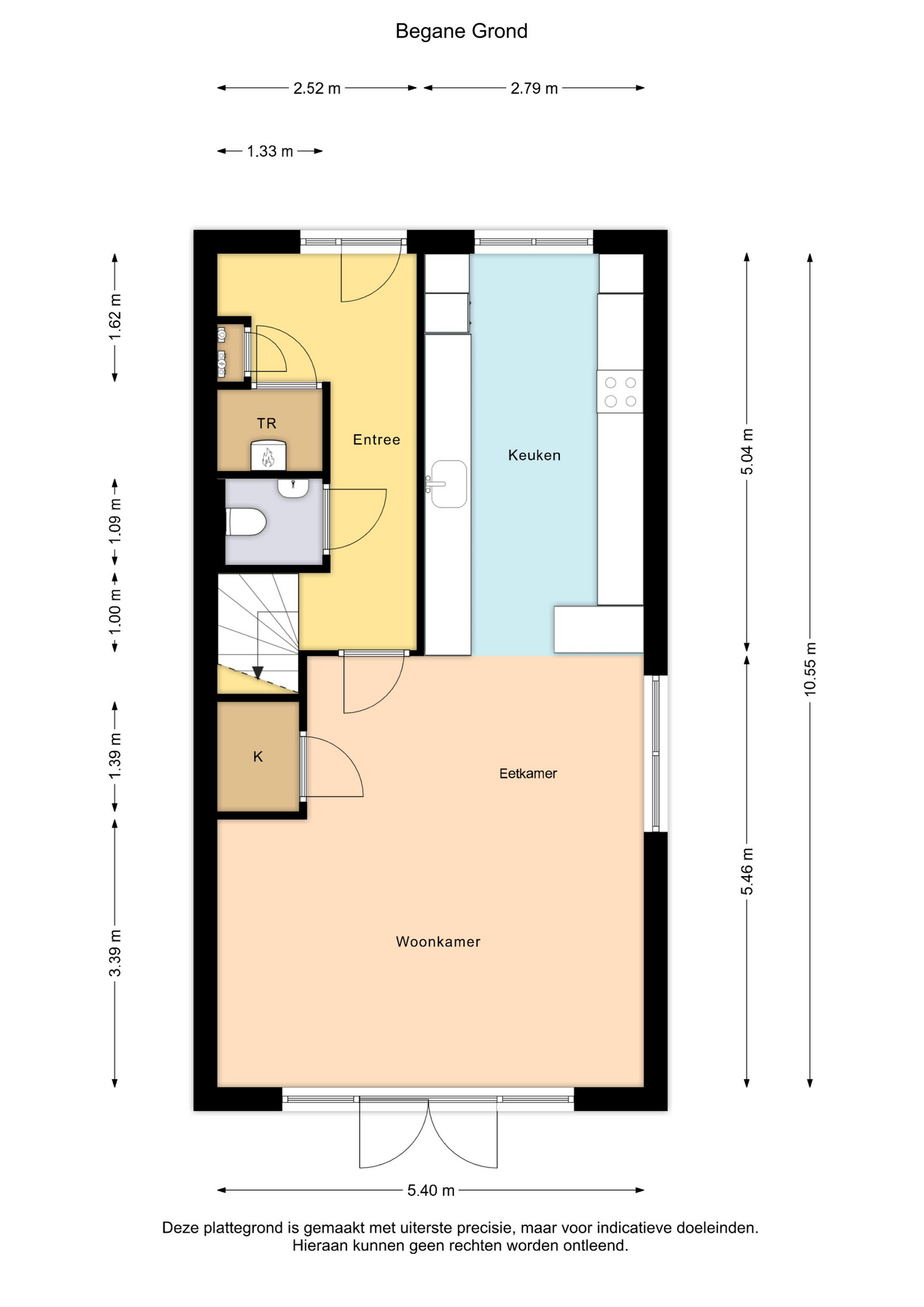 De woonkamer is aan de achterzijde van de woning gesitueerd en heeft openslaande deuren welke toegang geeft tot de fantastische zonnige tuin. Onder de trap bevindt zich een praktische bergkast.