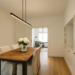 Een aantal originele details is mooi bewaard gebleven, zoals de en suite deuren, een schouw en glas-in-loodramen.