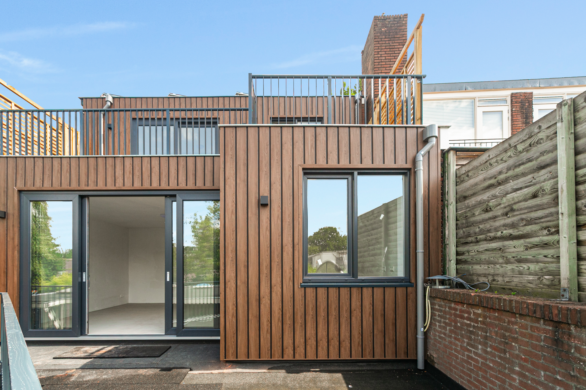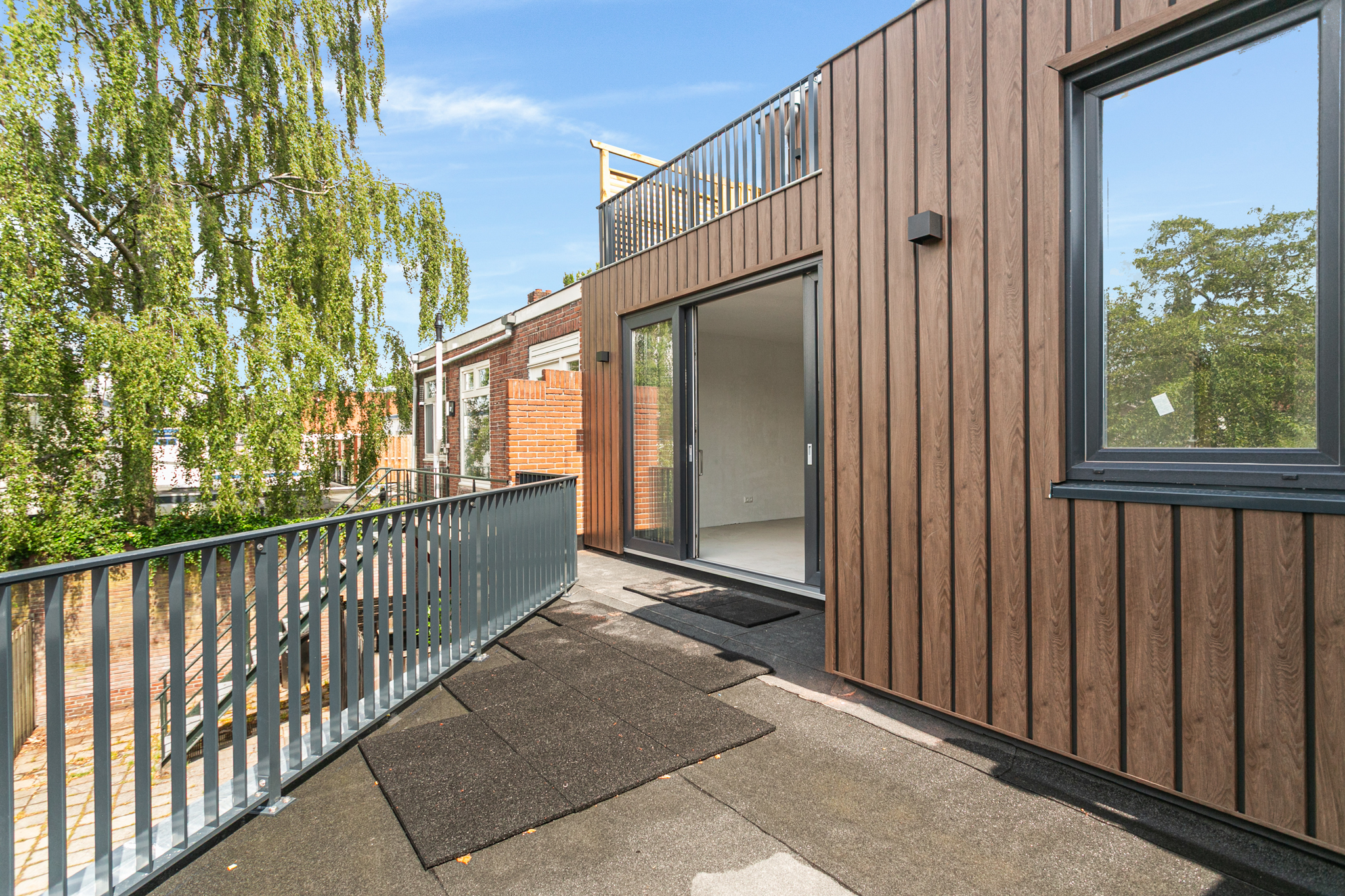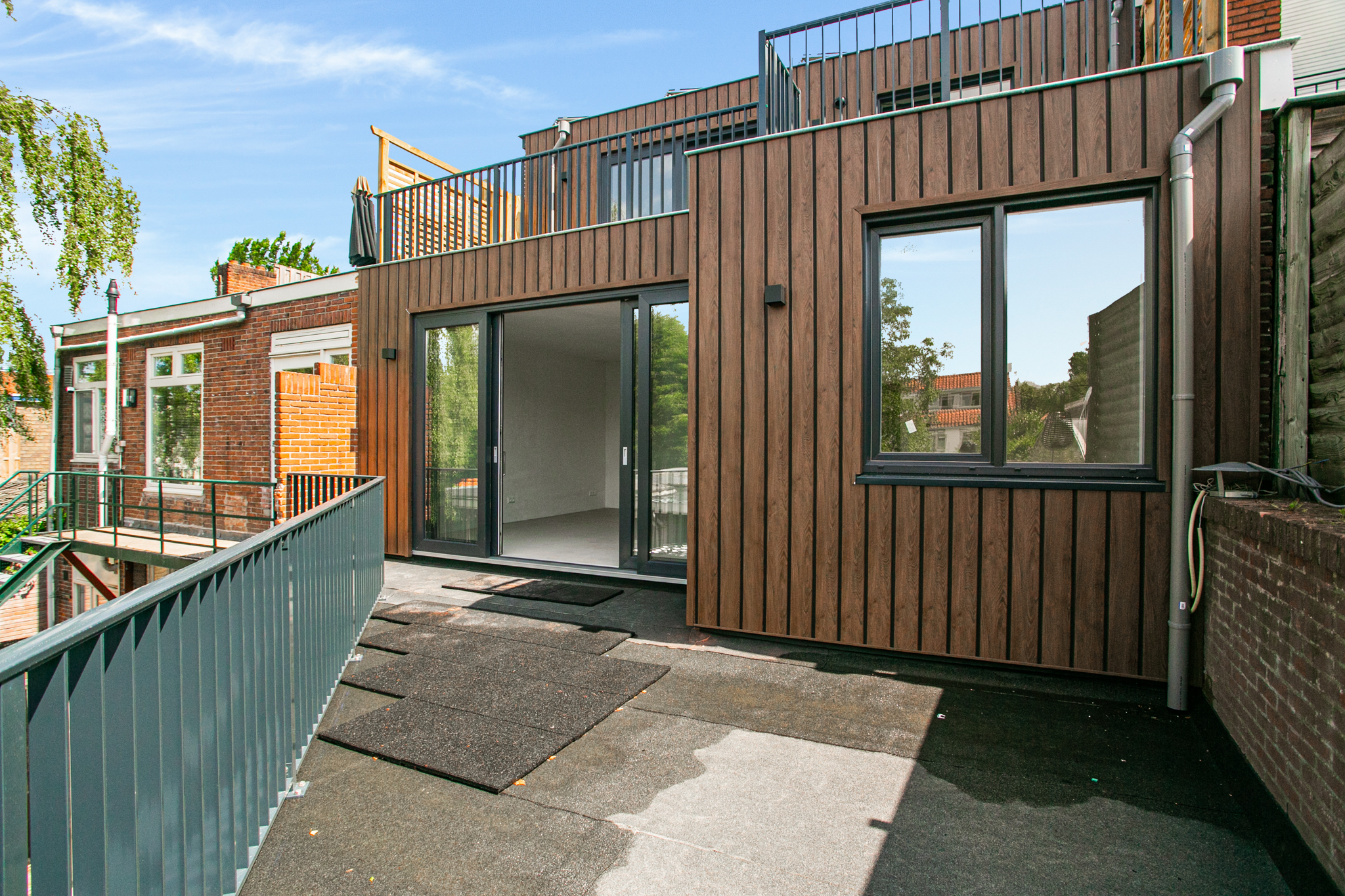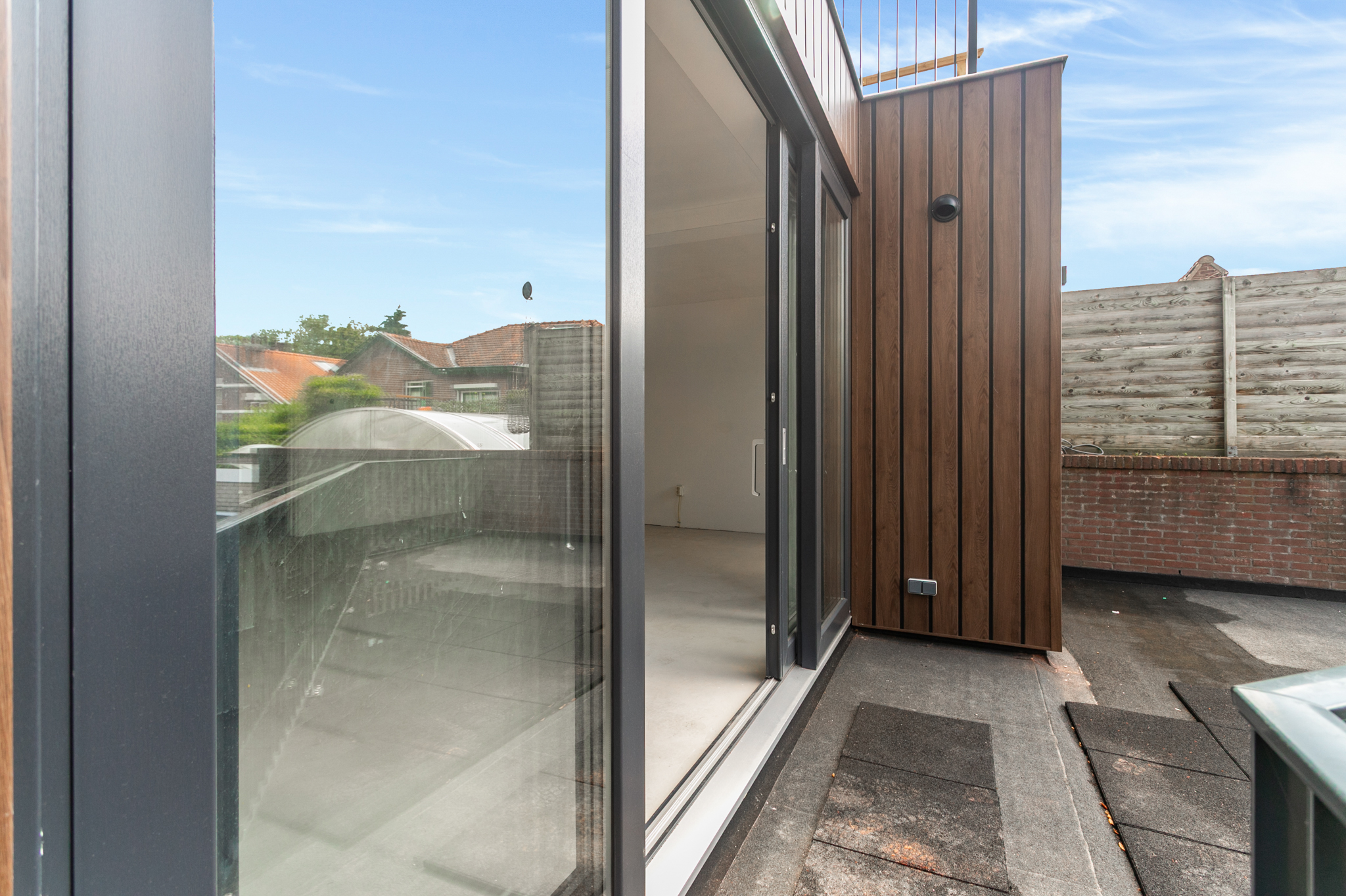 Aan de achterzijde bevindt zich het heerlijke dakterras van circa 18 m², gunstig gelegen op het zuidwesten. Hier kunt u volop genieten van de middag- en avondzon.