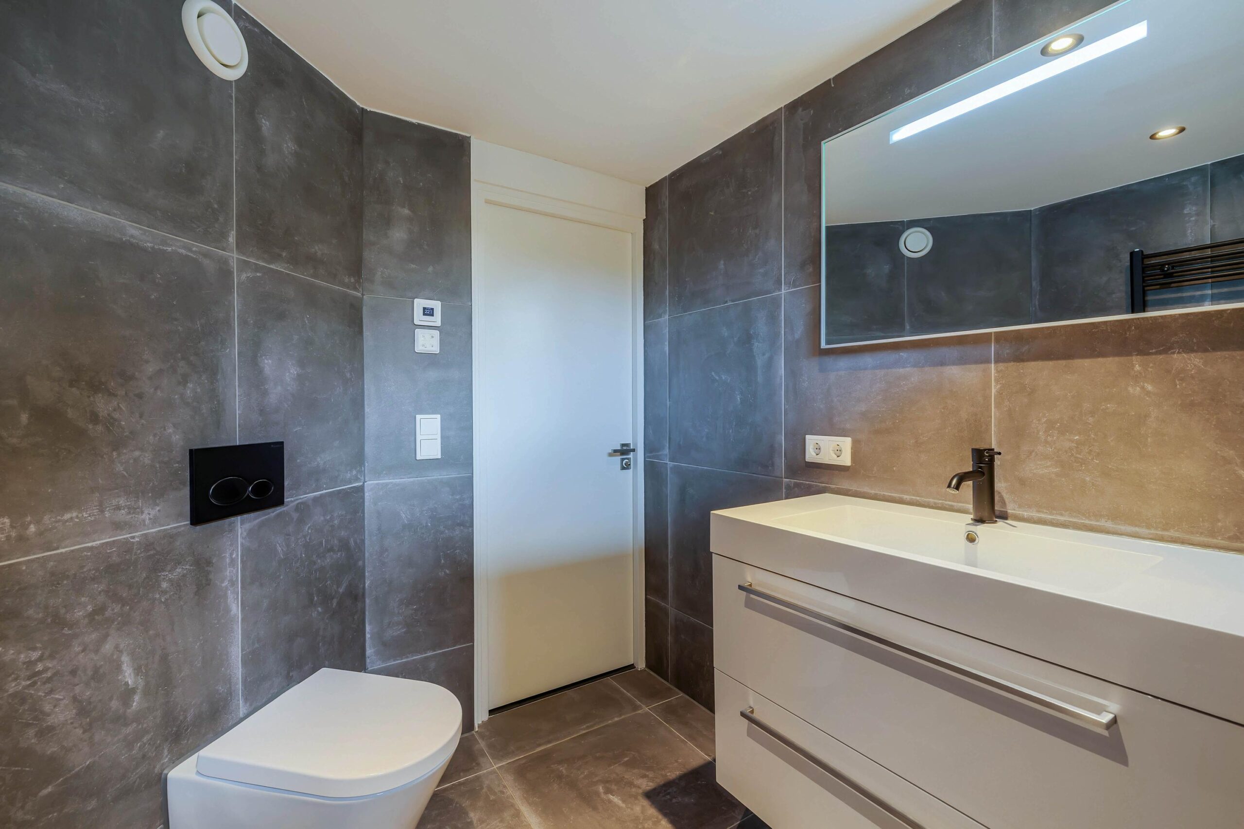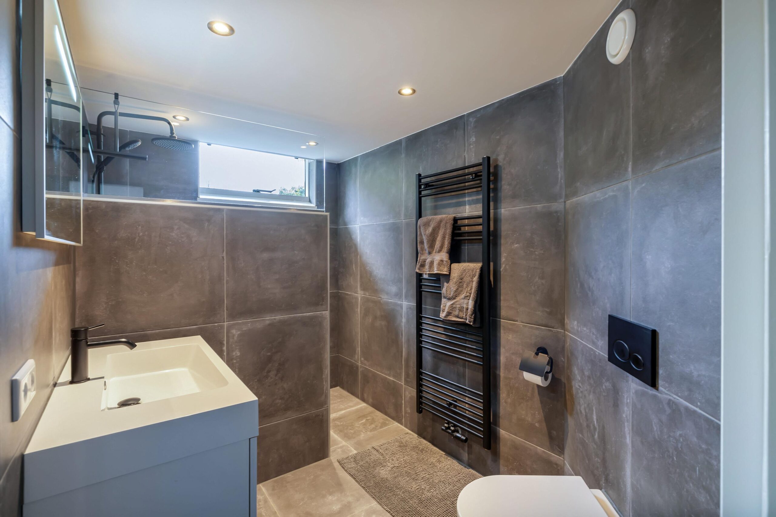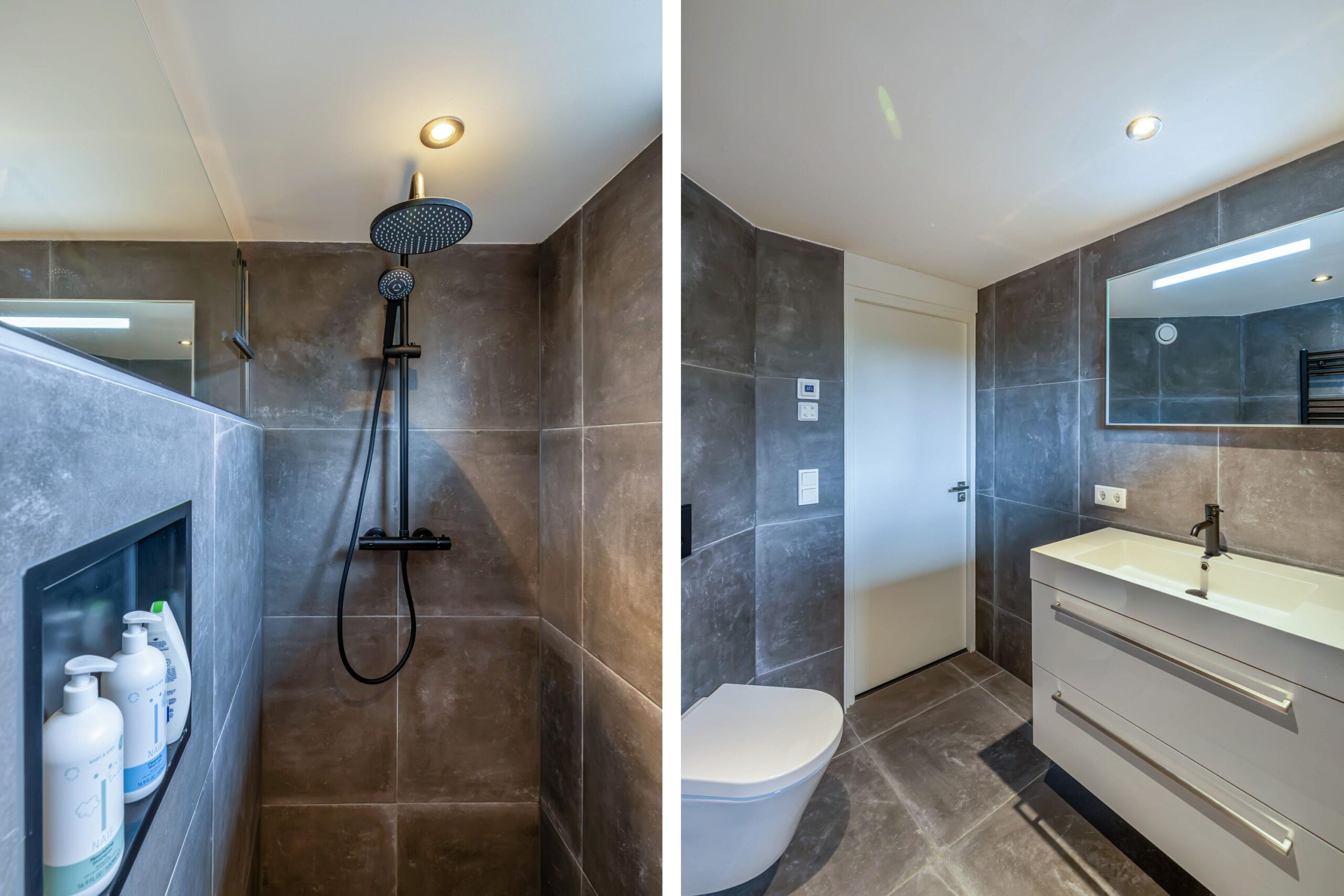 • Badkamer met royale inloopdouche, wastafelmeubel en toilet