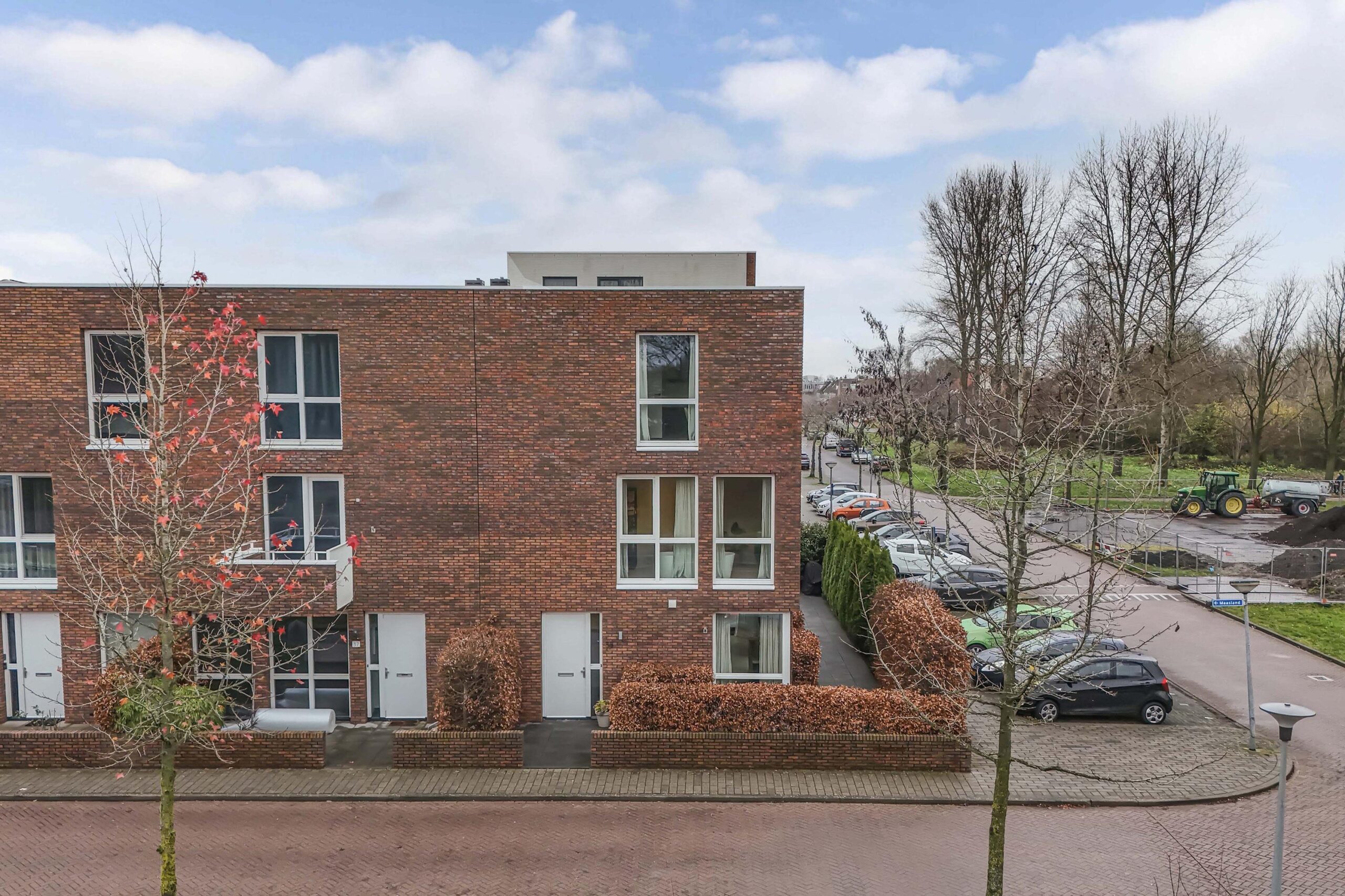 De woning is gelegen aan een ventweg met ruimschoots parkeergelegenheid. Tevens behoren er 2 privé parkeerplaatsen bij de woning, gelegen op het terrein aan de achterzijde van de rij woningen.
