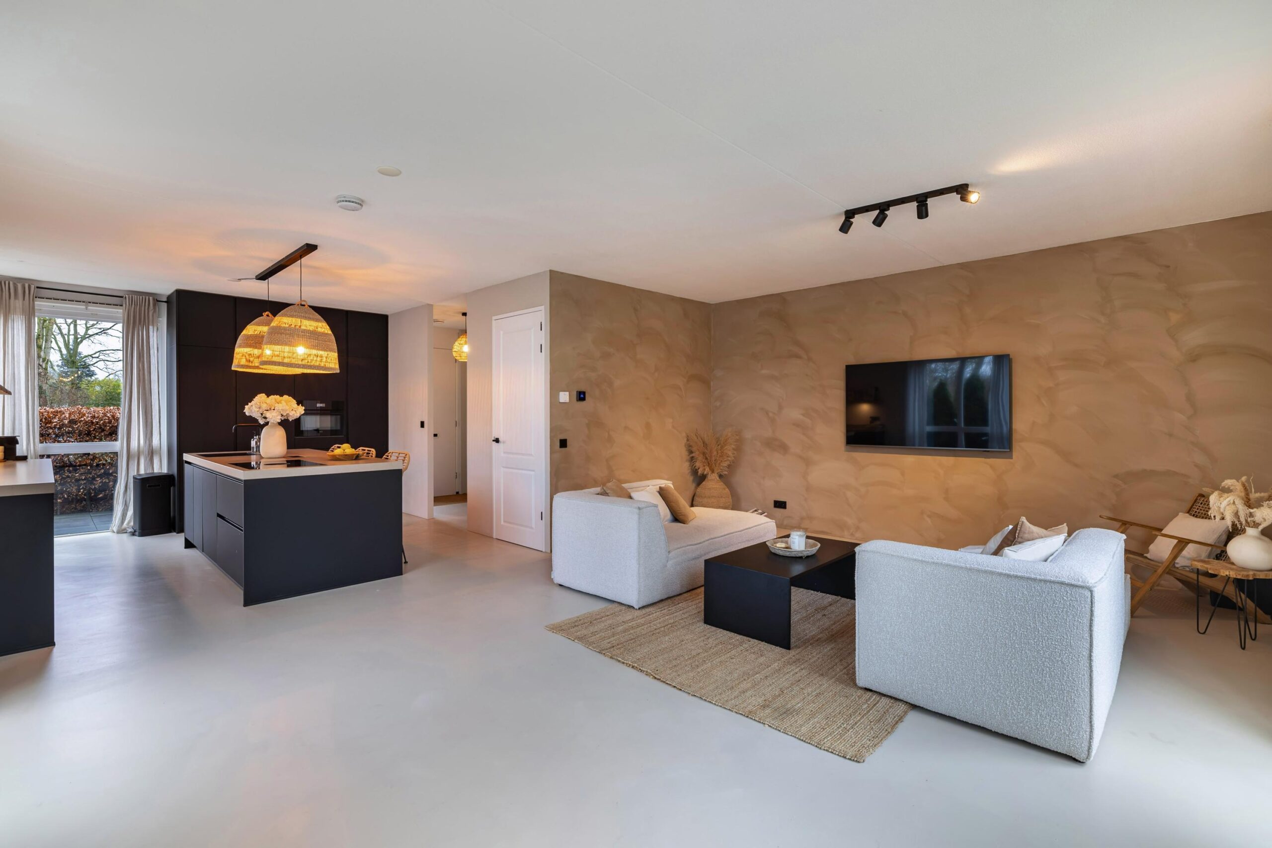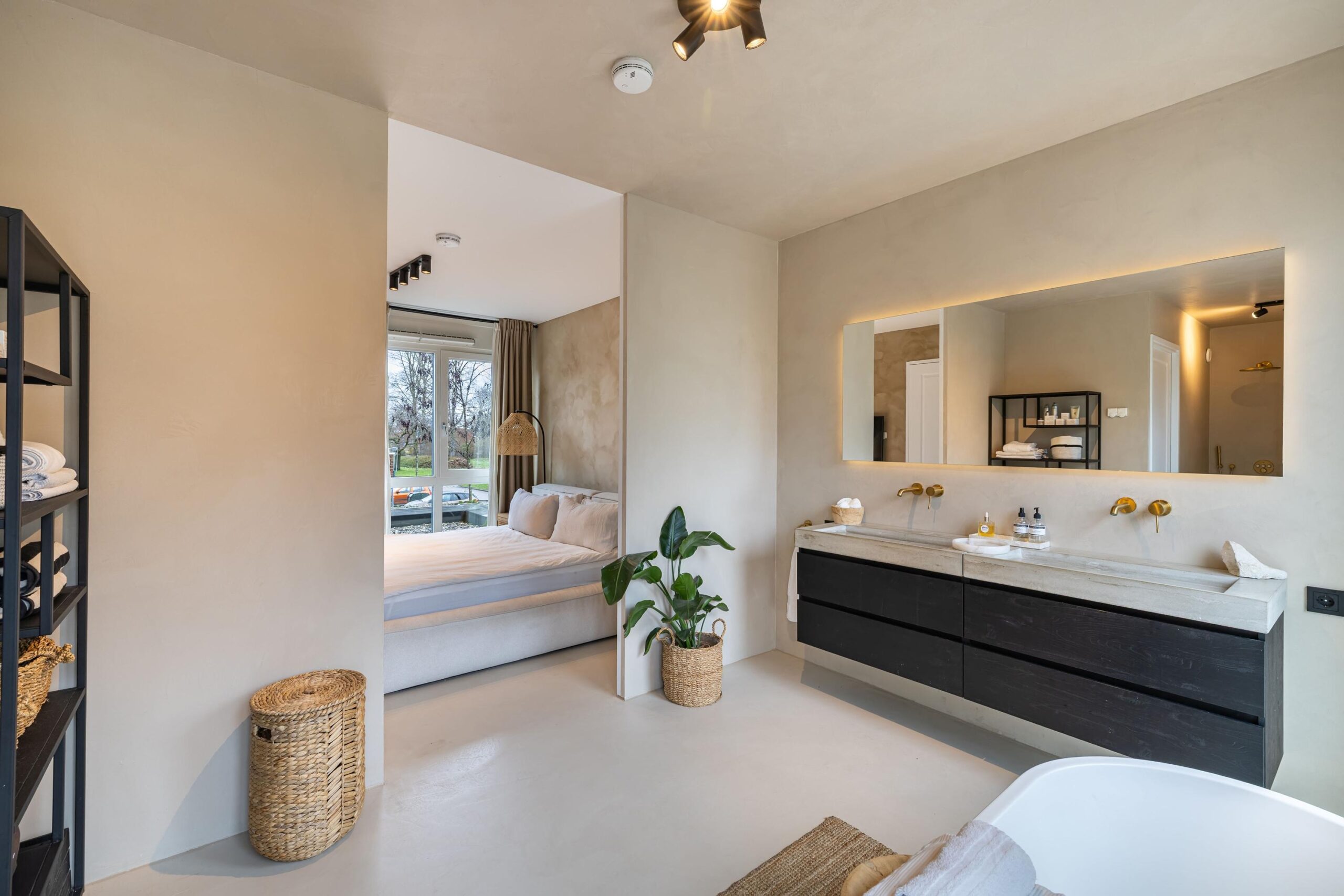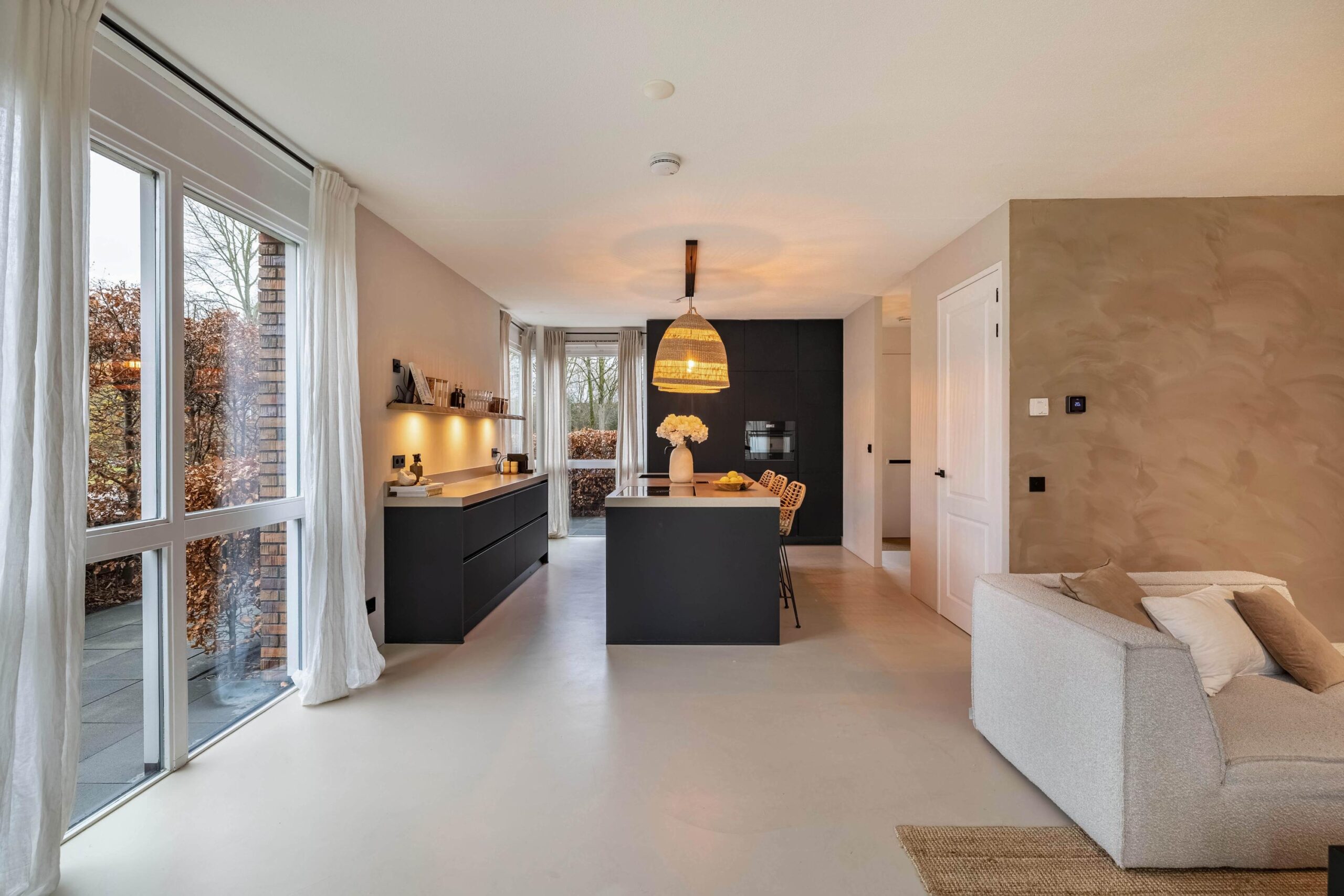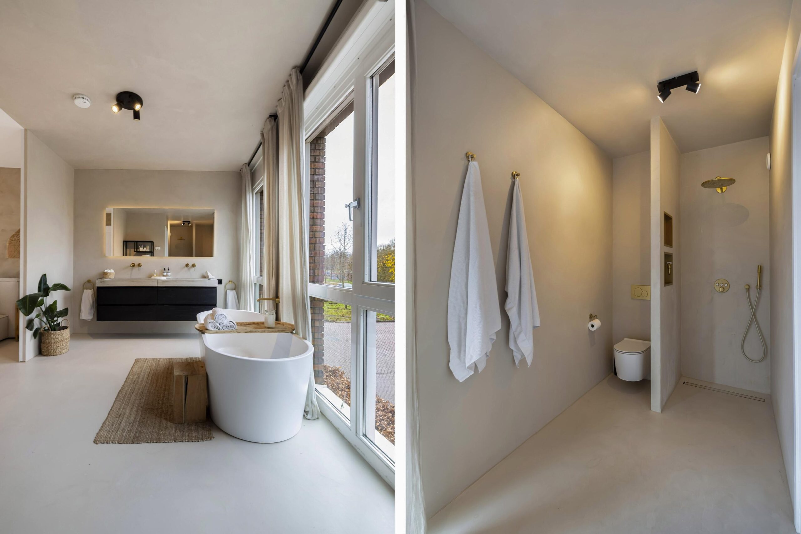 De gehele begane grond is voorzien vloerverwarming en de wanden zijn bewerkt met beton Cire.