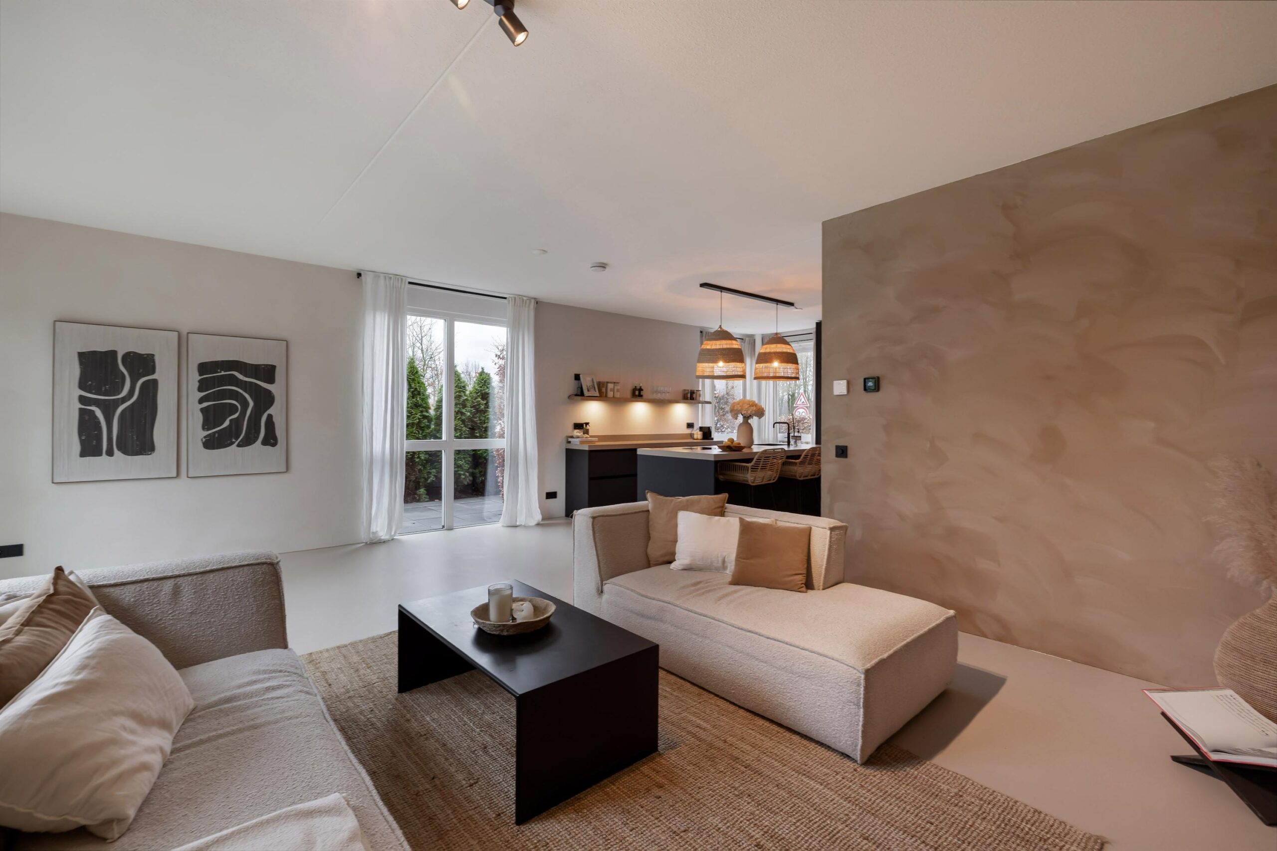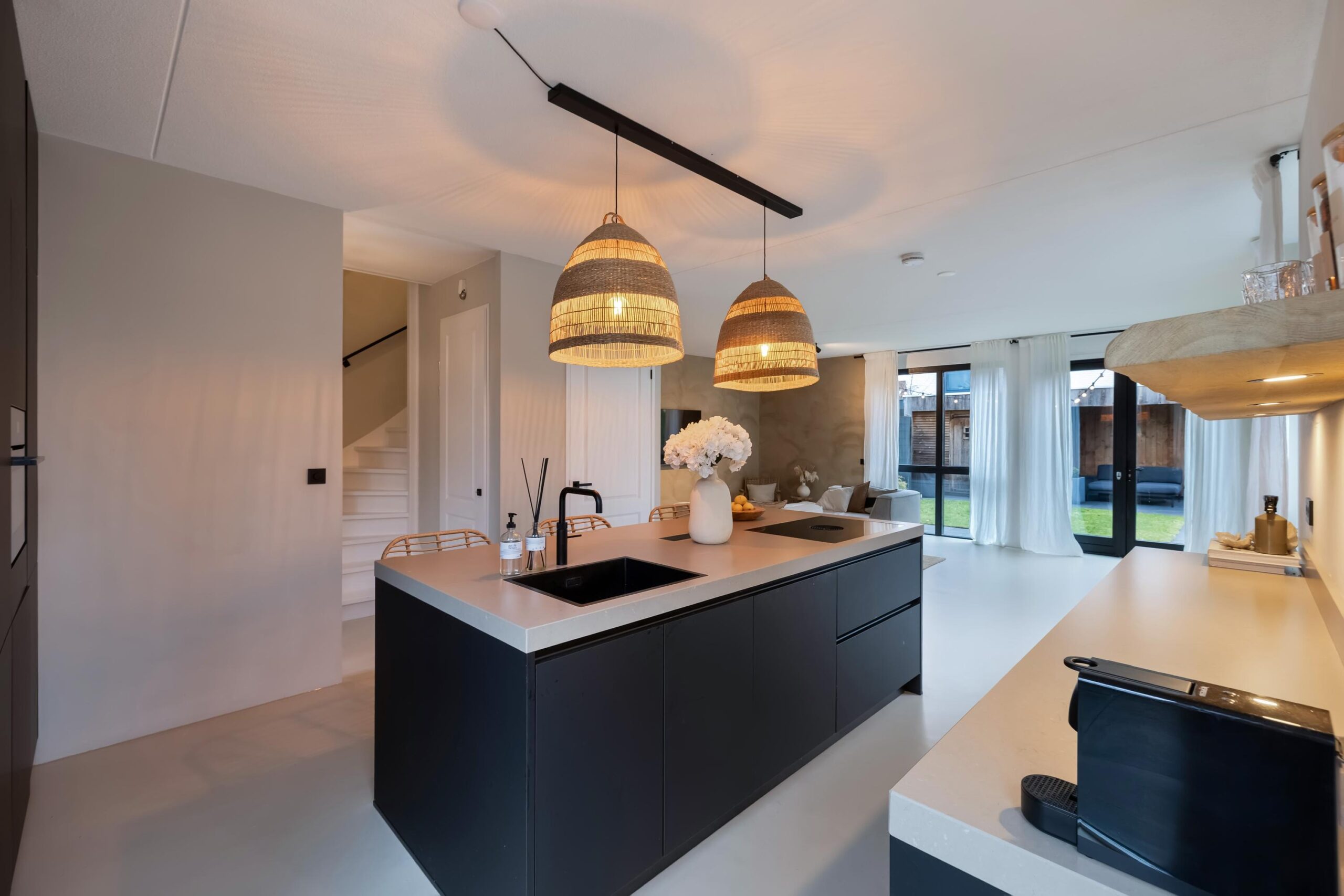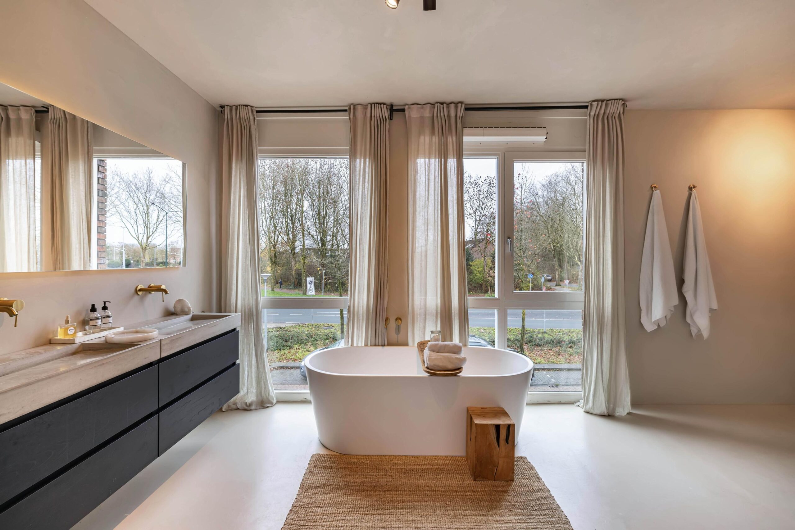 De gehele begane grond is voorzien vloerverwarming en de wanden zijn bewerkt met beton Cire.