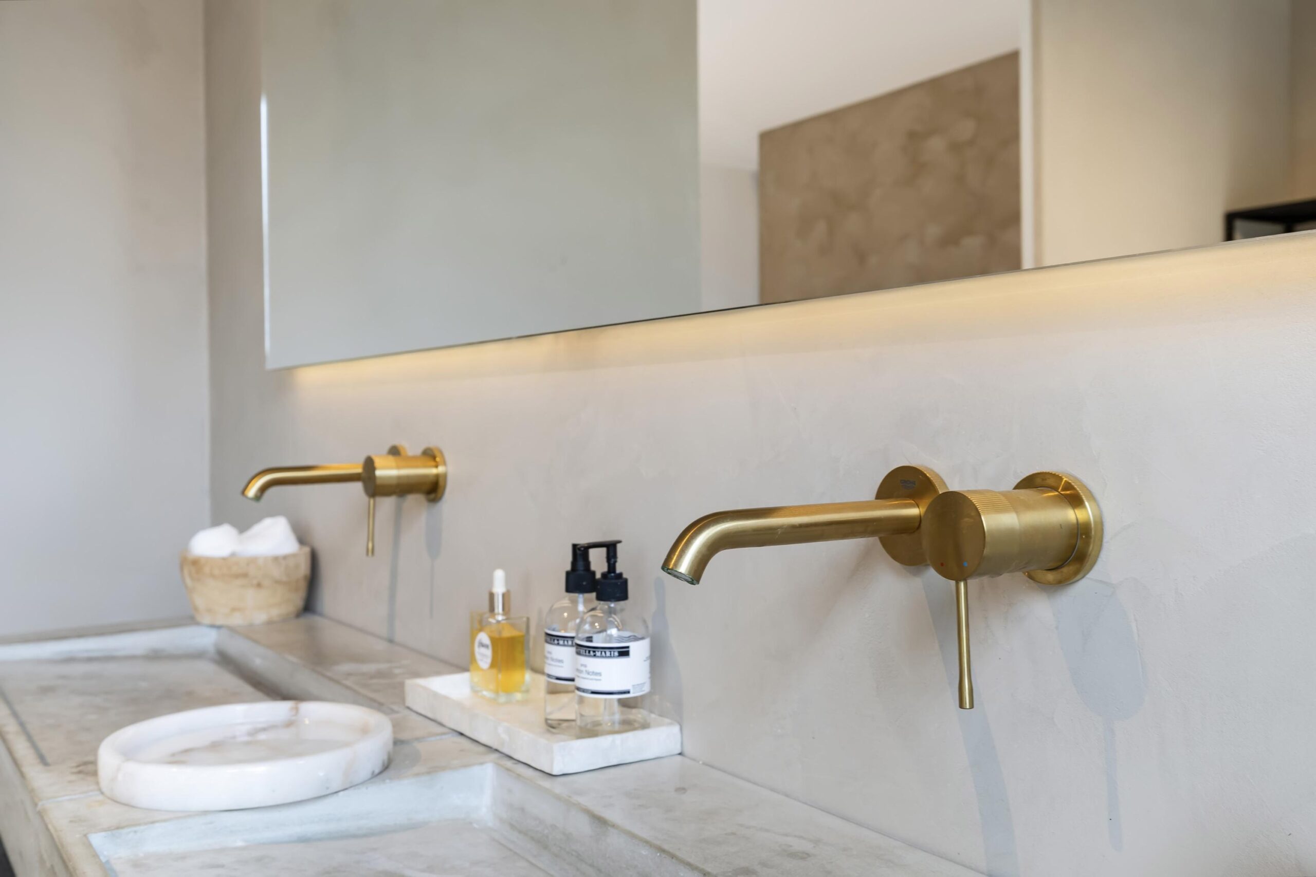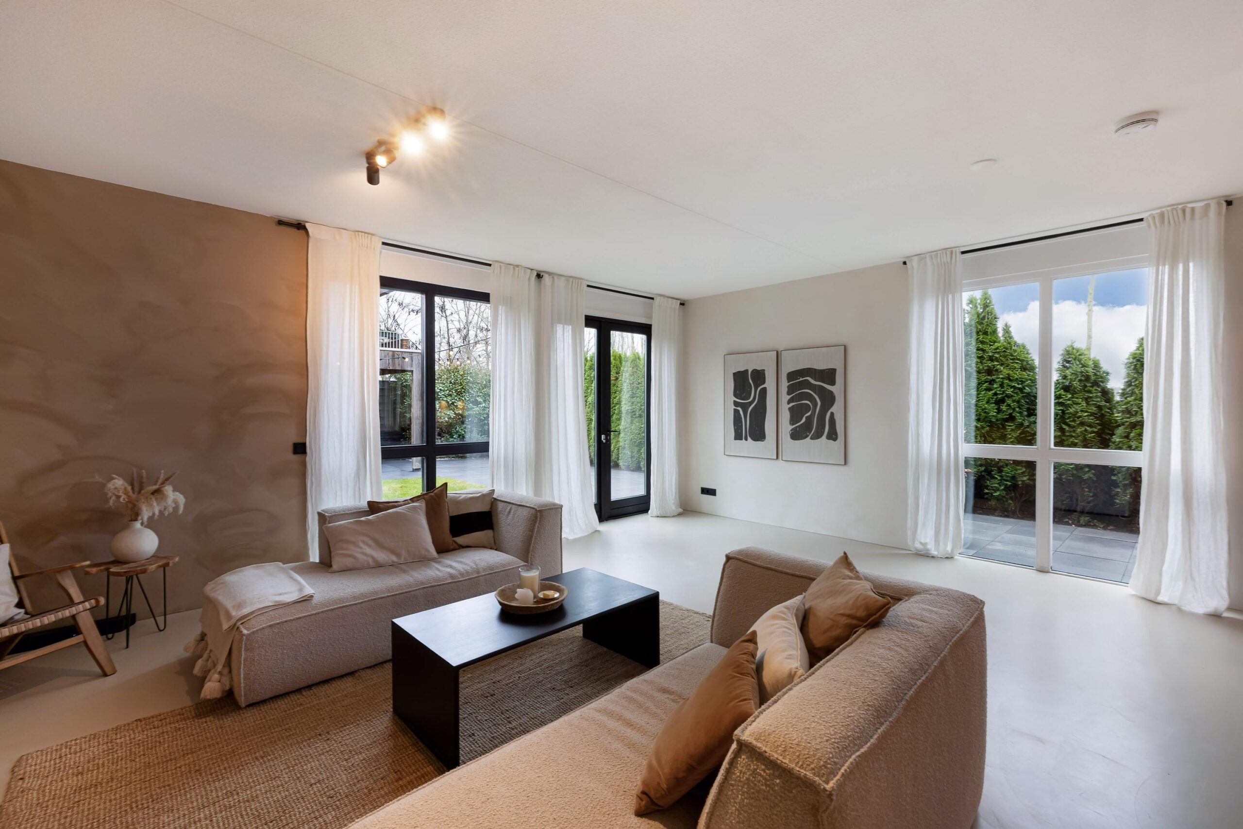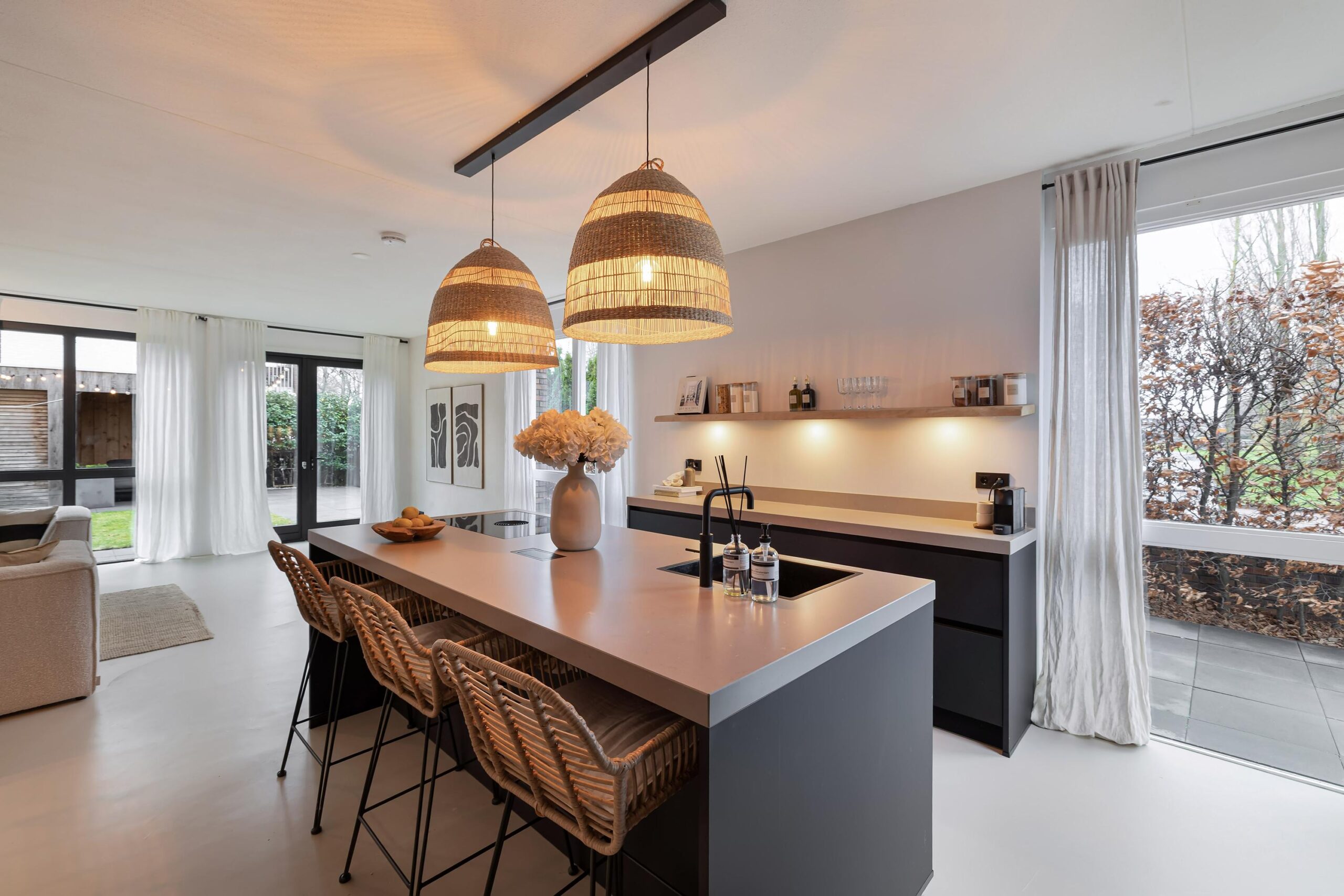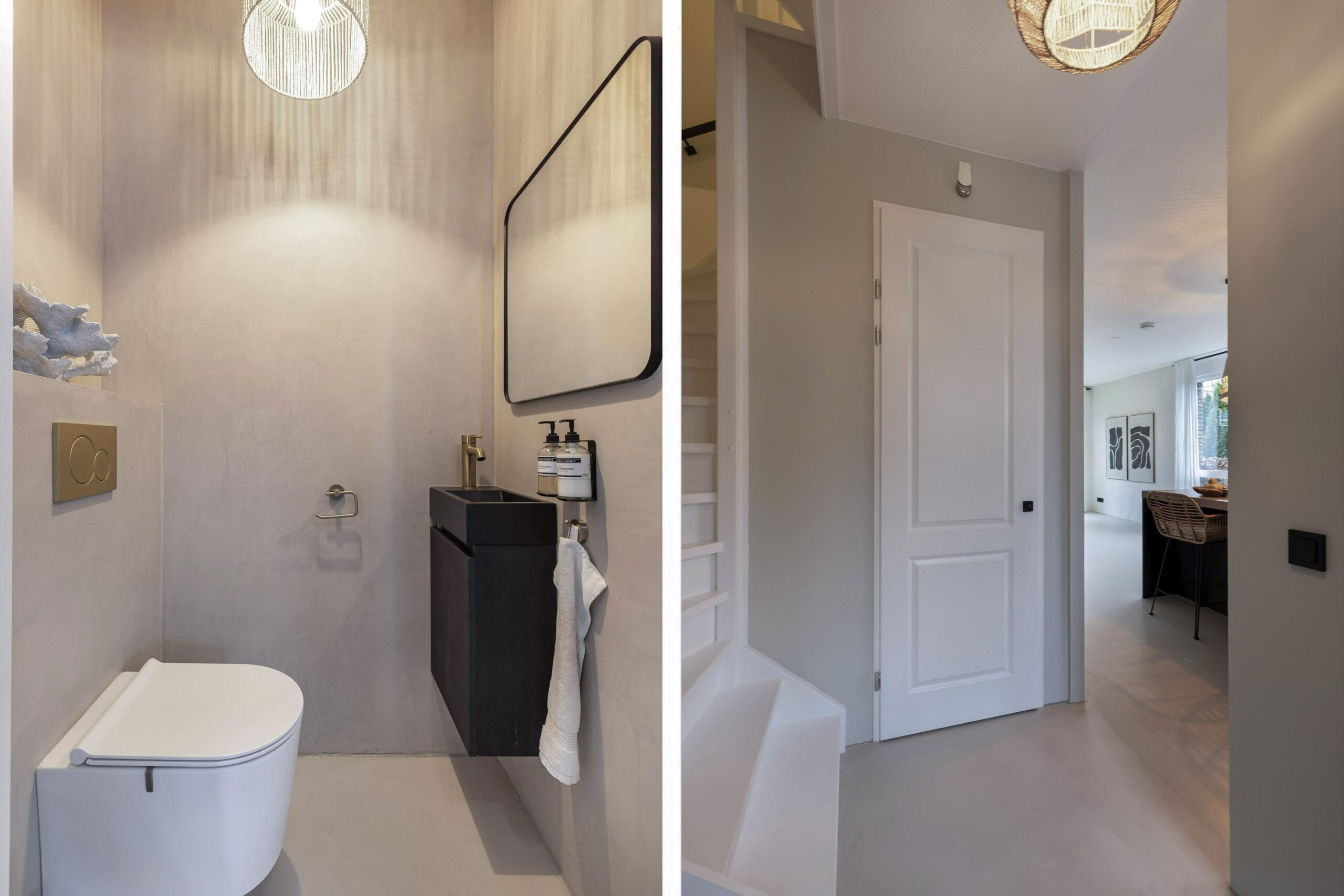 De gehele begane grond is voorzien vloerverwarming en de wanden zijn bewerkt met beton Cire.