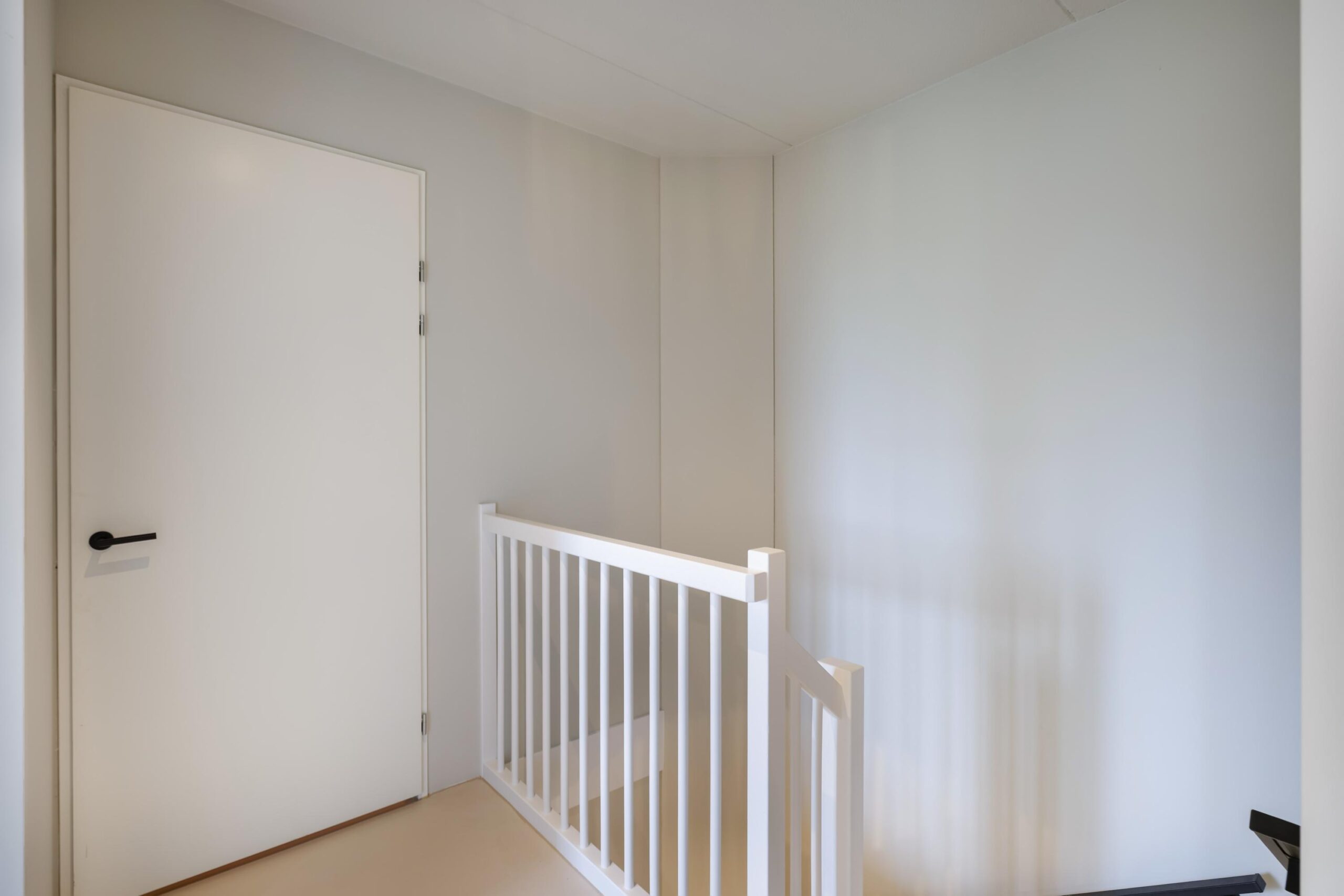Overloop, 2e en 3e slaapkamer, bergruimte met opstelling voor de wasapparatuur, mechanische ventilatiebox en de cv-ketel.