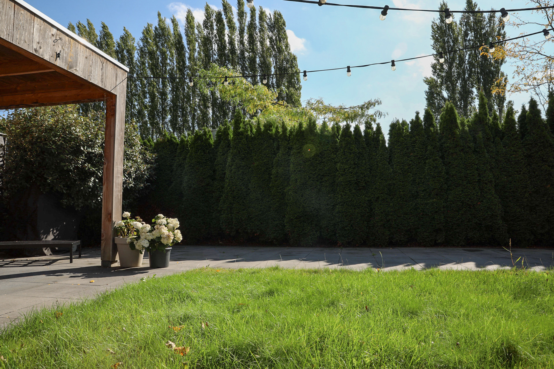 De tuin is in 2020 bestraat. In de tuin bevindt zich tevens een berging en sfeervolle houten overkapping.