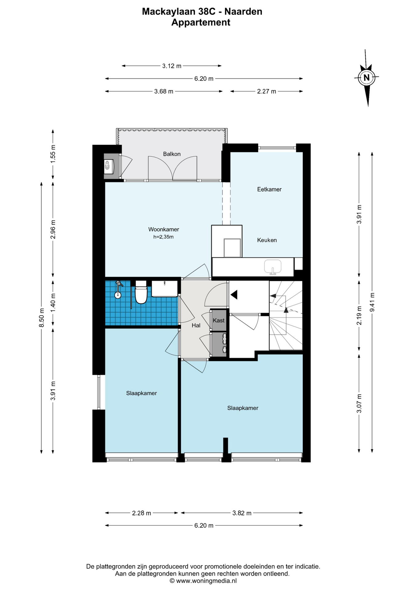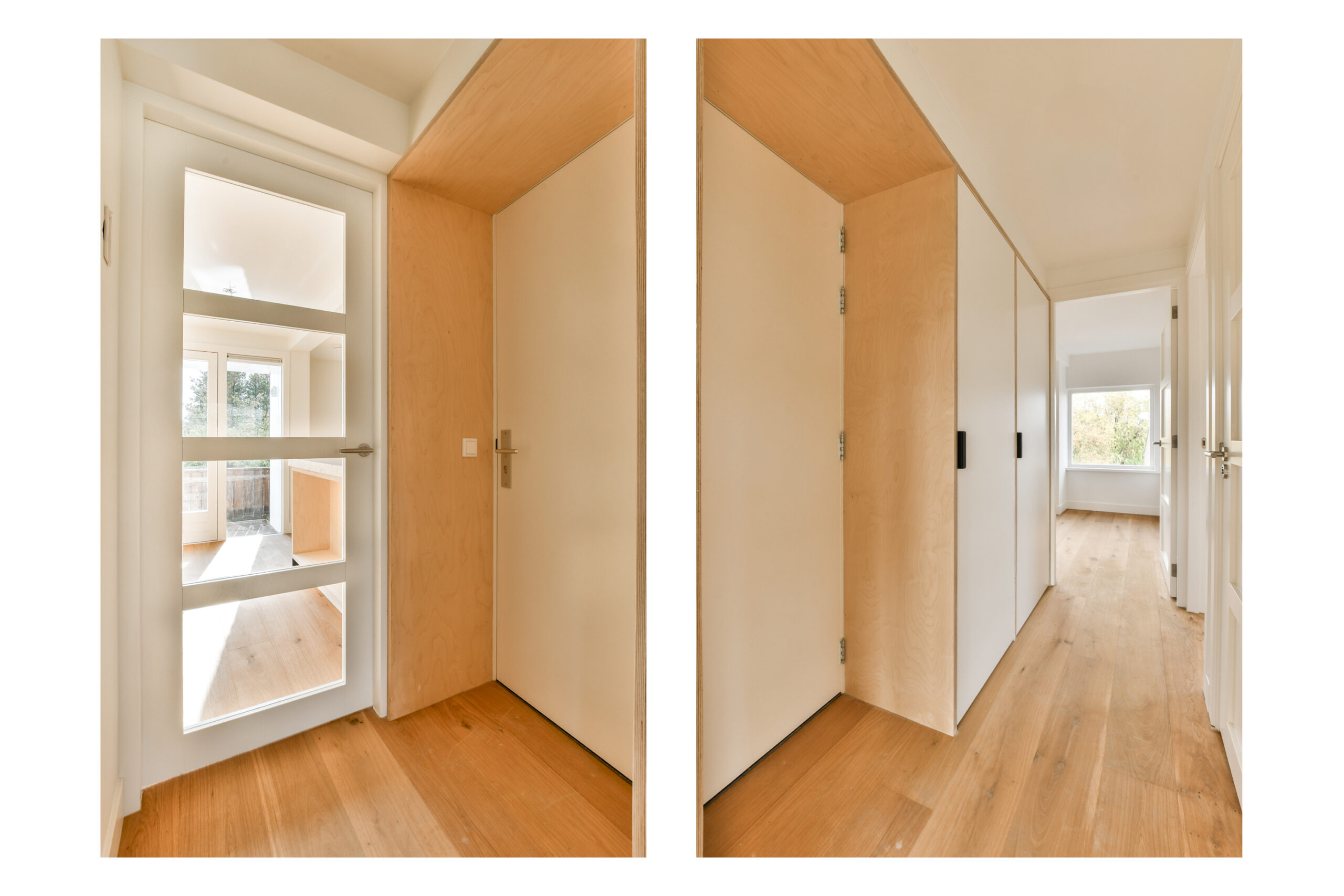 Via de gezamenlijke entree en het trappenhuis bereik je het appartement op de tweede verdieping. De hal biedt toegang tot alle vertrekken en beschikt over twee vaste kasten met meterkast.