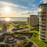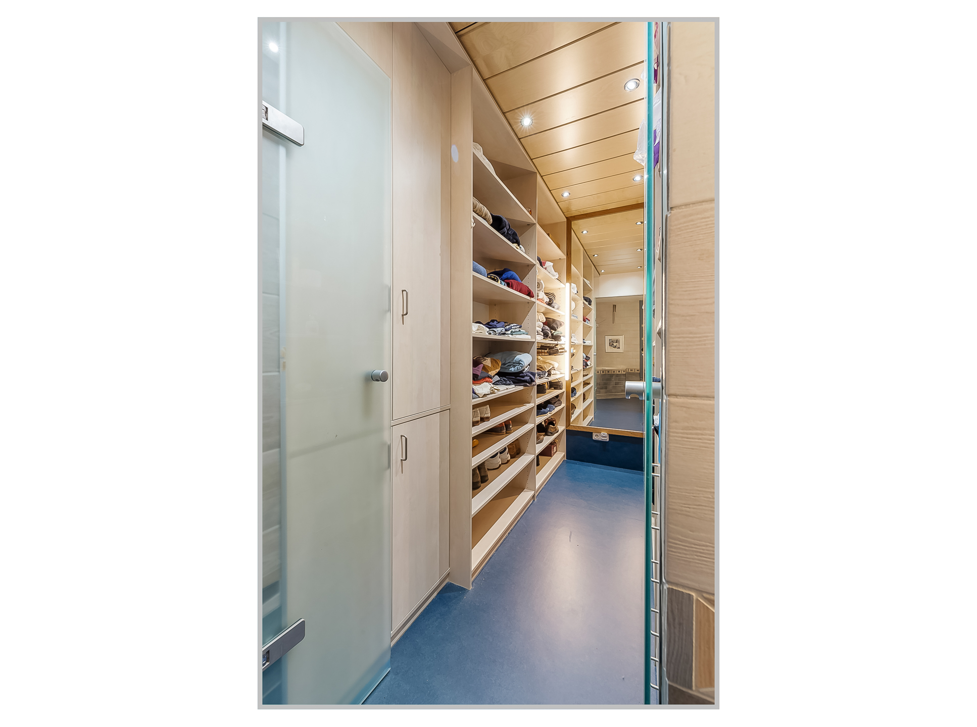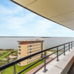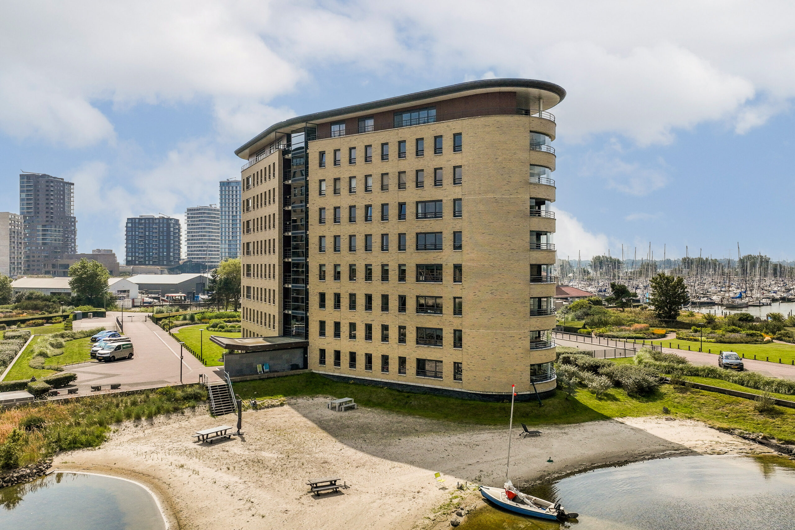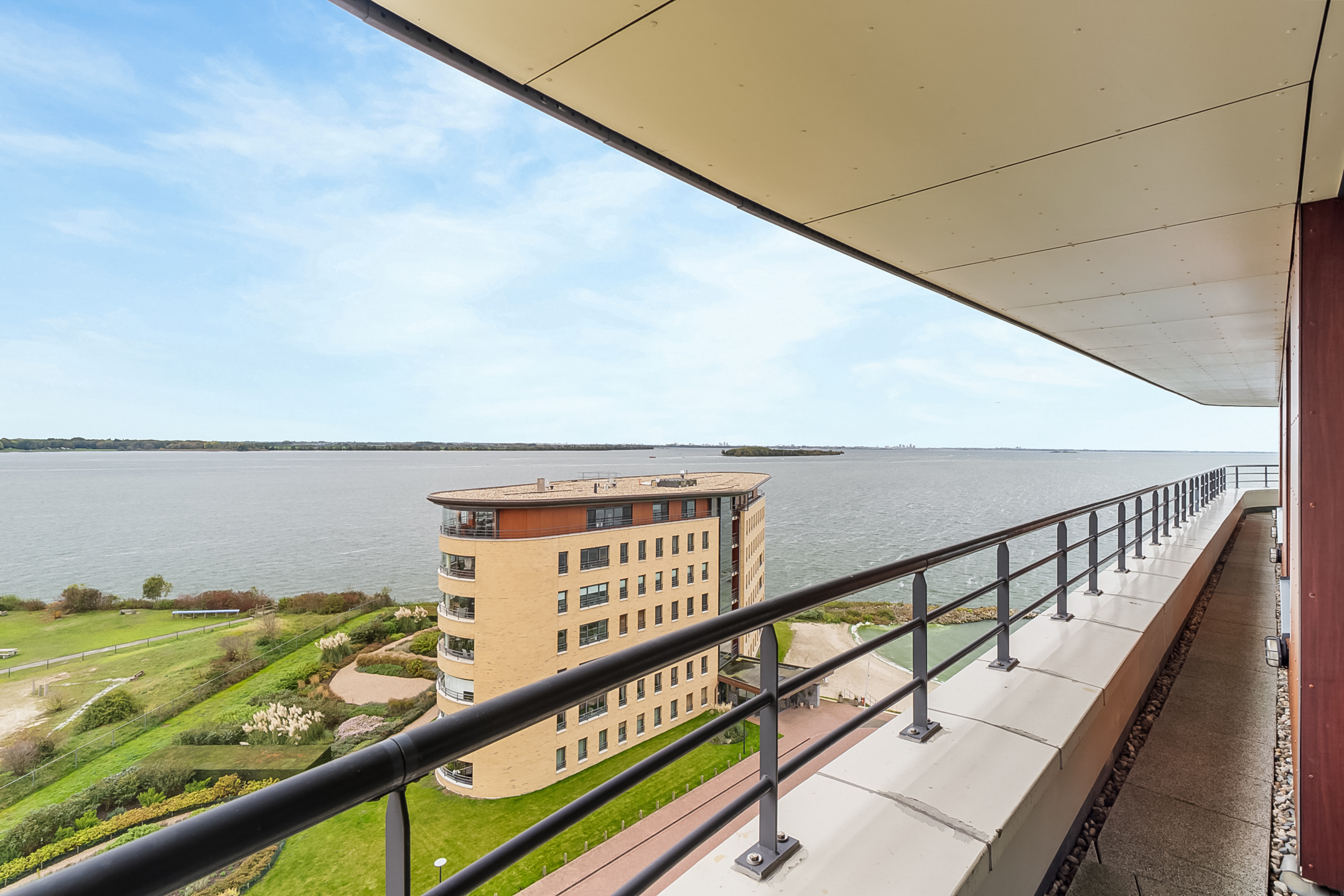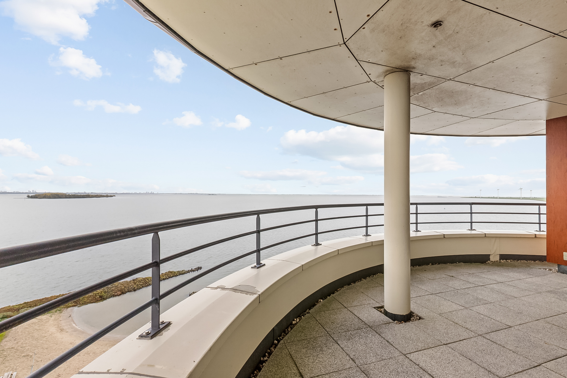 Bij binnenkomst raakt u direct betoverd door het directe zicht op Pampus. De ruime en brede gang die uitmondt in het woongedeelte is voorzien van een lichtkoepel, waarin de ondergaande zon regelmatig voor een ware kleurexplosie zorgt. Vanuit elke ruimte van dit half-ovale appartement is er zicht op de weidse en vrije omgeving van het Zuidoosten, via het Westen, naar het Noordoosten. U kunt zelfs geheel rondlopen aan de buitenzijde, van terras naar terras en verder….. Wie de rustgevende werking…