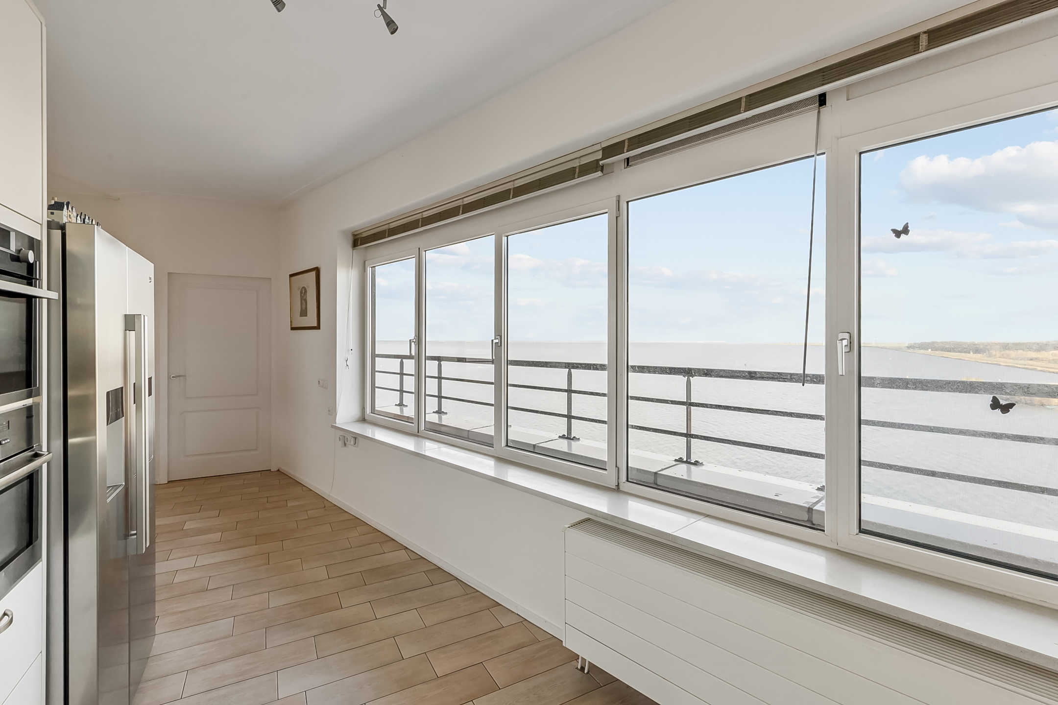 De halfopen keuken kijkt richting het Paard van Marken. De aansluitende bijkeuken biedt die extra meters die u mag verwachten in een penthouse van deze allure.