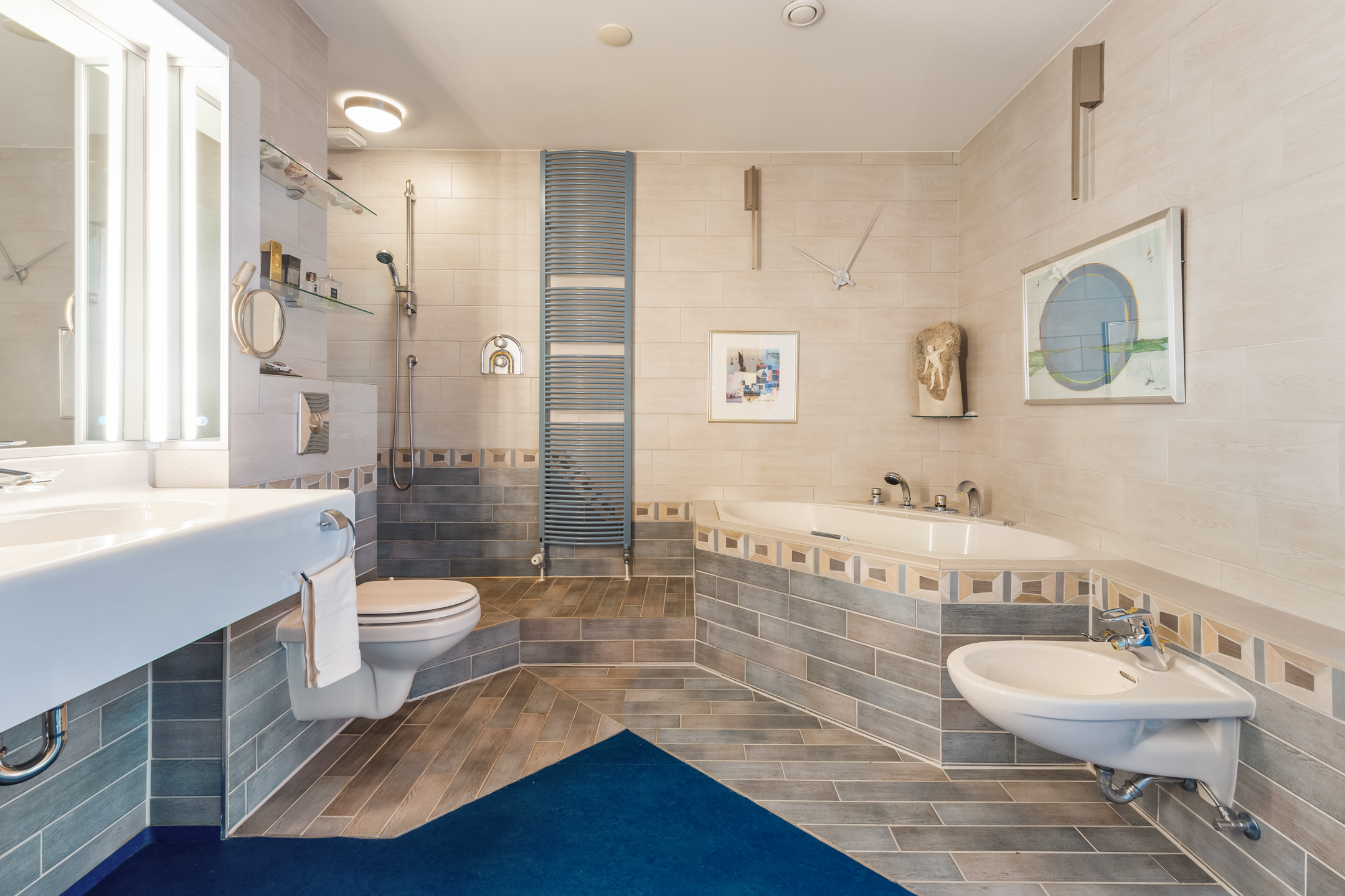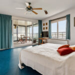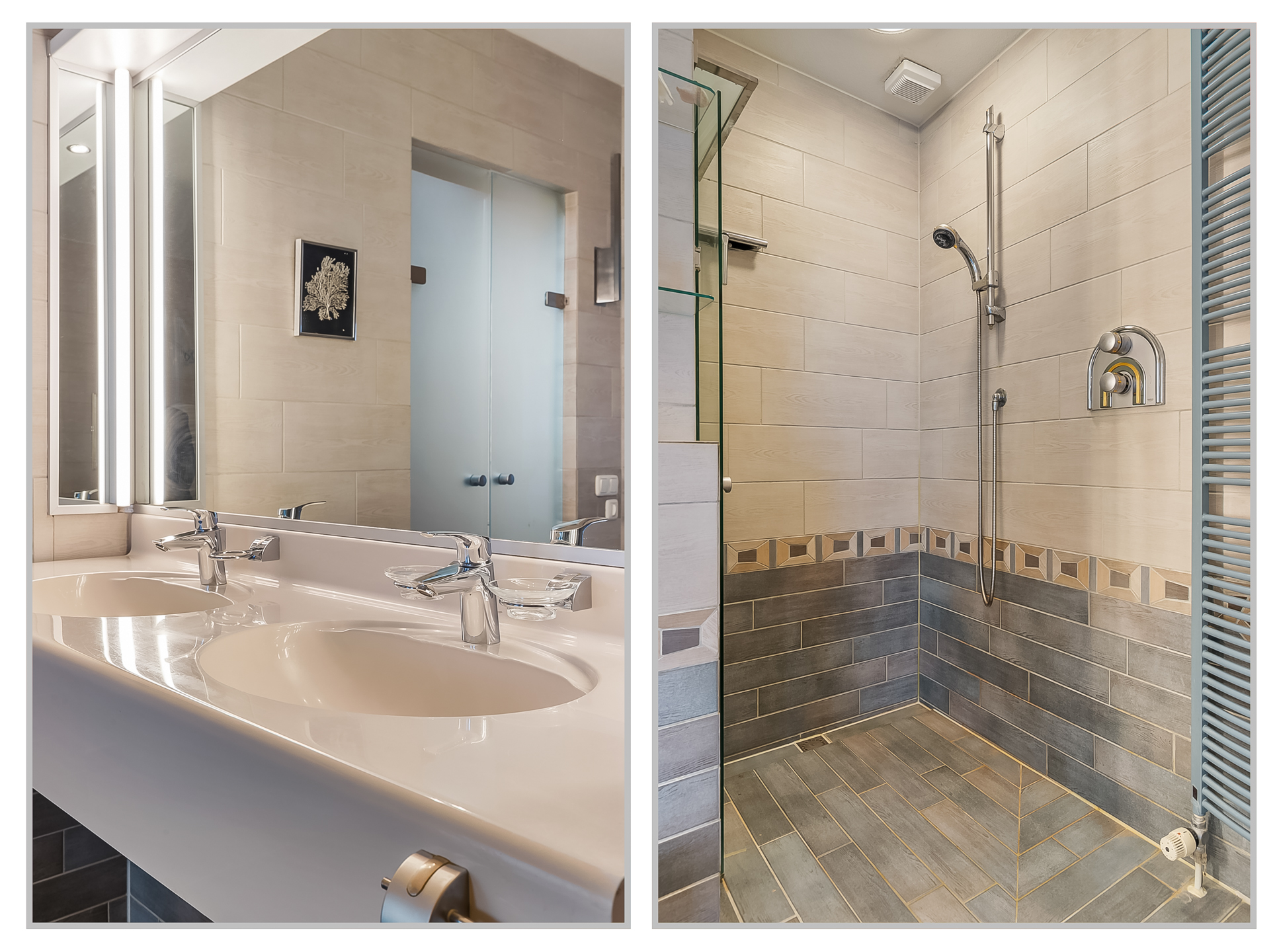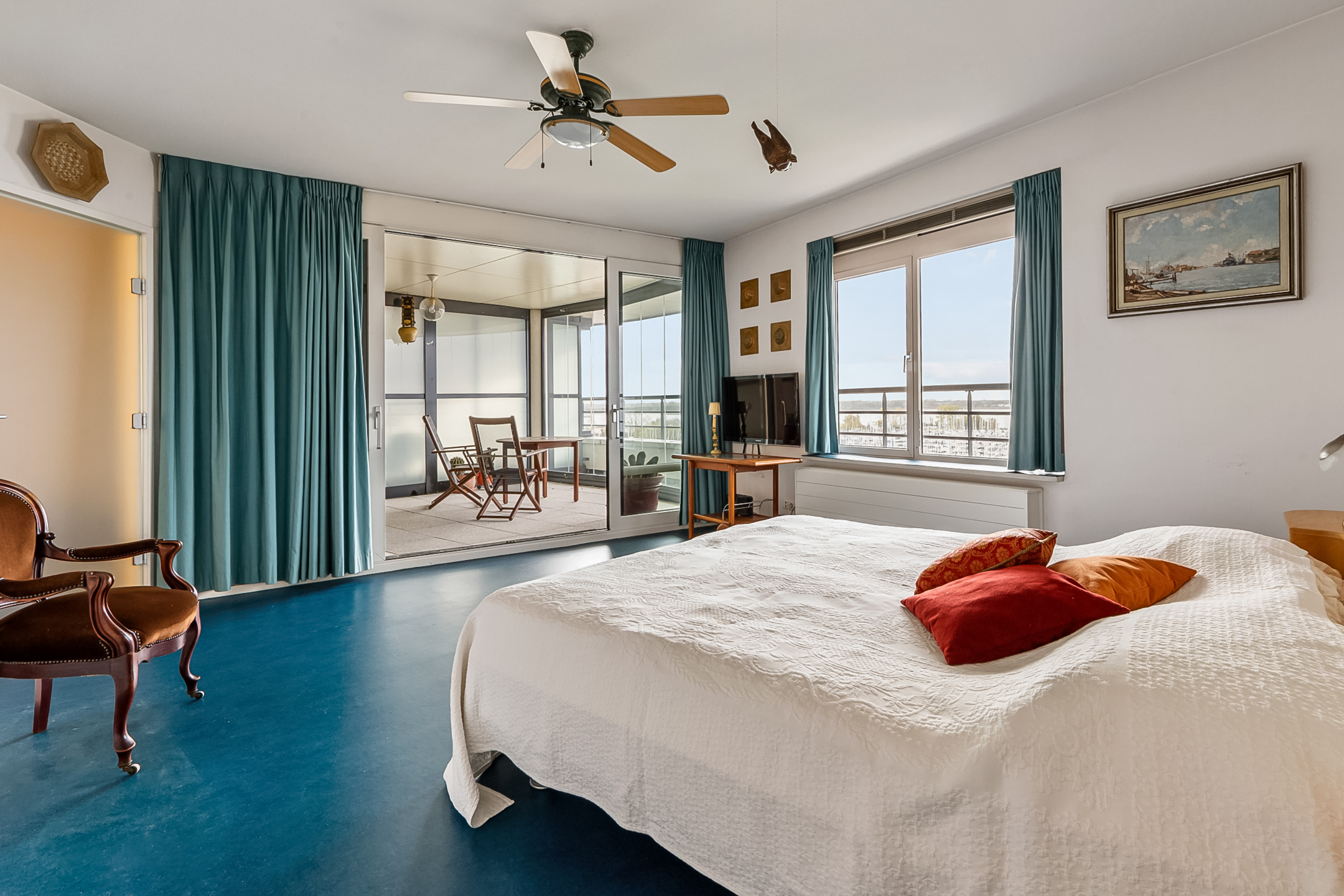 De master bedroom (ca. 20m²) beschikt over een overdekt terras (ca. 18m²) op het Zuiden, voorzien van een schuifbare glazen pui voor koelere dagen. Aangrenzend aan dit slaapvertrek bevindt zich een private bathroom met bad, douche, dubbele wastafel, toilet, bidet en (ernaast) een grote walk-in closet. Een grote guest room (voorheen twee kamers) is nu in gebruik als TV/logeer-kamer en beschikt eveneens over een eigen badkamer met douche, dubbele wastafel en toilet. Een garderoberuimte en een goed geoutilleerde wasruimte vervolmaken dit zeer goed onderhouden penthouse.