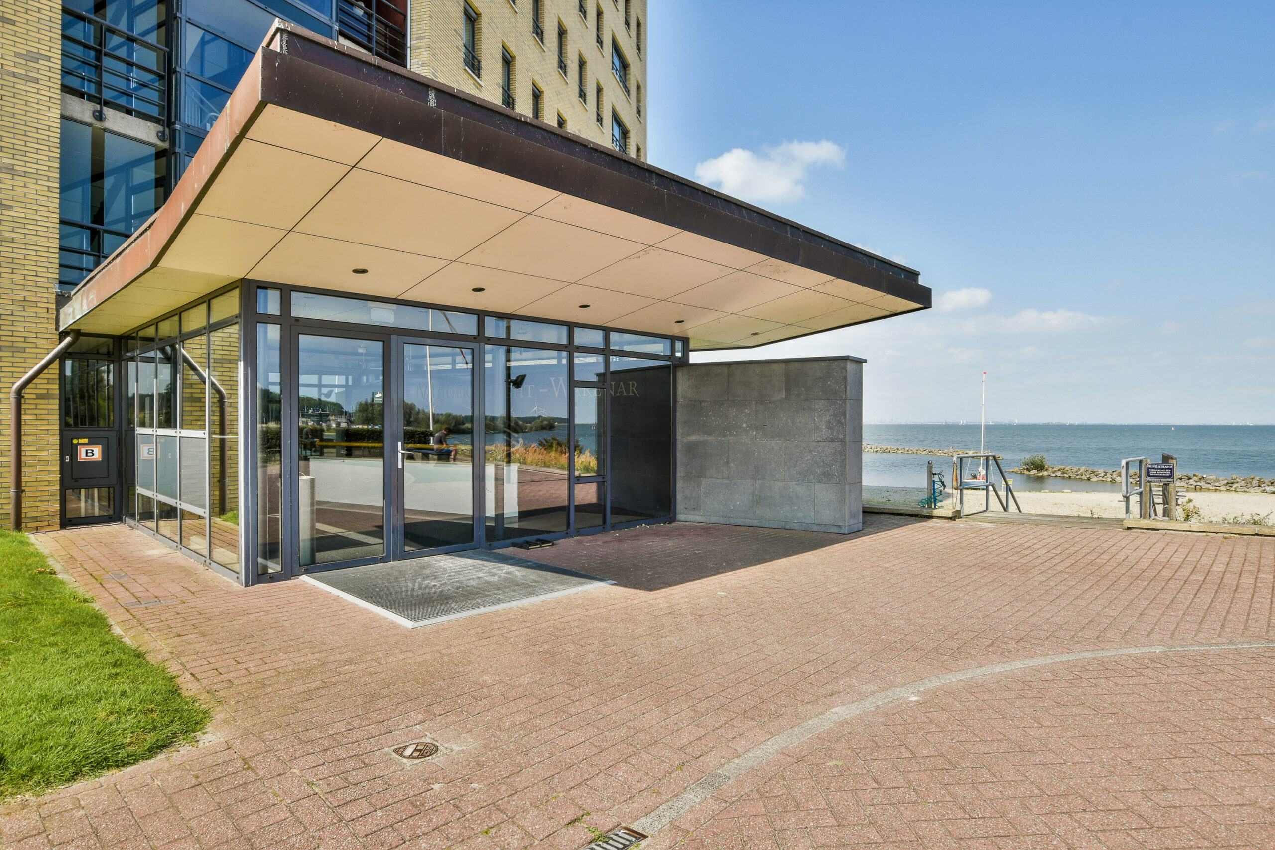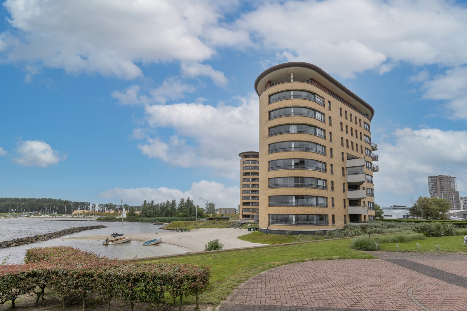 Bij binnenkomst raakt u direct betoverd door het directe zicht op Pampus. De ruime en brede gang die uitmondt in het woongedeelte is voorzien van een lichtkoepel, waarin de ondergaande zon regelmatig voor een ware kleurexplosie zorgt. Vanuit elke ruimte van dit half-ovale appartement is er zicht op de weidse en vrije omgeving van het Zuidoosten, via het Westen, naar het Noordoosten. U kunt zelfs geheel rondlopen aan de buitenzijde, van terras naar terras en verder….. Wie de rustgevende werking van water(sport) en een verre horizon waardeert is hier helemaal op z’n plek!