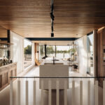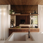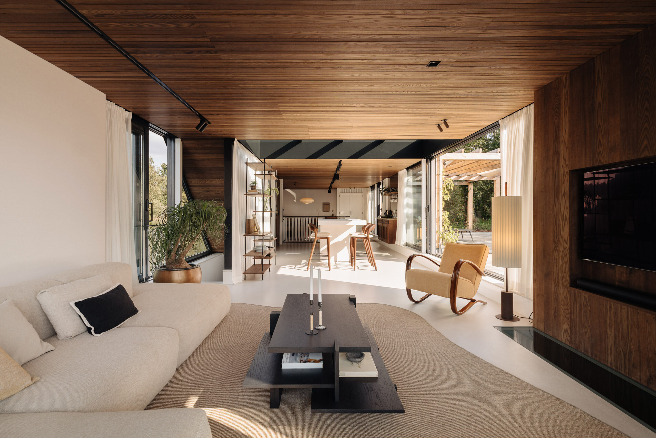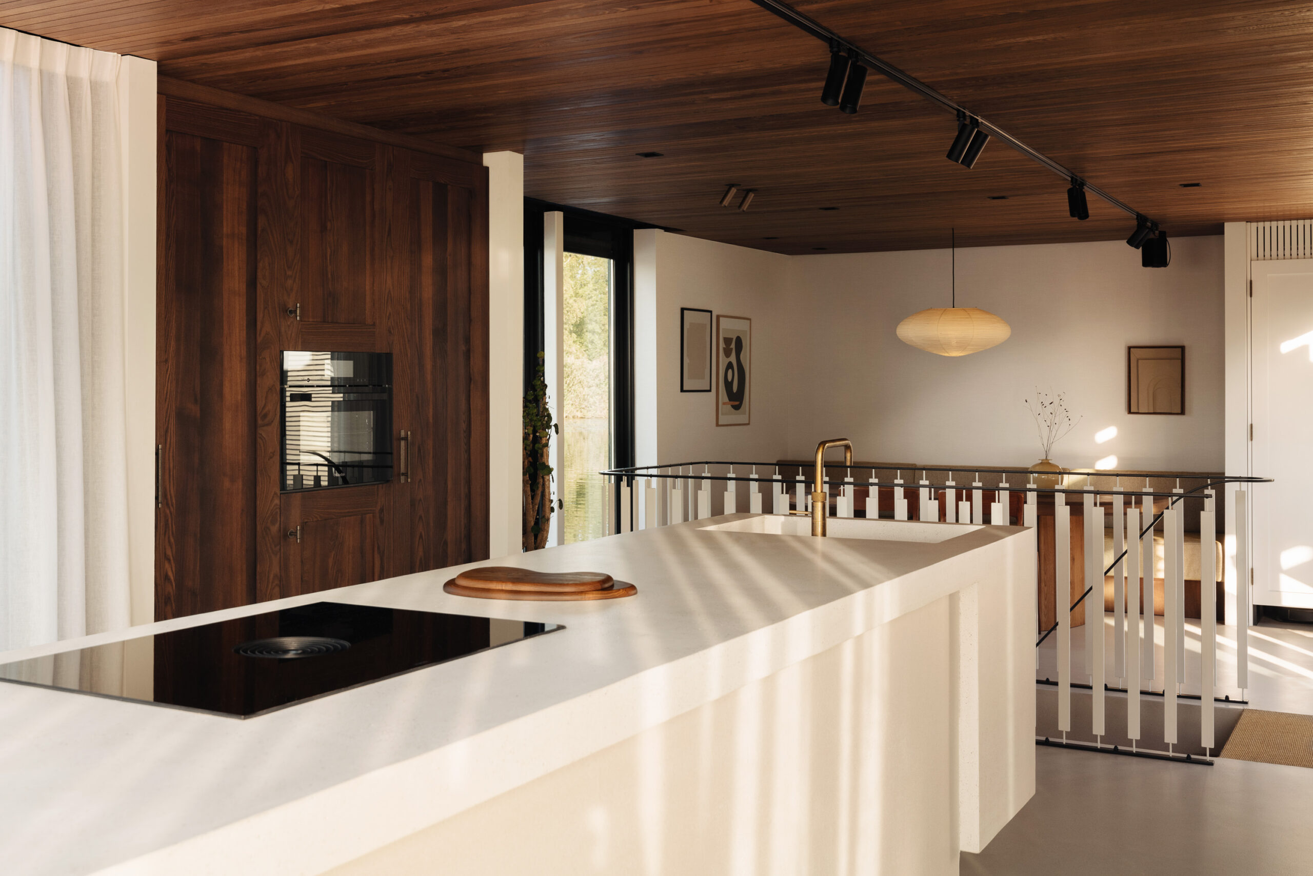 Interieur én tuin zijn ontworpen door Studio Asker, in een ingetogen Scandinavisch-Japandi palet van warm hout, natuursteen en natuurlijke stoffen. Het resultaat is een woning die internationaal werd opgemerkt: de watervilla verscheen in Scandinavian Living en op de cover van Japandi Living van Laila Rietbergen & Joost van der Krieken.