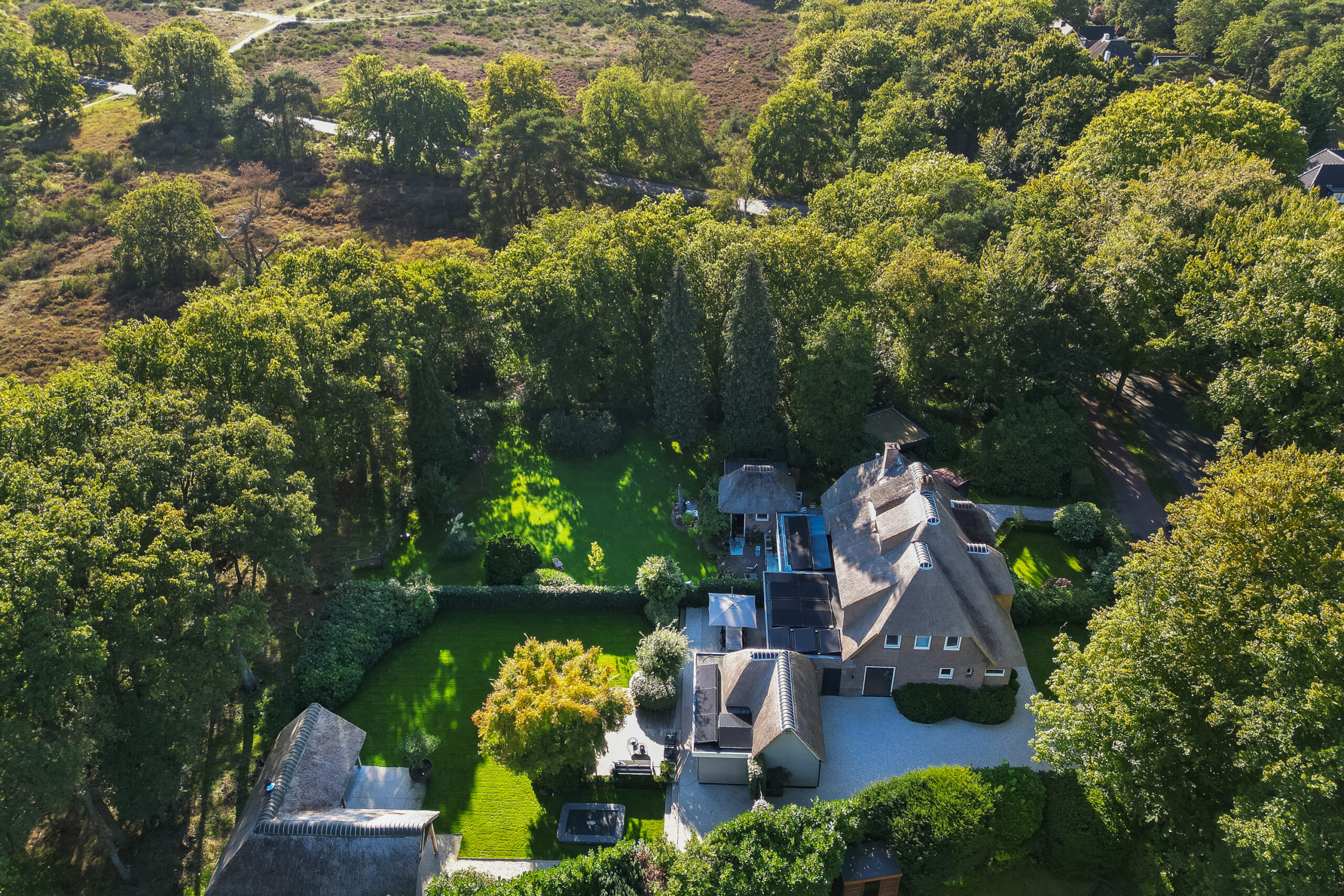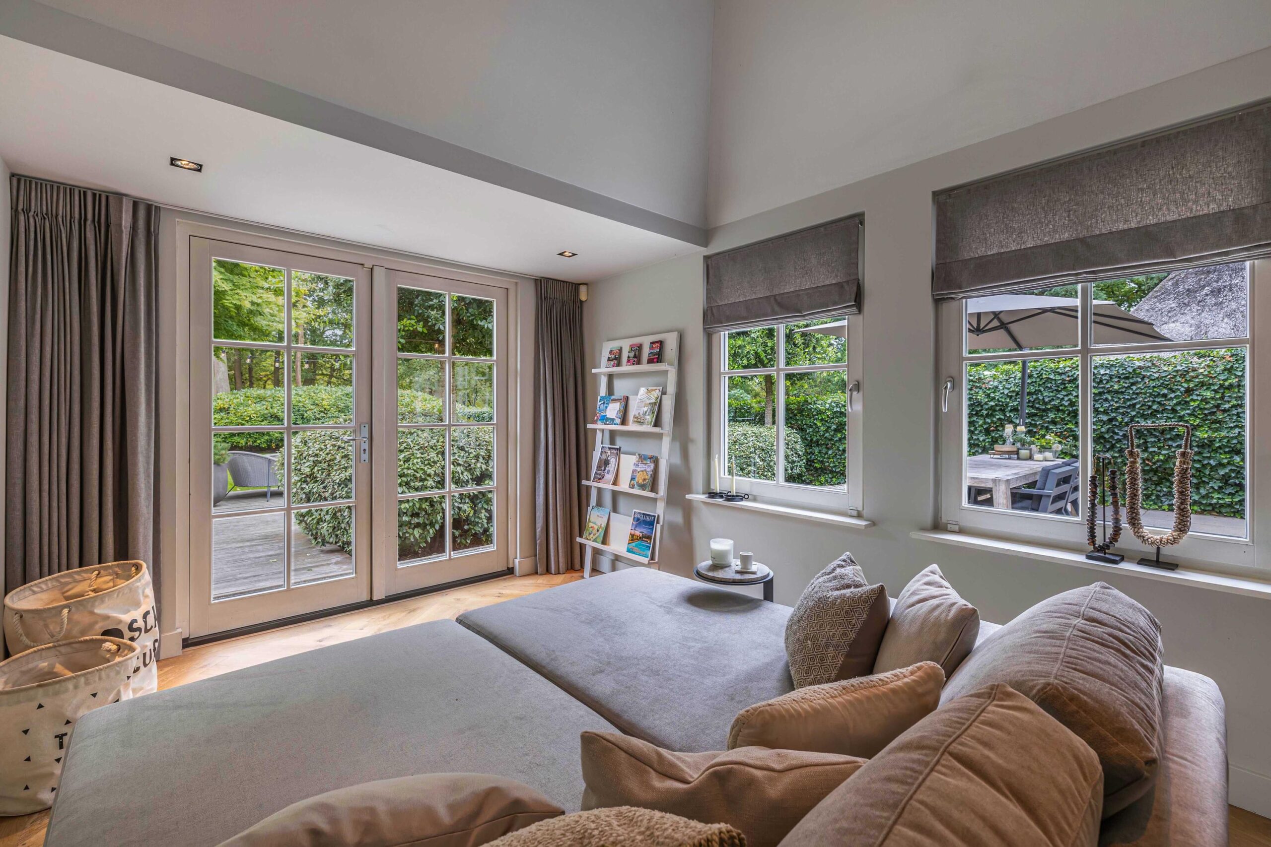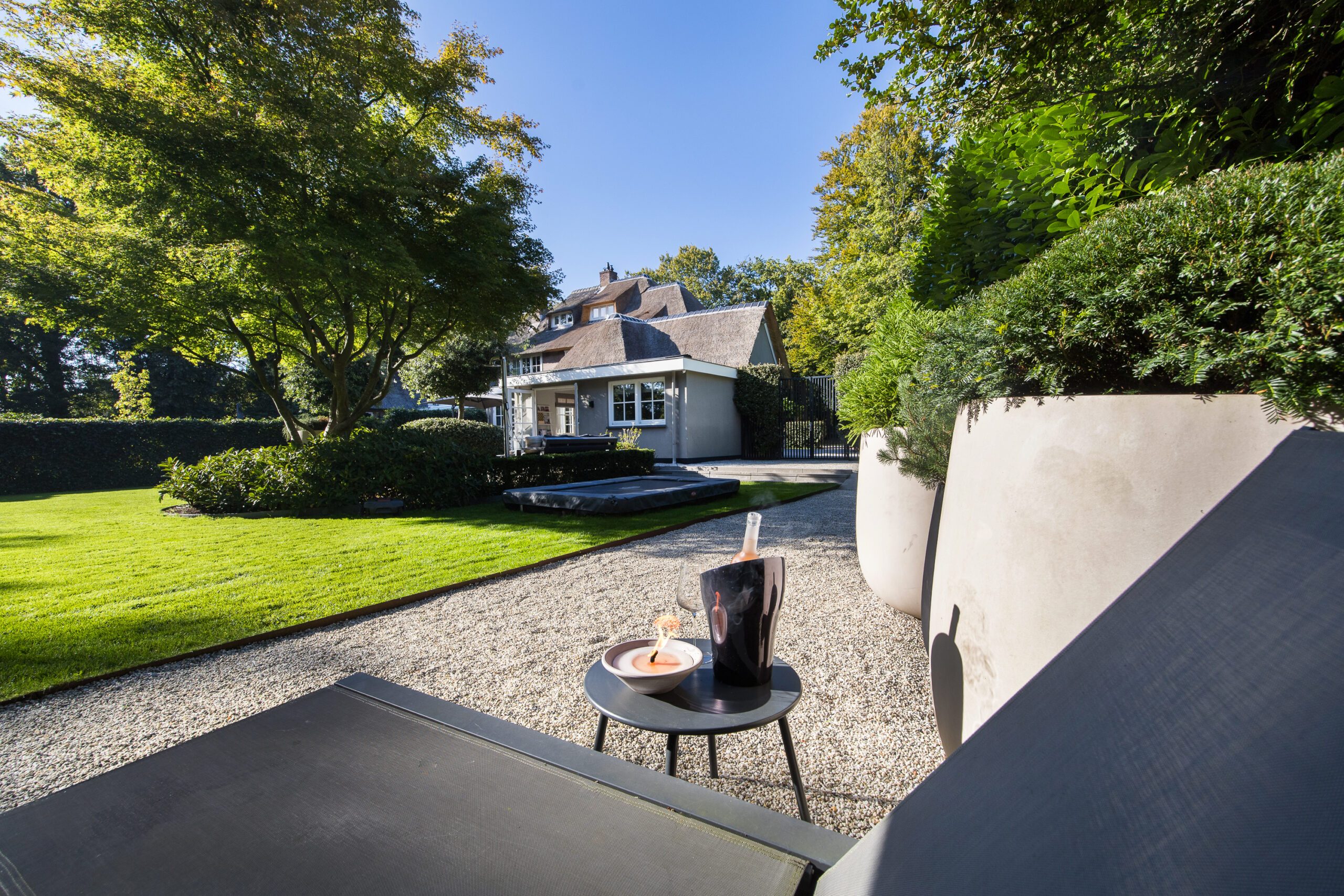 Via de dubbele openslaande deuren stapt u moeiteloos de groene, zorgvuldig aangelegde achtertuin in — een oase van rust en privacy en uitzicht over de heide.