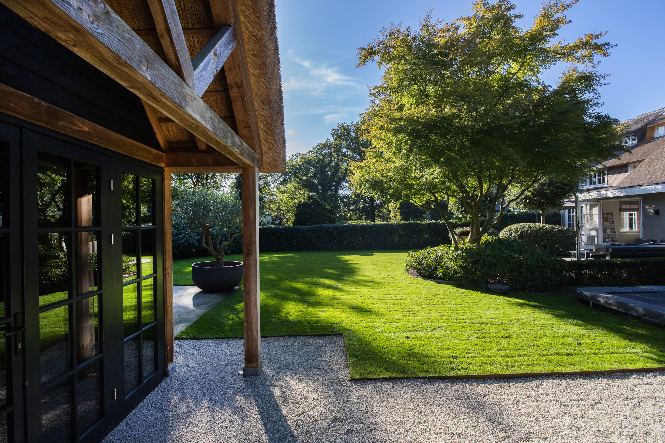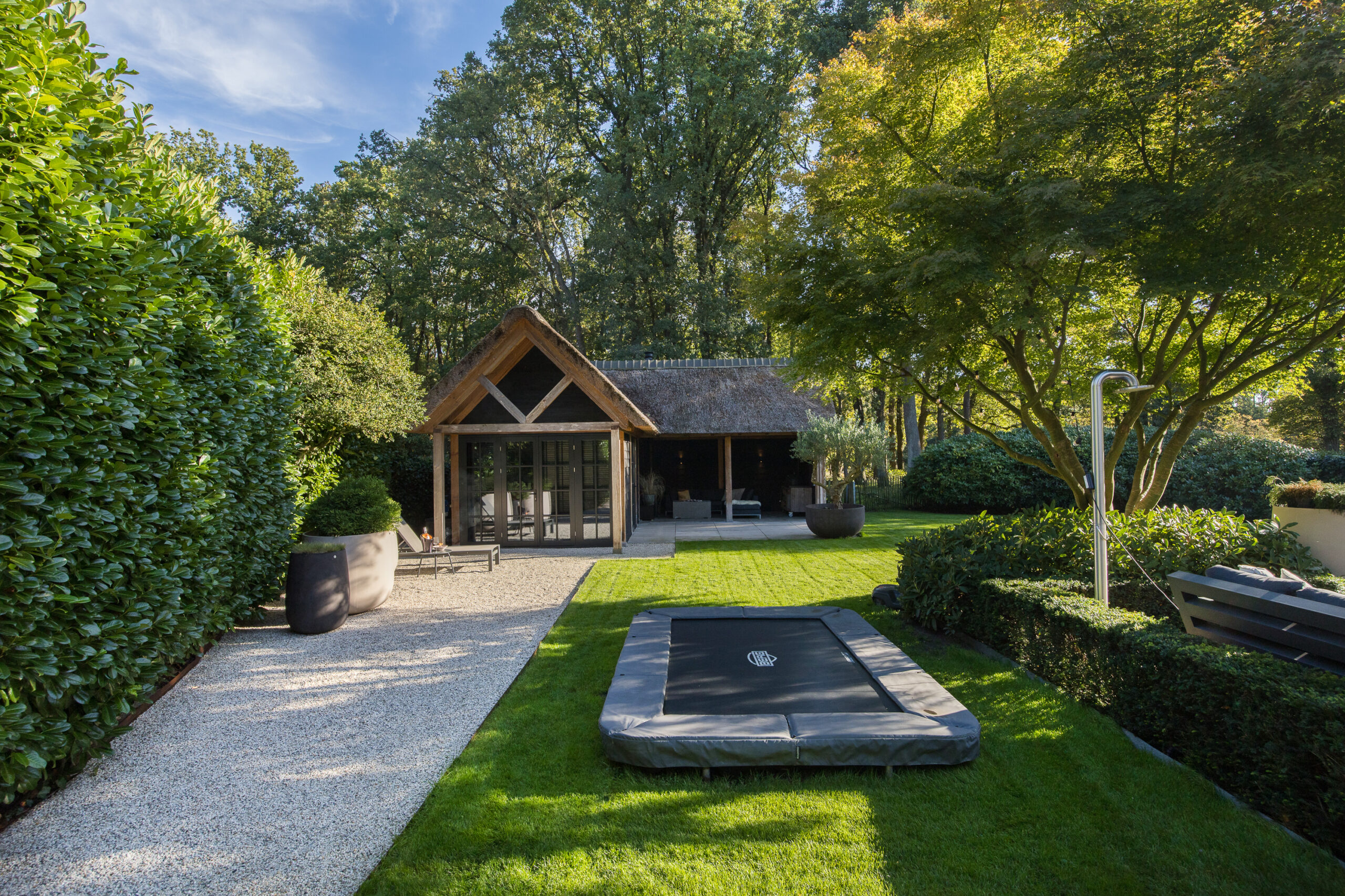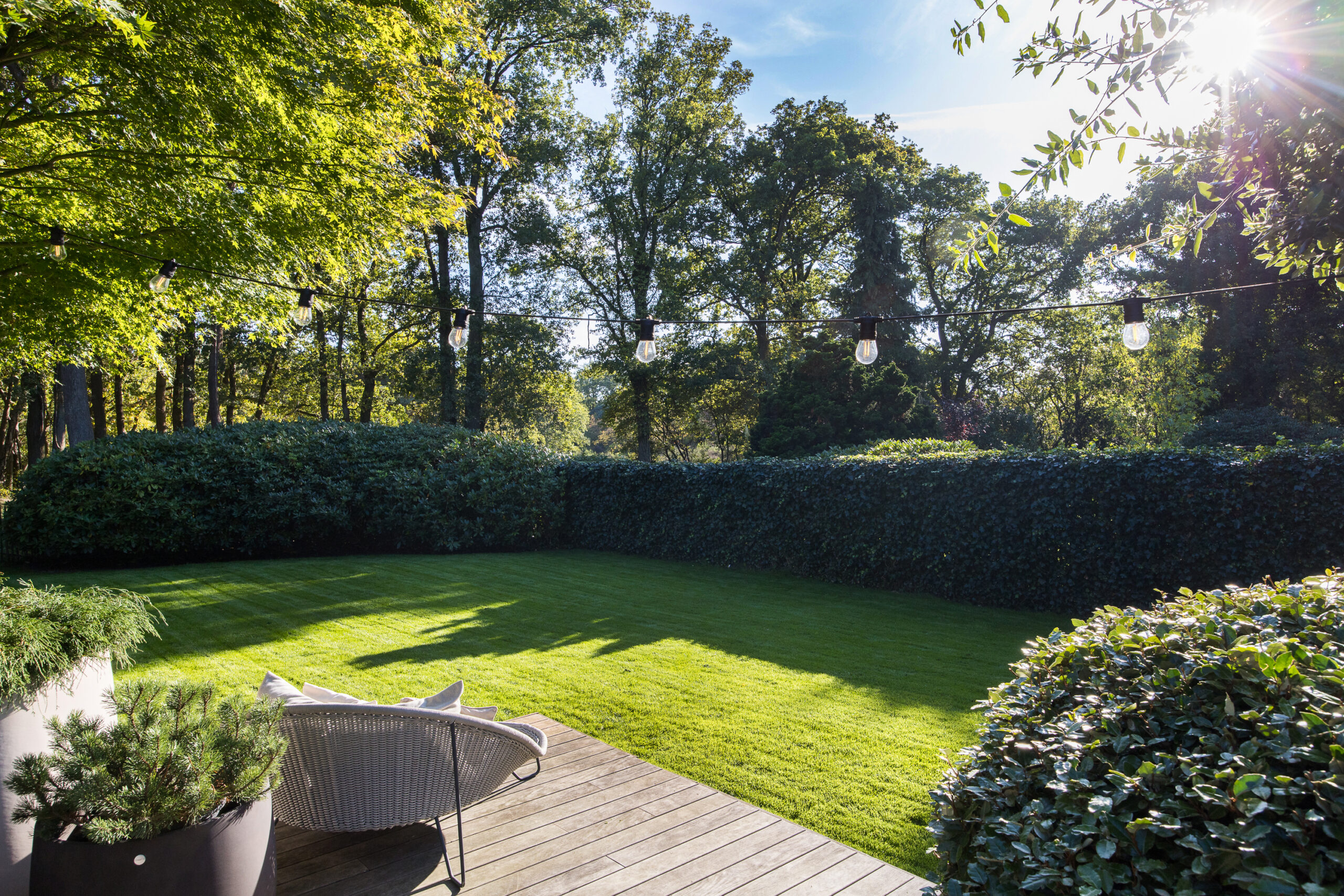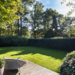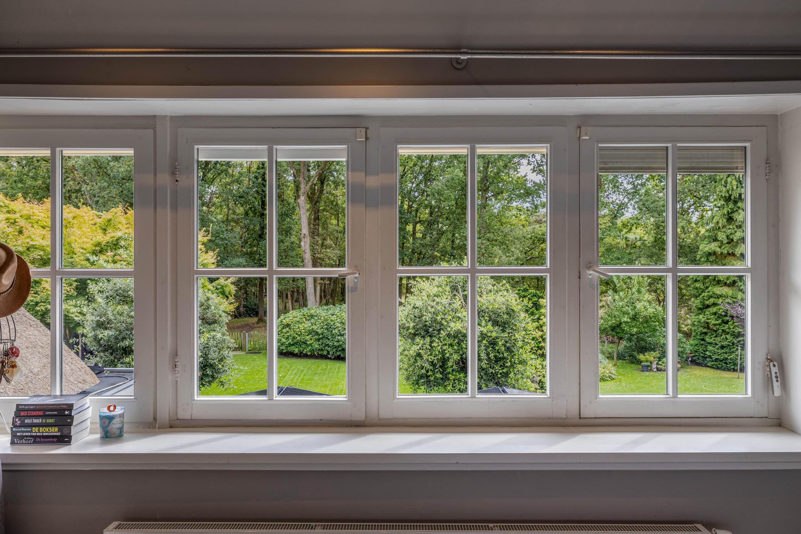 Via de dubbele openslaande deuren stapt u moeiteloos de groene, zorgvuldig aangelegde achtertuin in — een oase van rust en privacy en uitzicht over de heide.