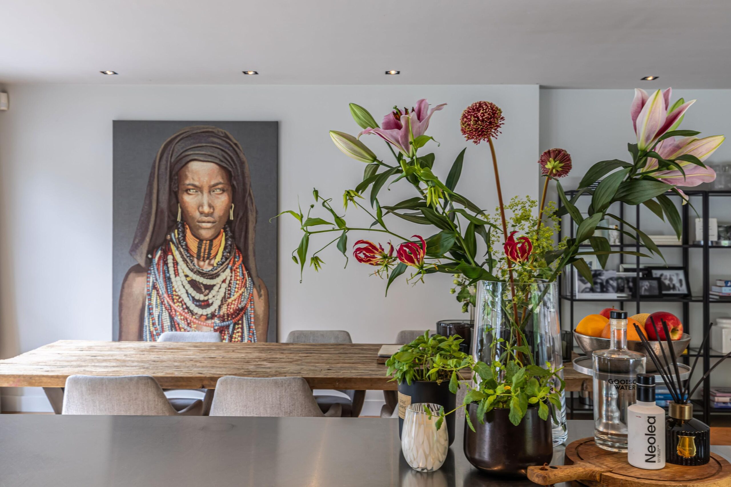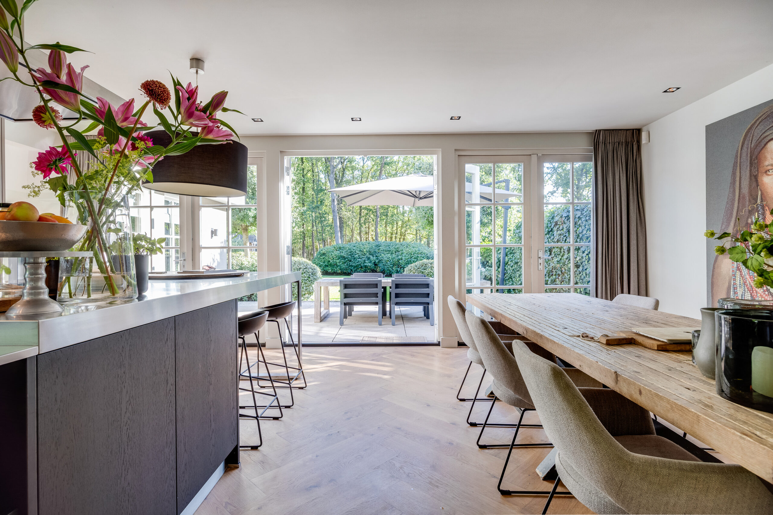 De gehele woning ademt een sfeer van tijdloze luxe en comfort.