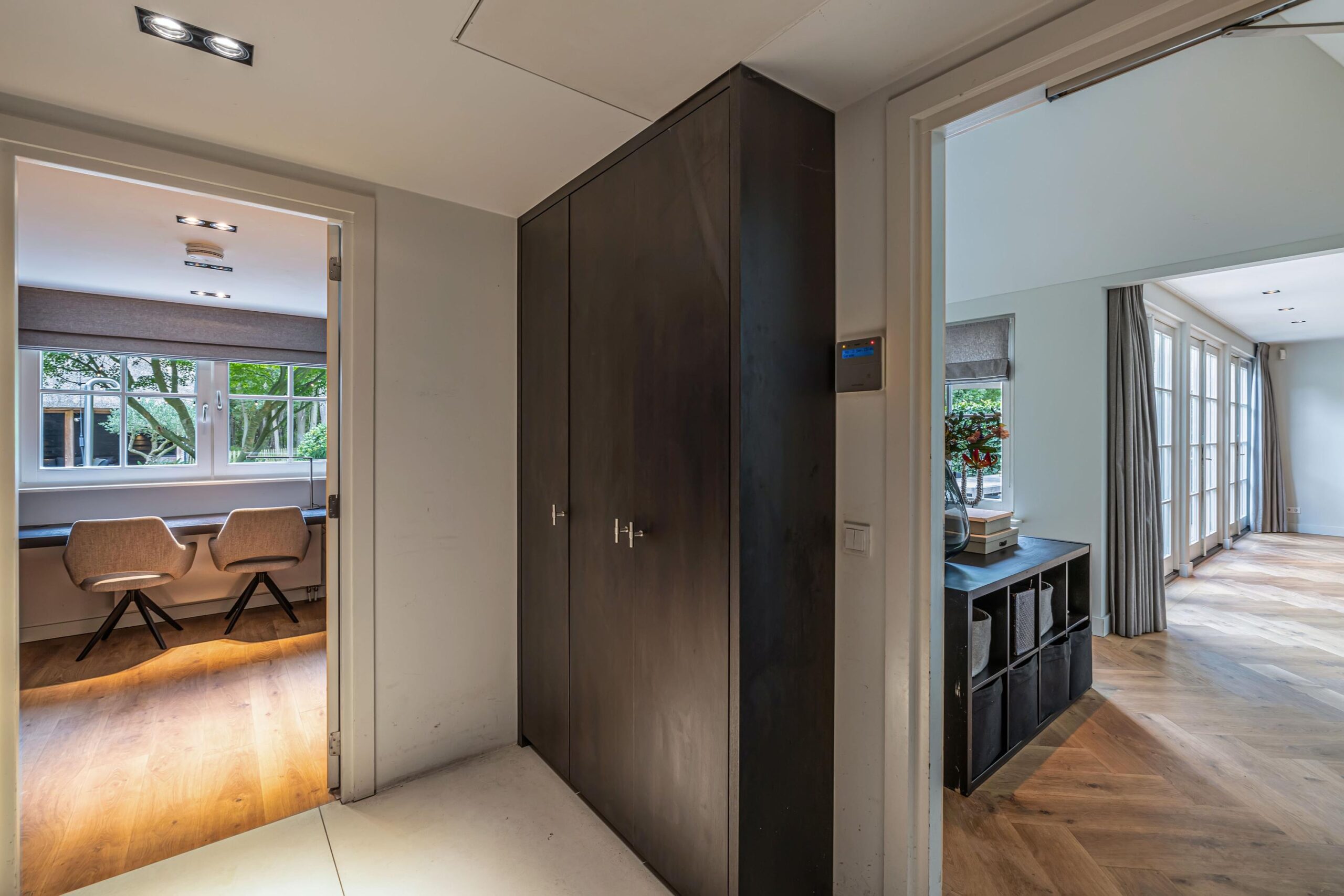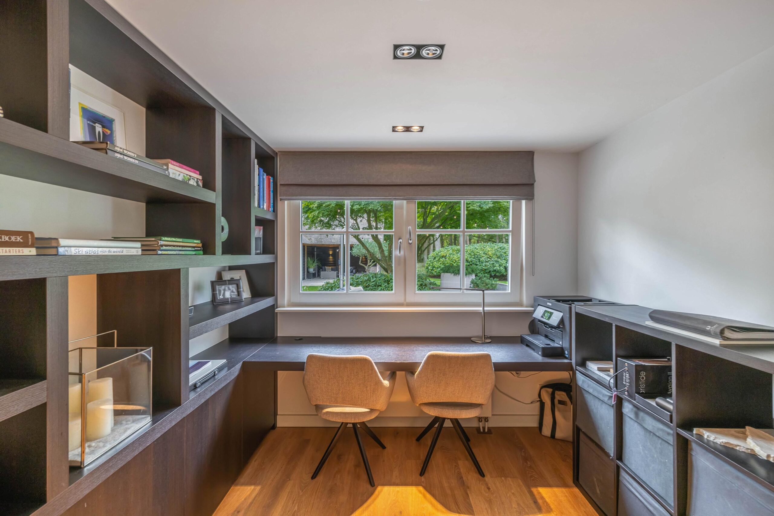 Praktisch en stijlvol is ook de voormalige garage, nu omgetoverd tot werkkamer met uitzicht op de tuin, berging met wasfaciliteiten en een…