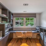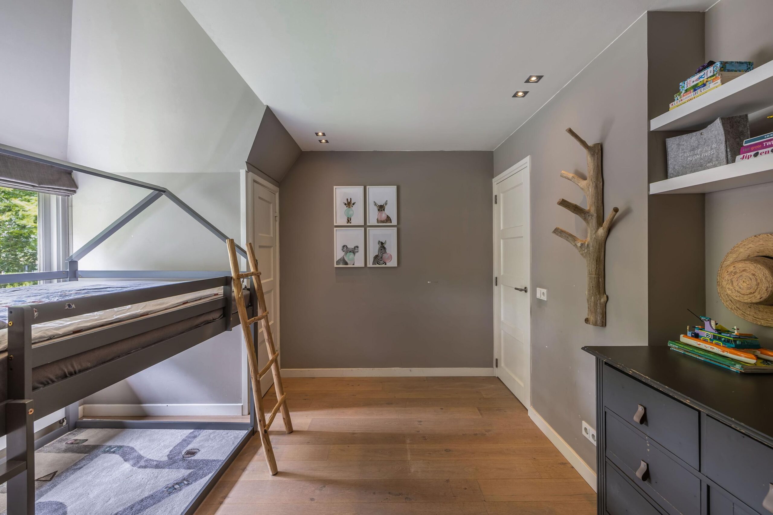 Praktisch en stijlvol is ook de voormalige garage, nu omgetoverd tot werkkamer met uitzicht op de tuin, berging met wasfaciliteiten en een bergvliering die toegang biedt tot extra opbergruimte. Daarnaast is er een gezellige tv- en speelkamer naast de keuken, perfect voor het hele gezin.