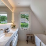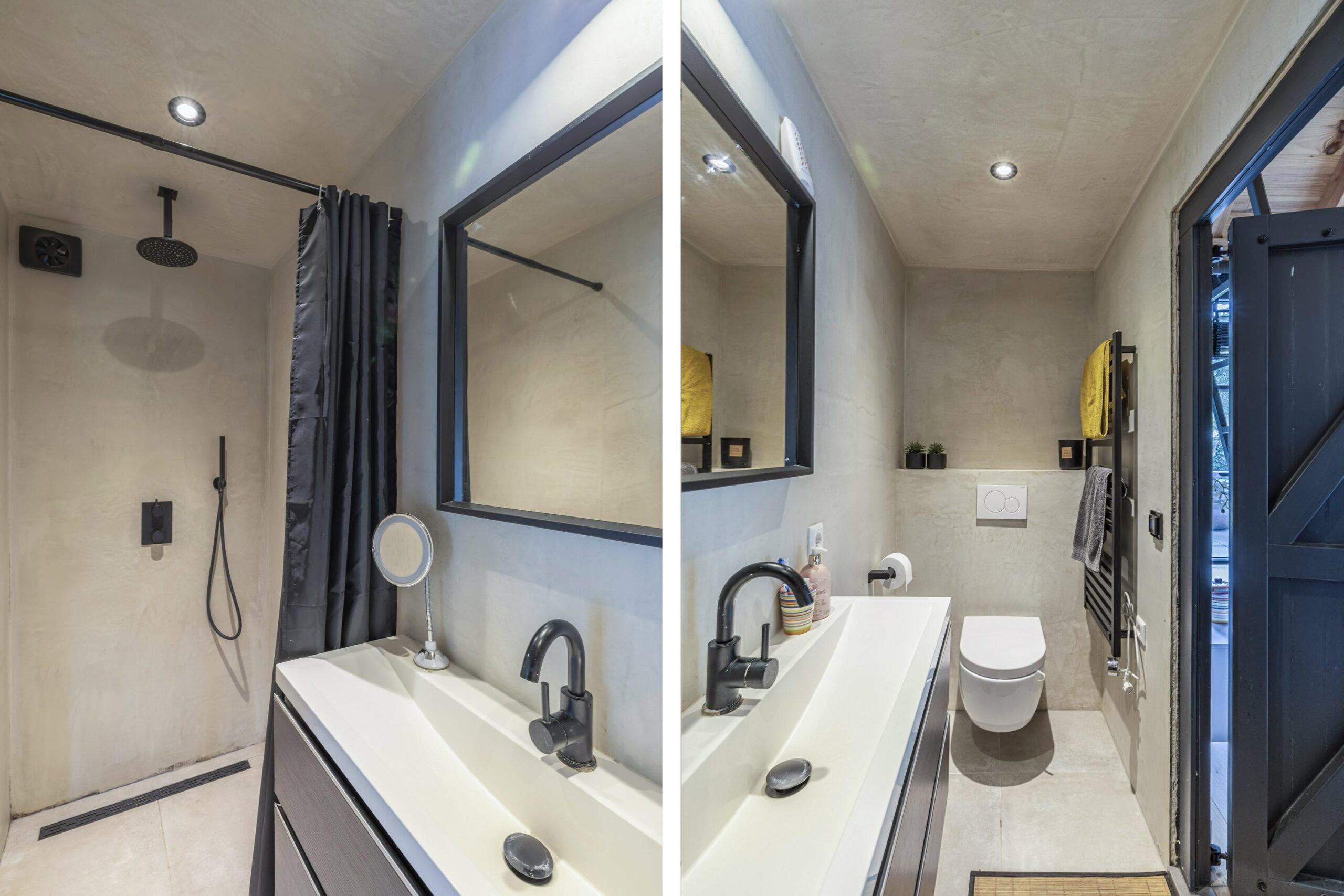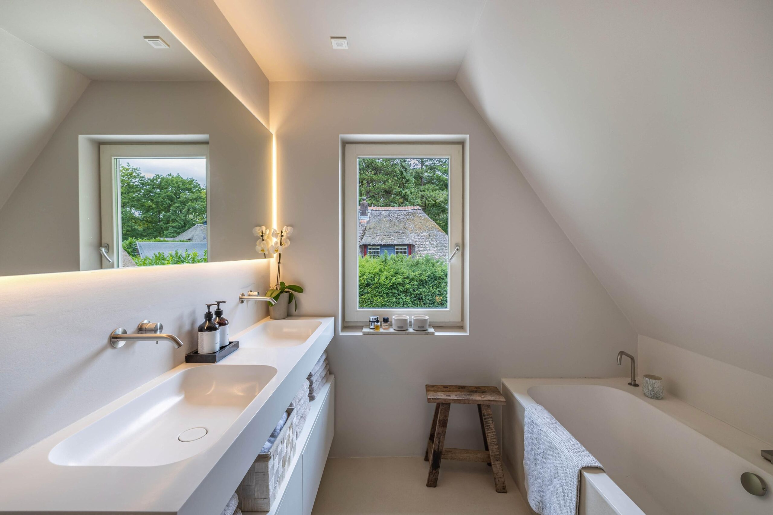 Op de eerste verdieping wacht u een royale ouderslaapkamer, twee charmante slaapkamers met praktische inbouwkasten en vaste wastafels, een luxe badkamer met dubbele wastafel, ligbad en inloopdouche, én een apart toilet — alles ontworpen voor comfort en leven op hoog niveau.
