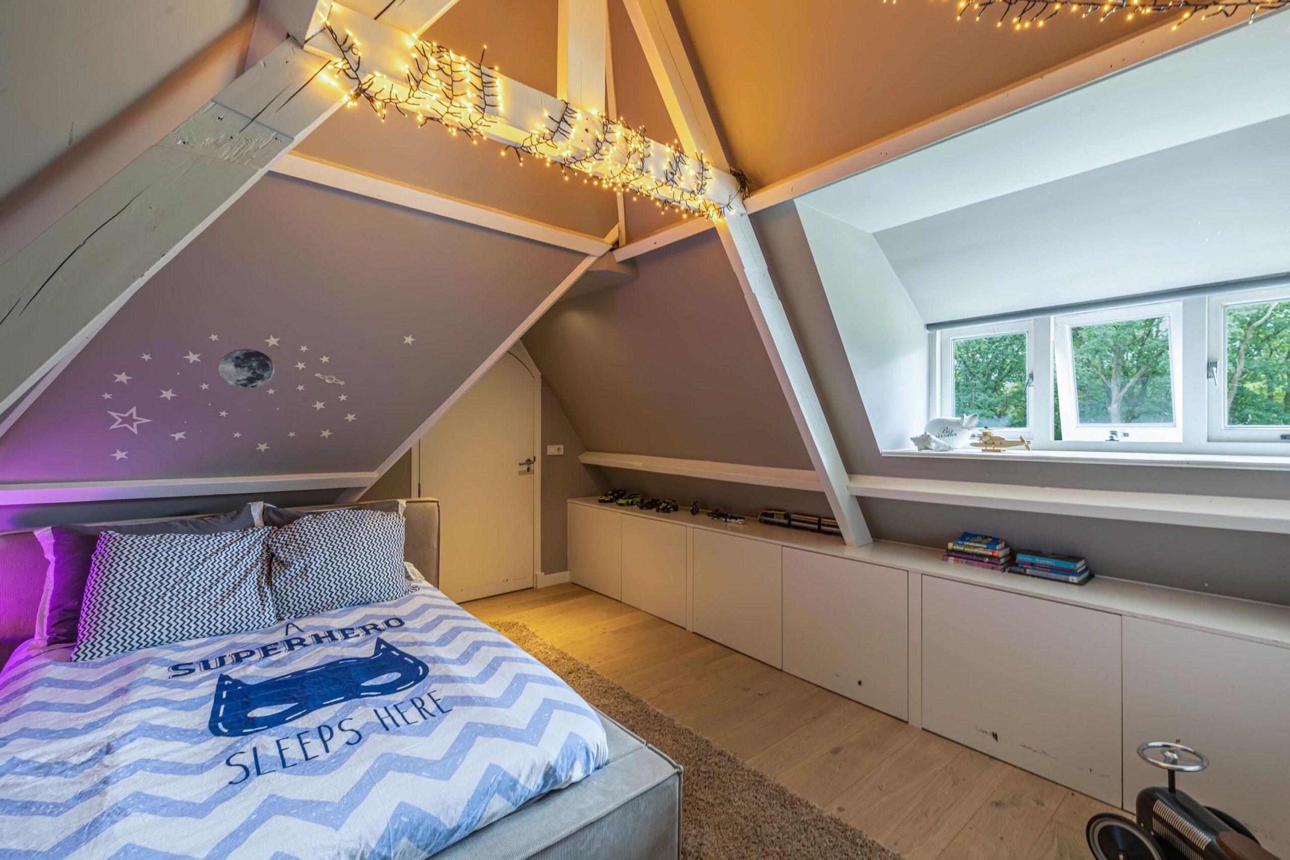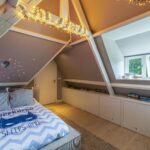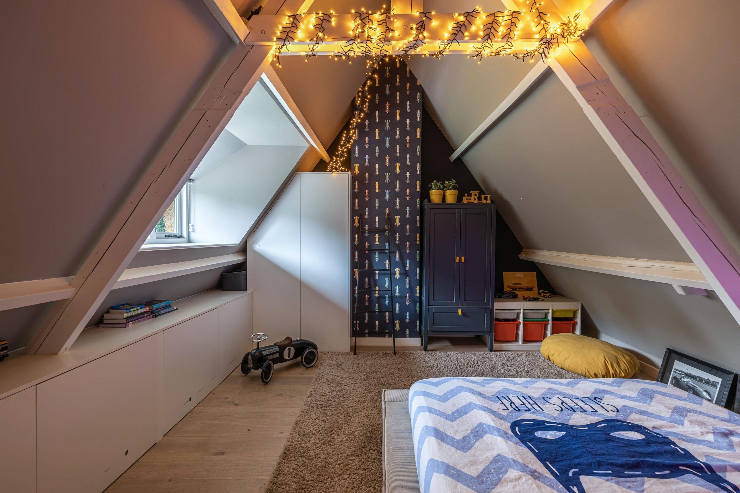De tweede verdieping herbergt een sfeervolle vierde slaapkamer met dakkapel en volop bergruimte, waar u met een beetje fantasie een eigen toevluchtsoord creëert.
