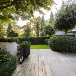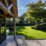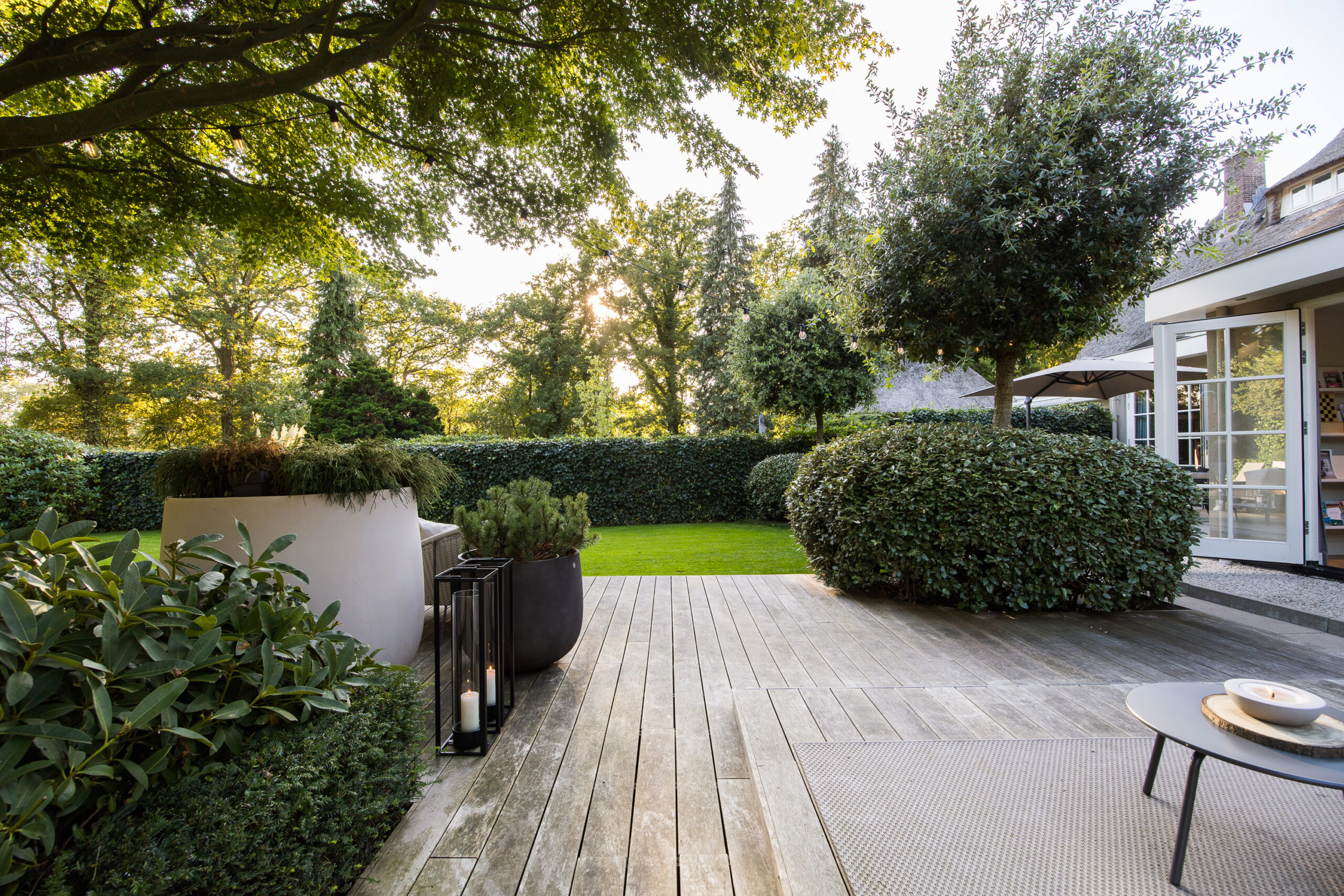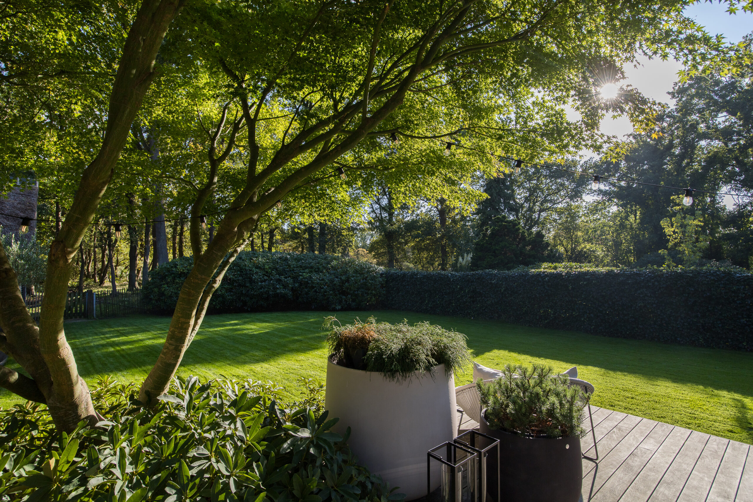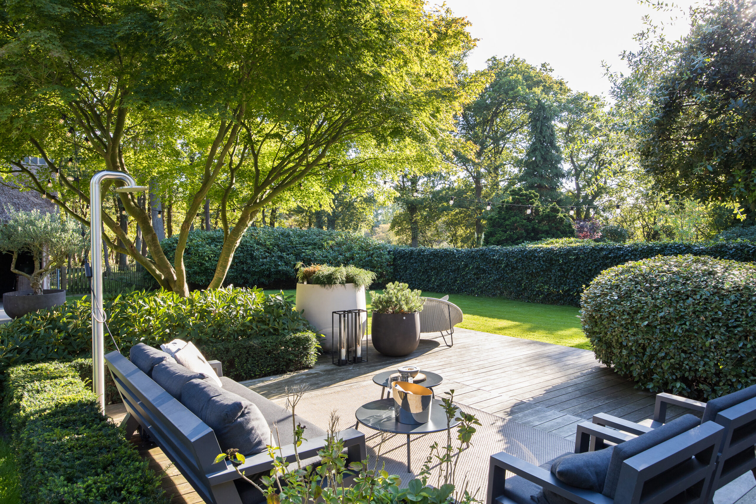 De tuin, voorzien van automatische besproeiing, buitendouche, mogelijkheid tot jacuzzi inbouw vlondersysteem en sfeervolle In-Lite led buitenverlichting systeem, nodigt uit om elk moment te koesteren — of het nu een zonnige zomerdag is of een frisse avond onder de sterren.