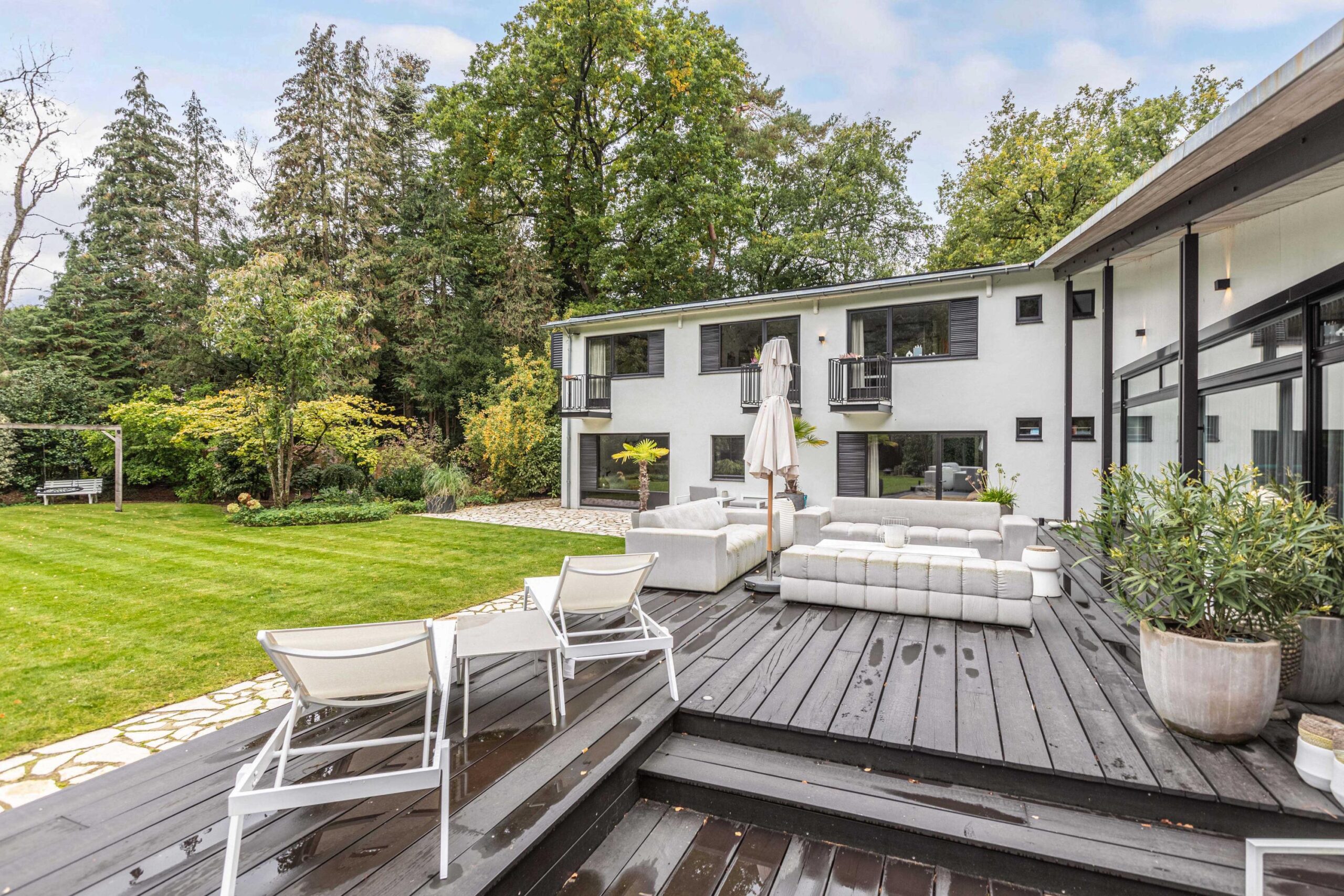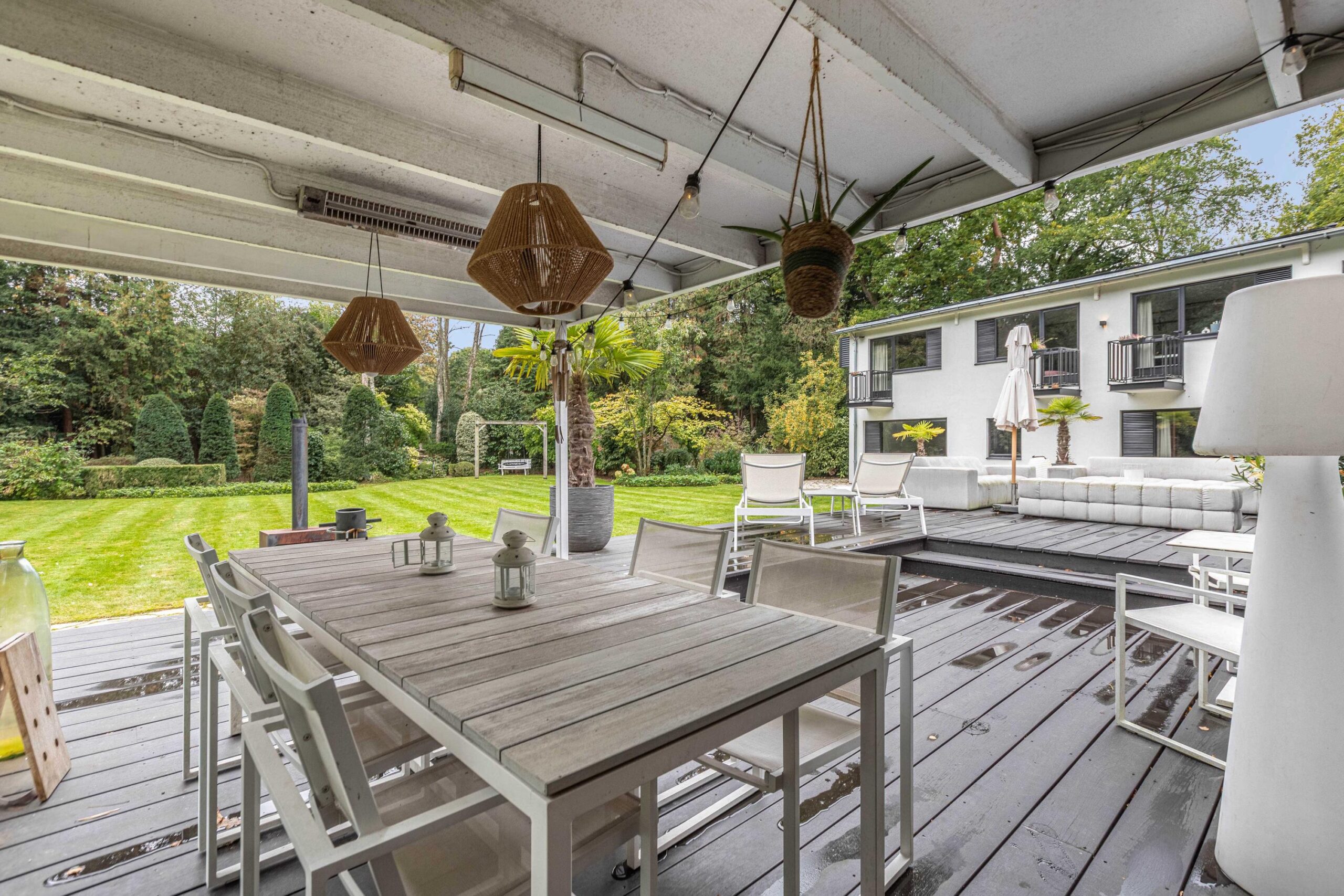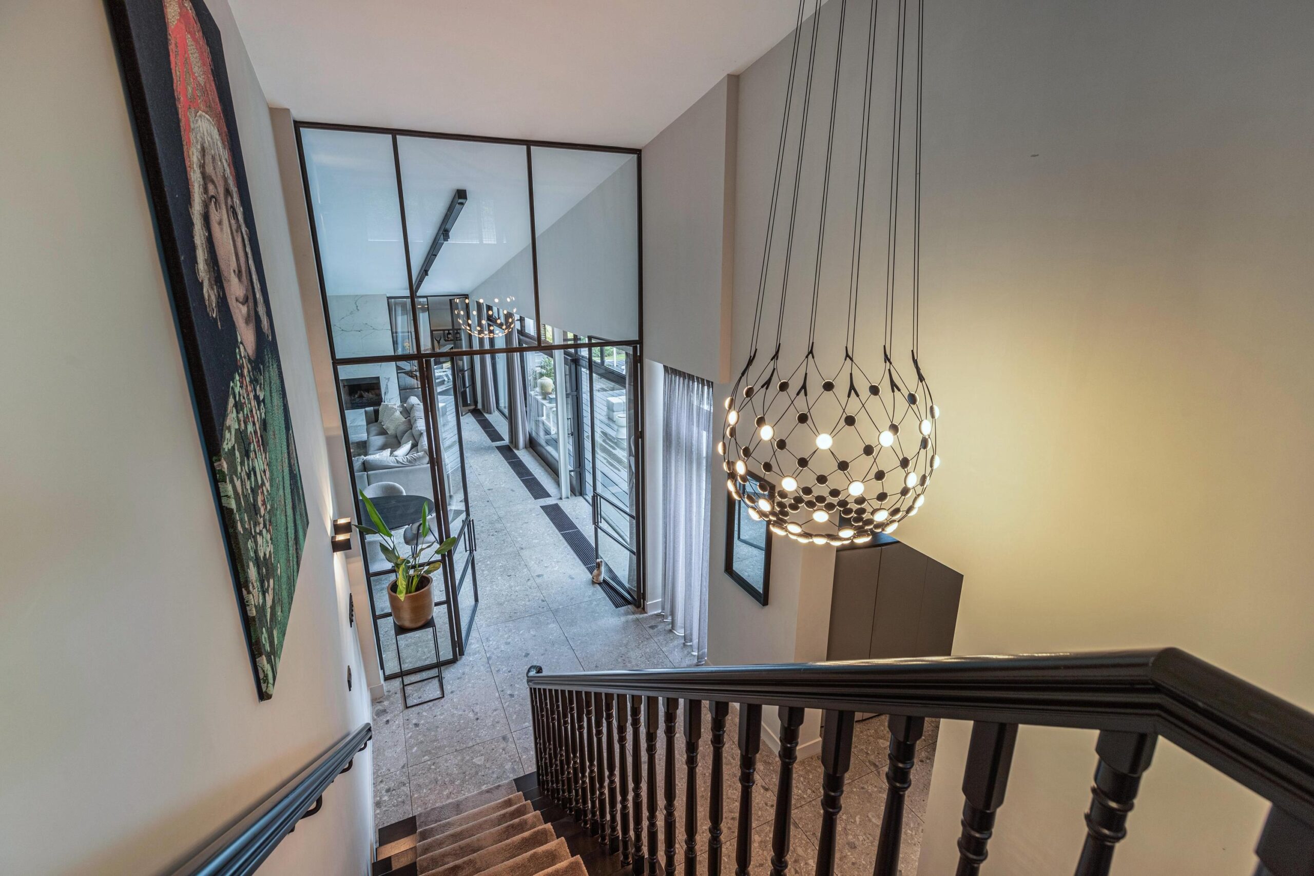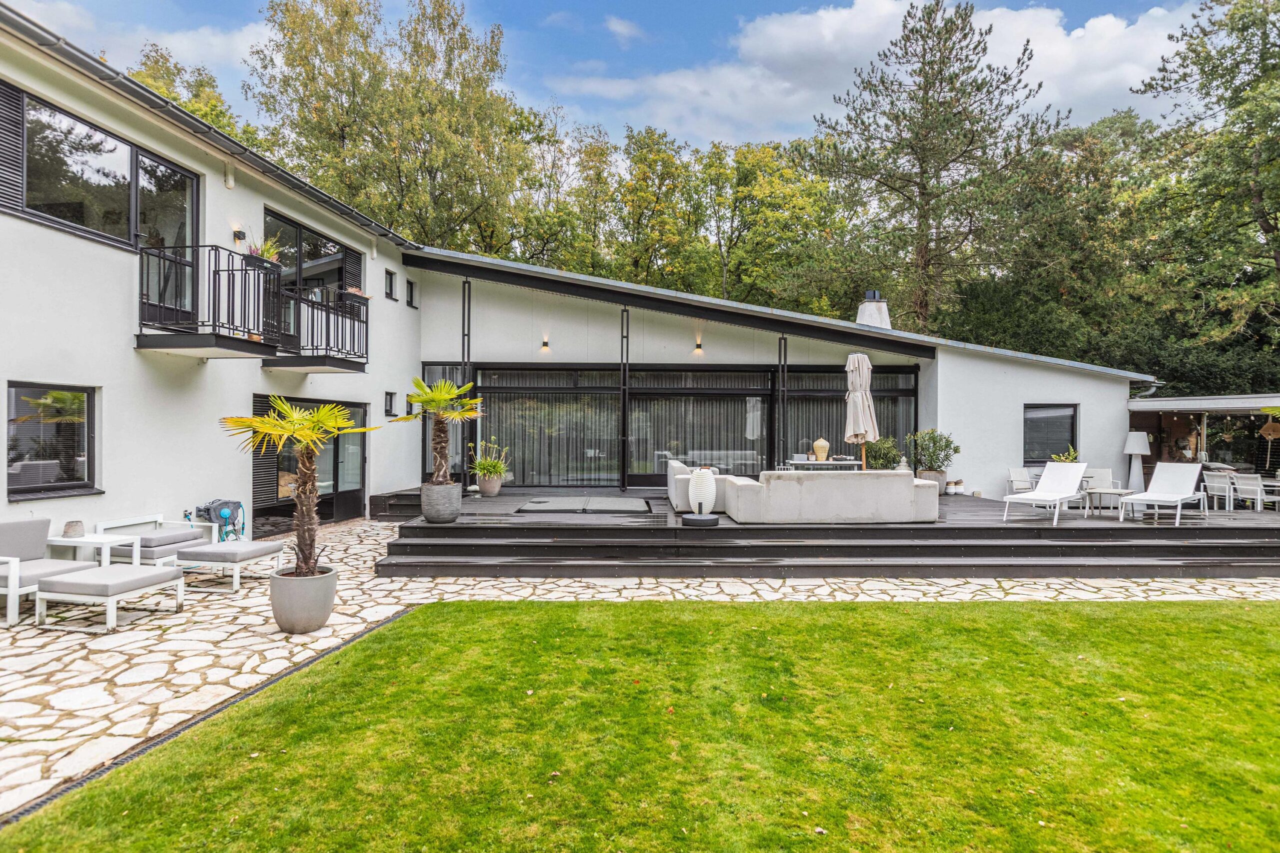 Royale en luxueus, onder architectuur van Grand & Johnson design studio, verbouwde villa op een fraai aangelegde tuin van 3548m², nabij natuurgebied van Gooisch Natuurreservaat en goede toegang tot de snelwegen naar Utrecht en Amsterdam.