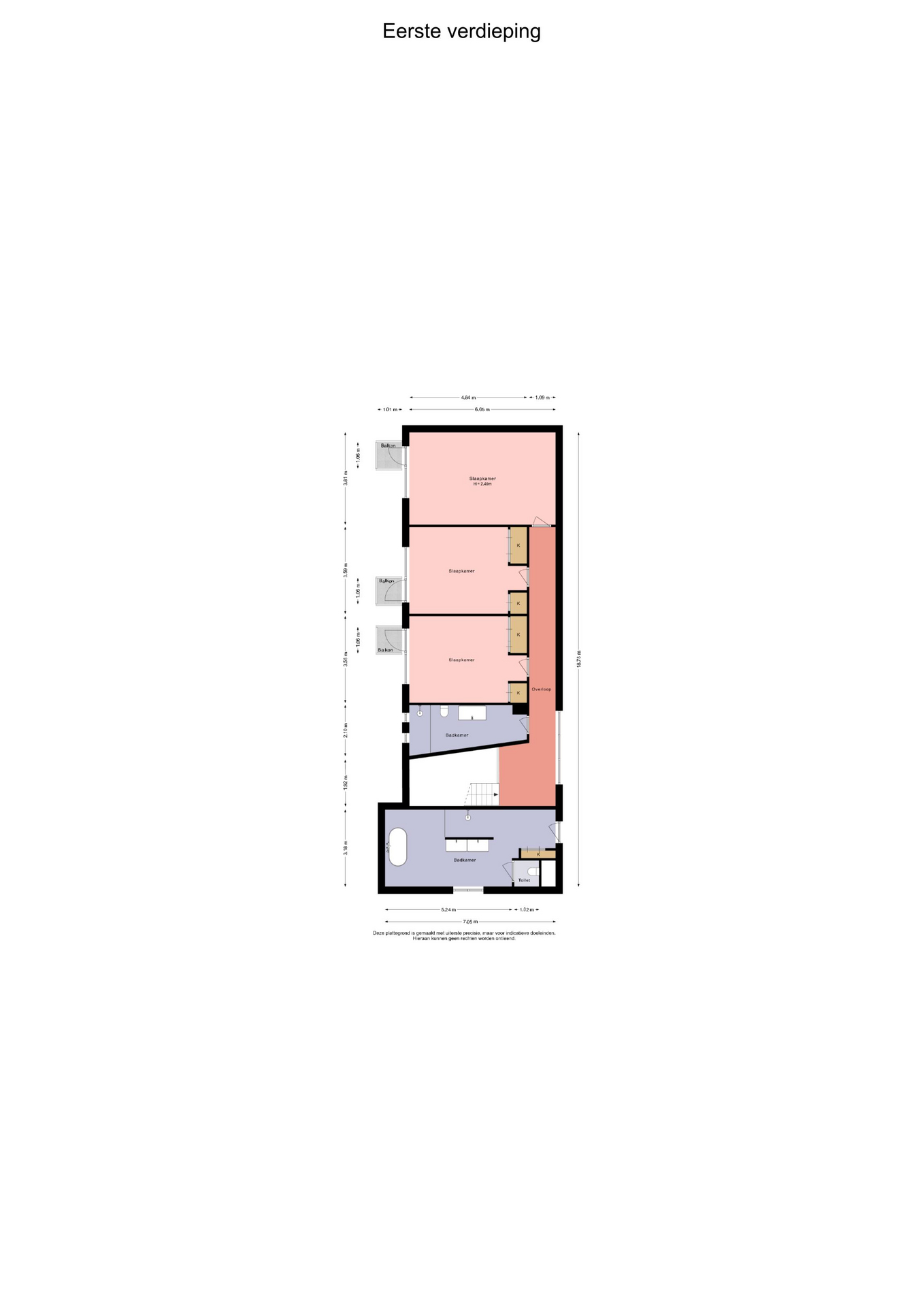 Verdieping: Hal met vide, gang, badkamer met bad, douche en toilet, 3e, 4e en 5e slaapkamer allen voorzien van vaste kasten en een eigen balkon.