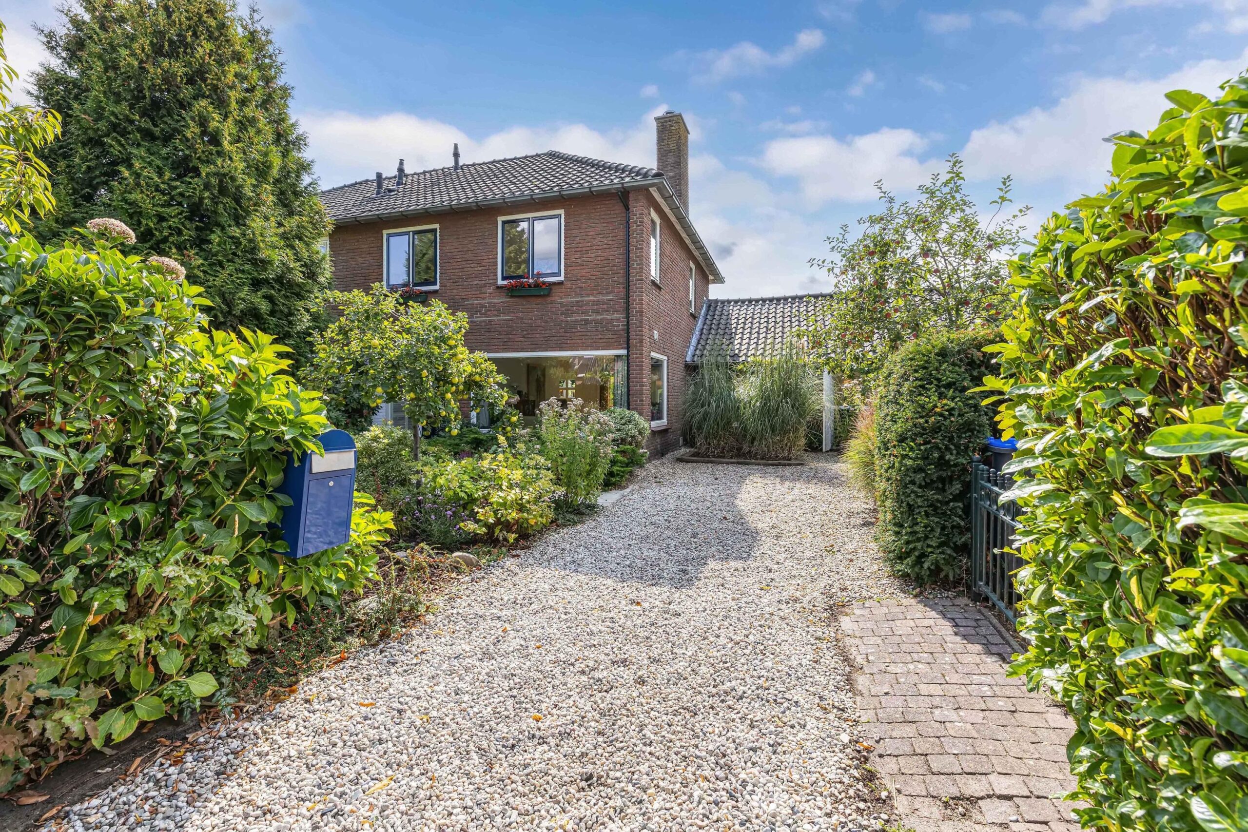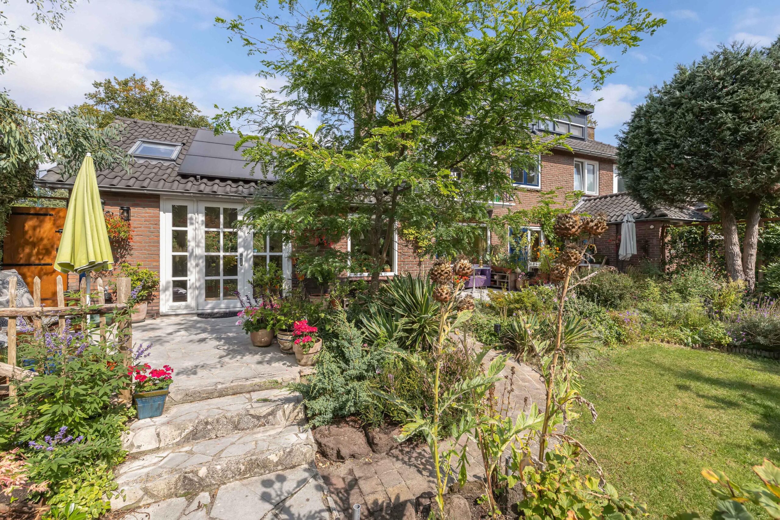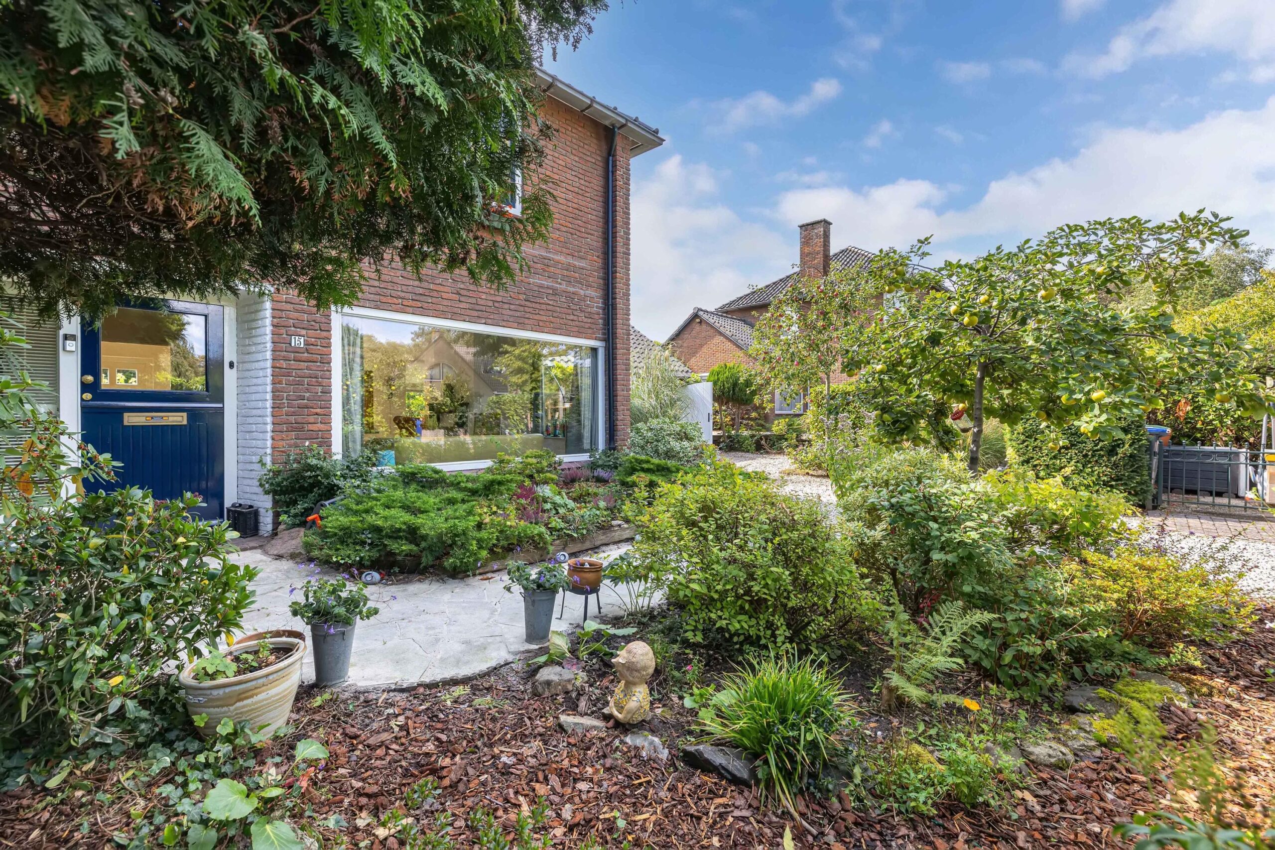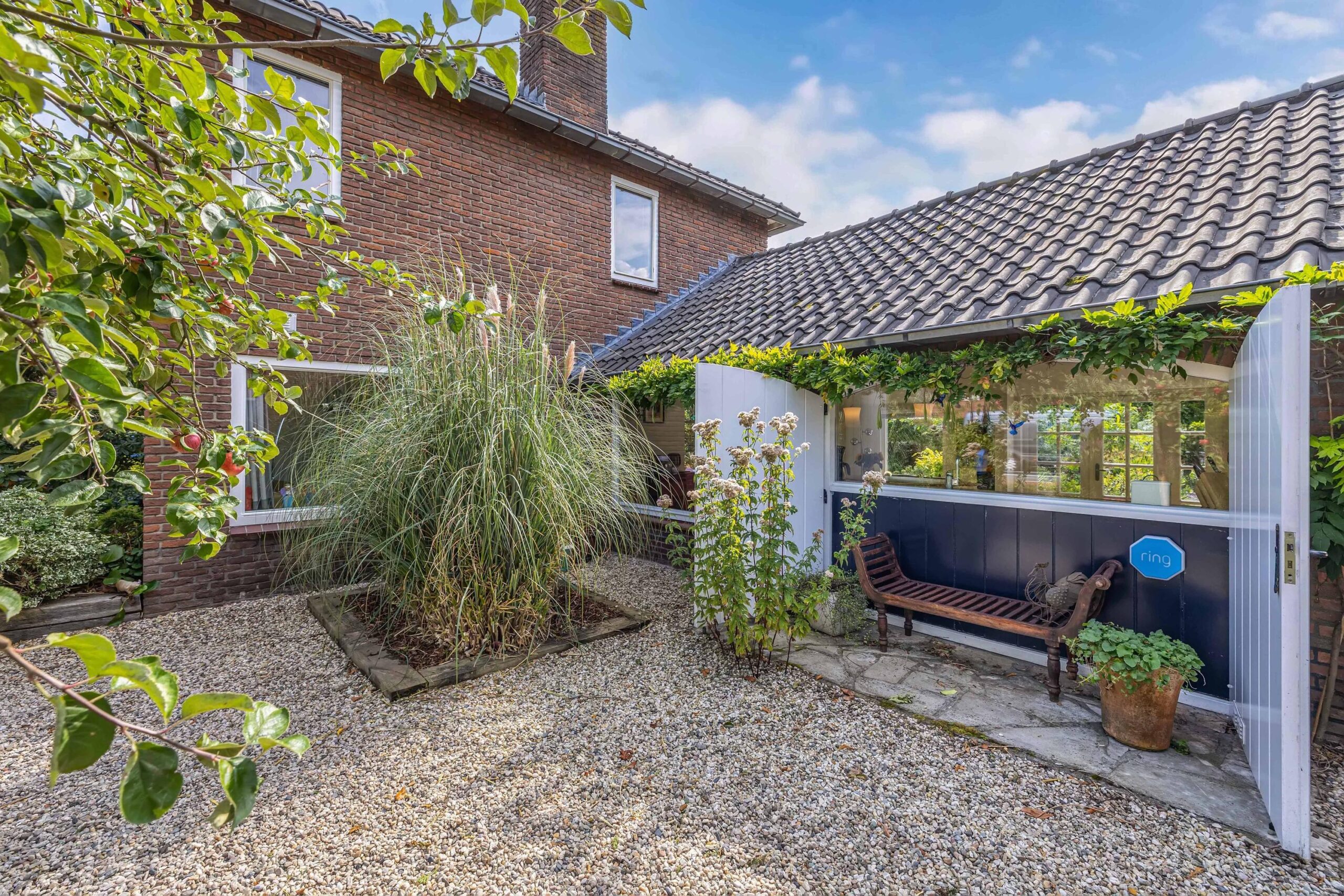 Een thuis omarmd door groen, in de voortuin staat een appel- en perenboom die u verwelkomen.