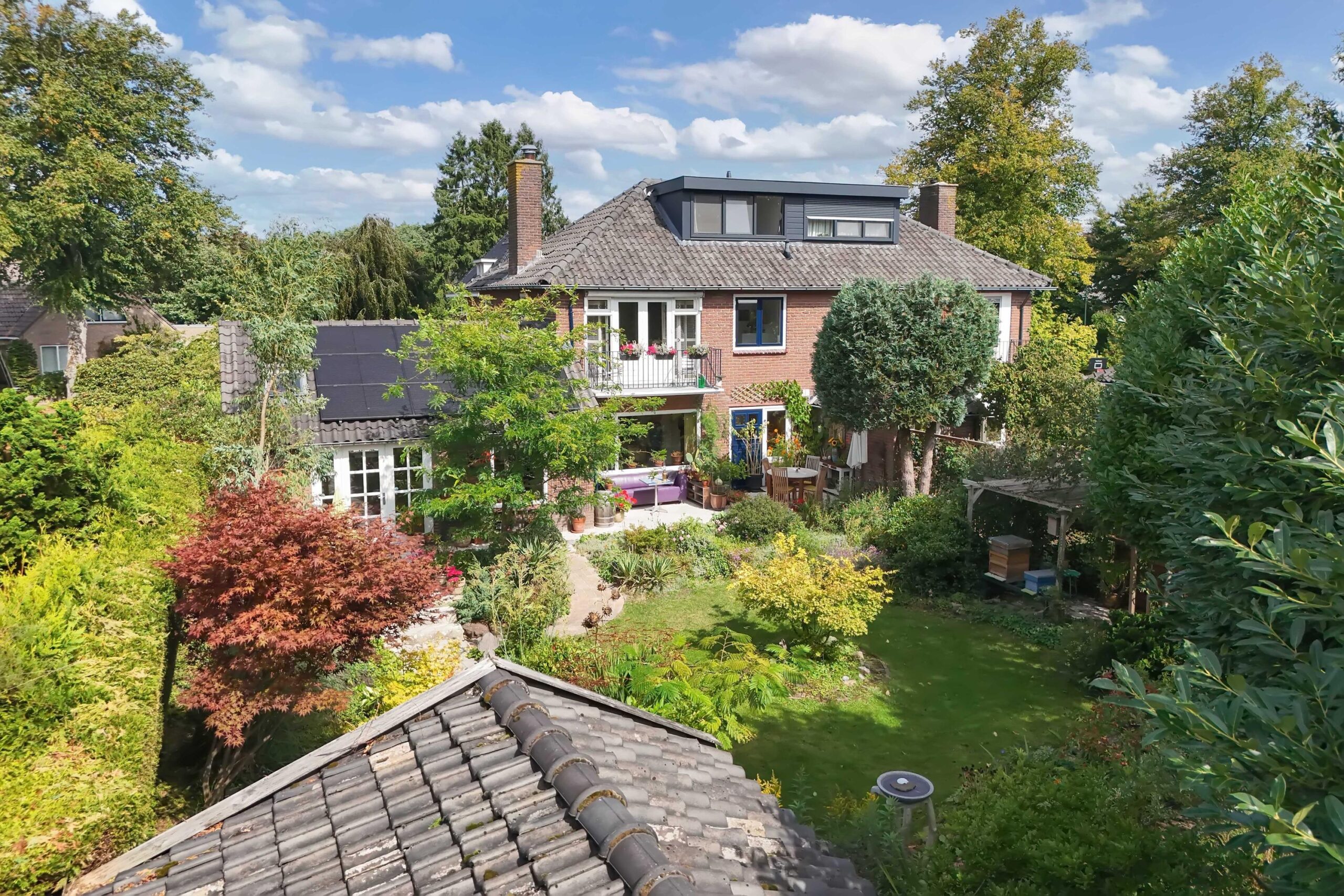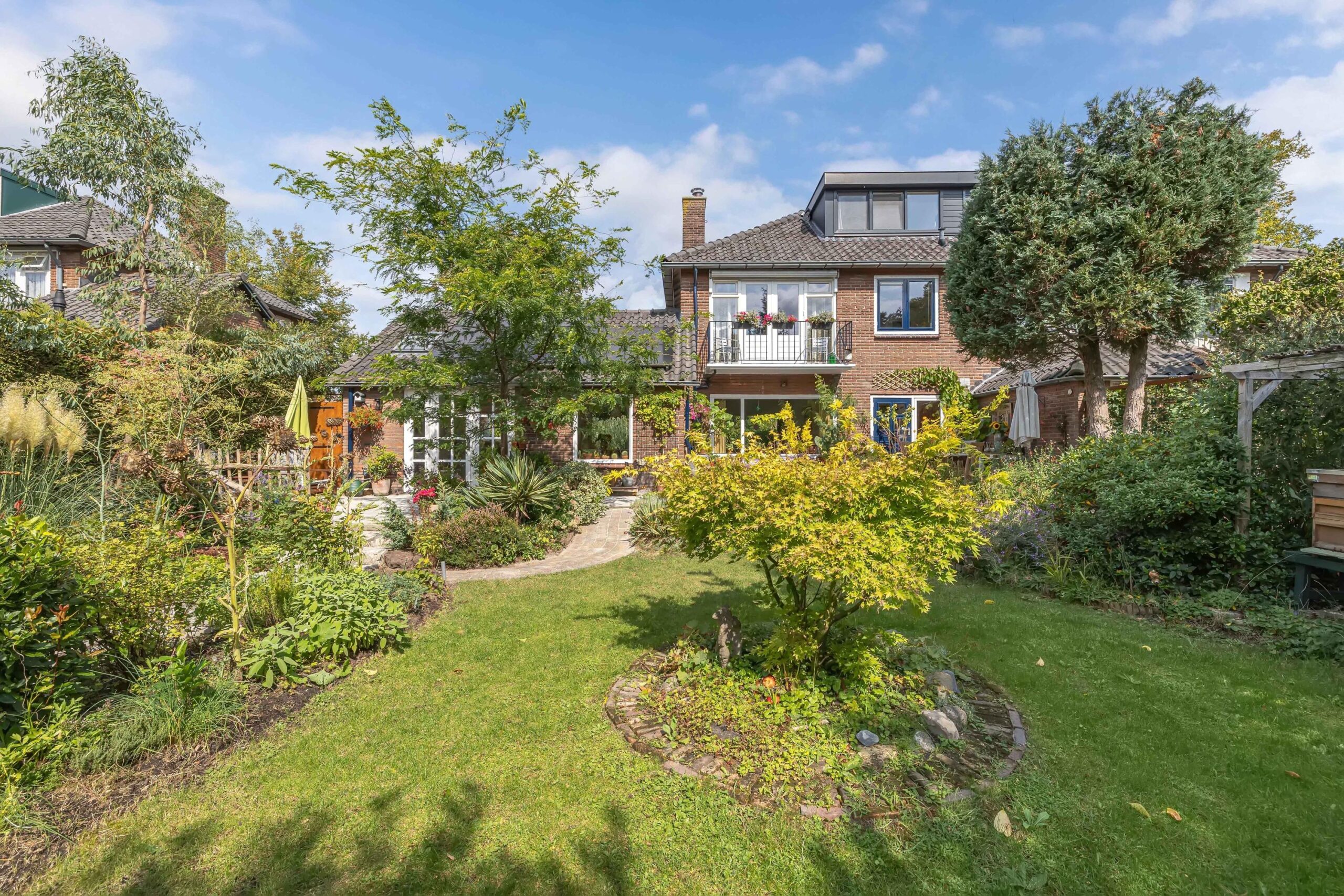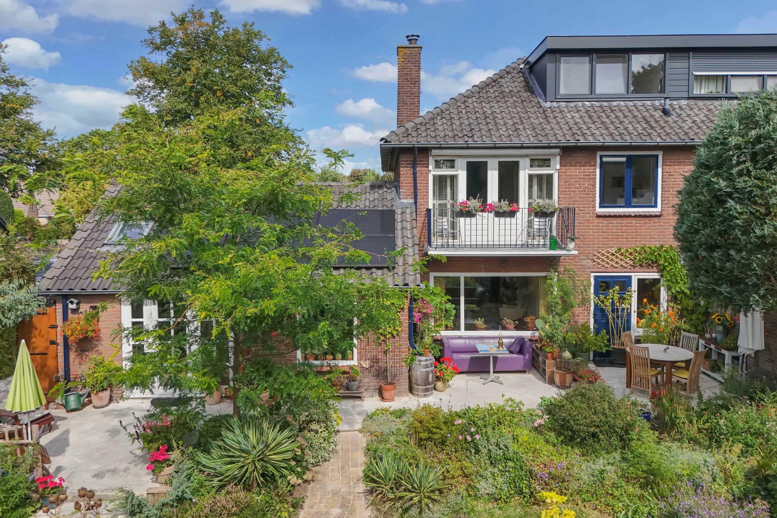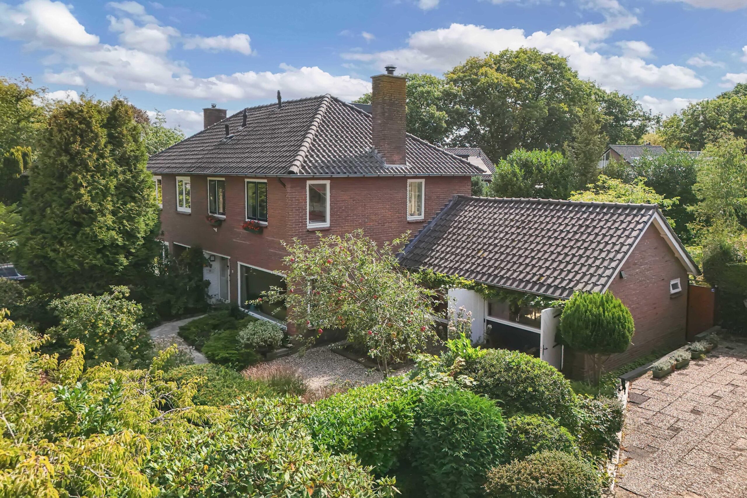 Een thuis omarmd door groen, in de voortuin staat een appel- en perenboom die u verwelkomen.