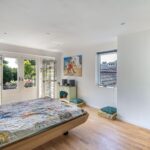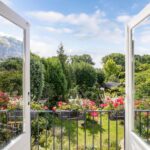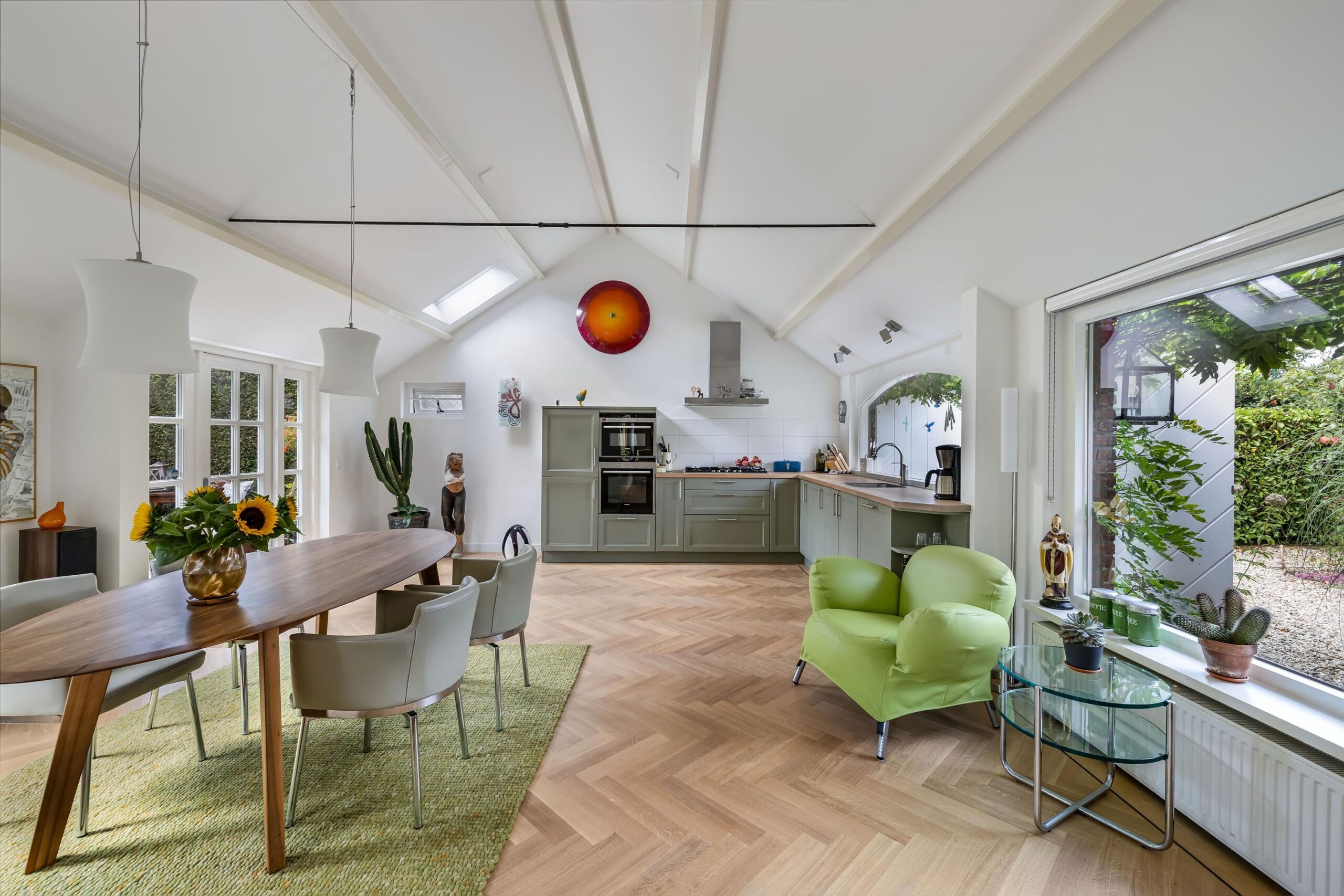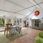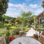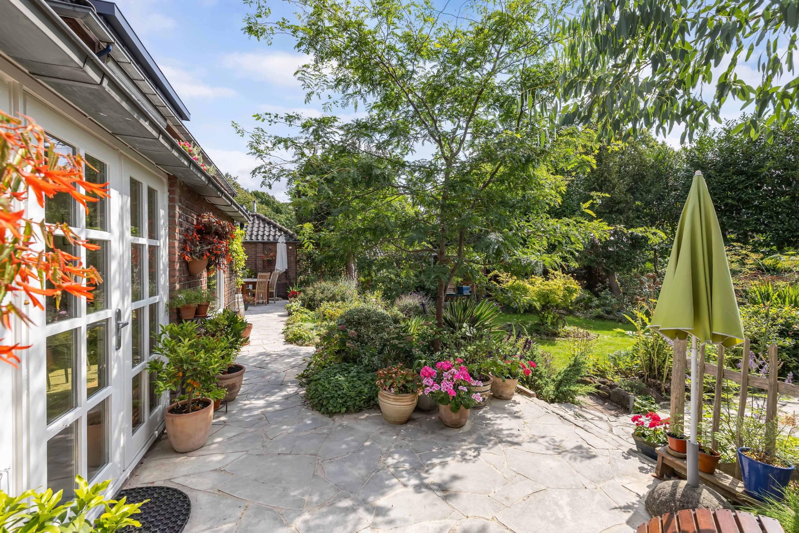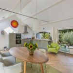 Hoge plafonds en openslaande deuren openen zich naar de betoverende zuidoostelijk gelegen tuin, een prachtige oase van rust.