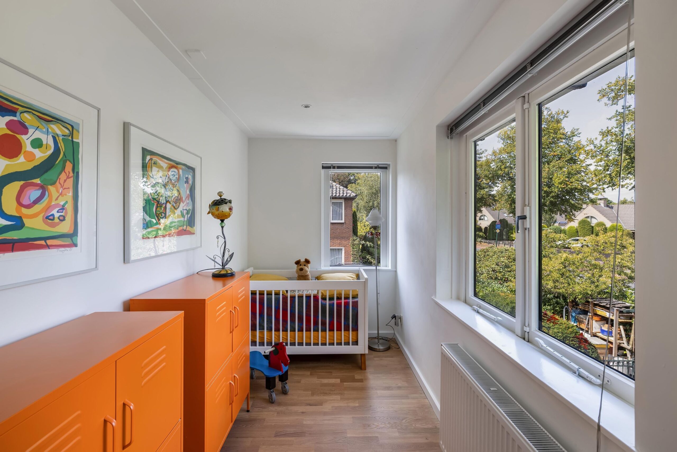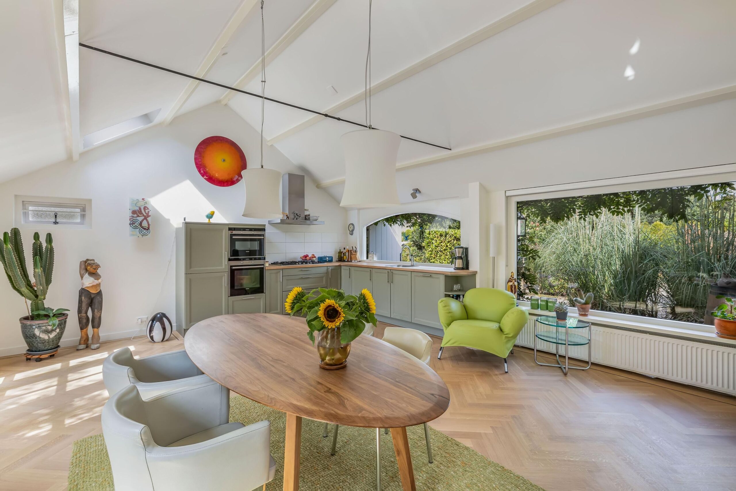 De draai/kiepramen zijn voorzien van horren en bieden een fantastisch, groen uitzicht. Op zolder staat de hybride CV ketel uit 2023.