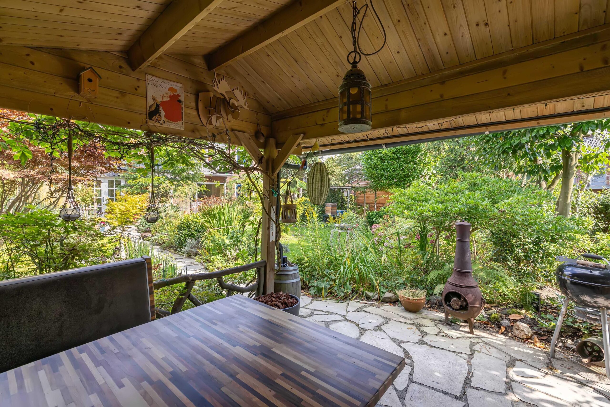 Het ruime tuinhuis (15m2) met gezellige overkapping en praktische berging maakt het plaatje compleet.