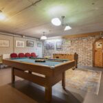Het souterrain is verrassend ruim en momenteel ingericht als recreatieruimte met pooltafel, wijnkelder en opbergruimte. Perfect voor wellness of thuisbioscoop.
