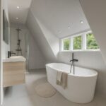 Op de verdieping bevinden zich vier slaapkamers en twee badkamers, waarvan één ensuite met vrijstaand bad en inloopdouche.