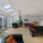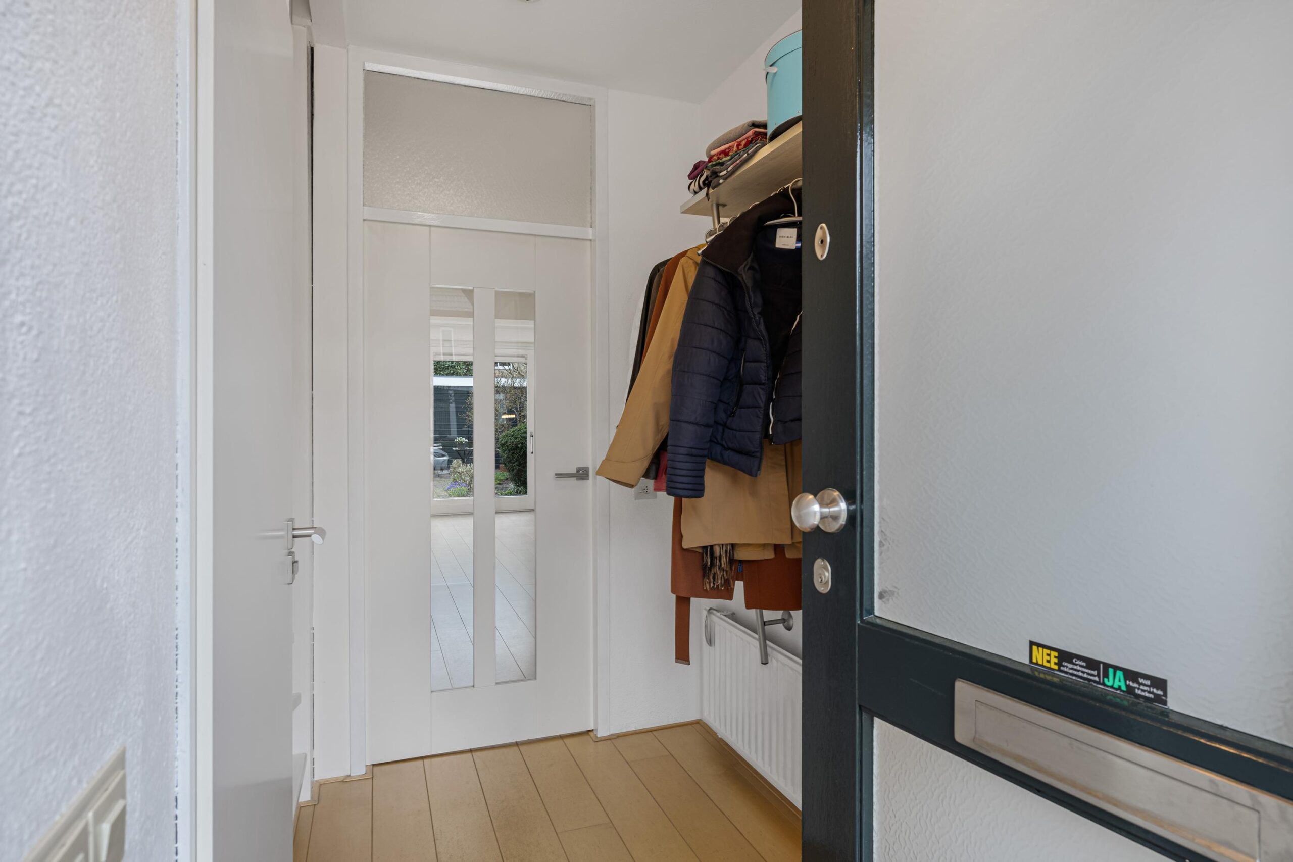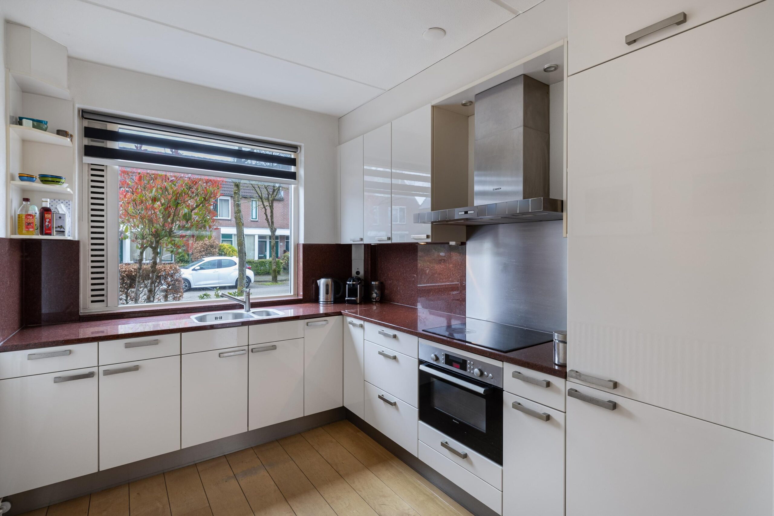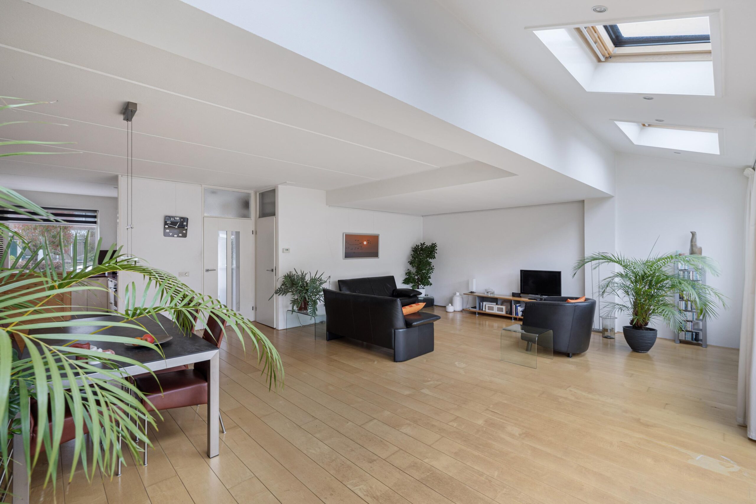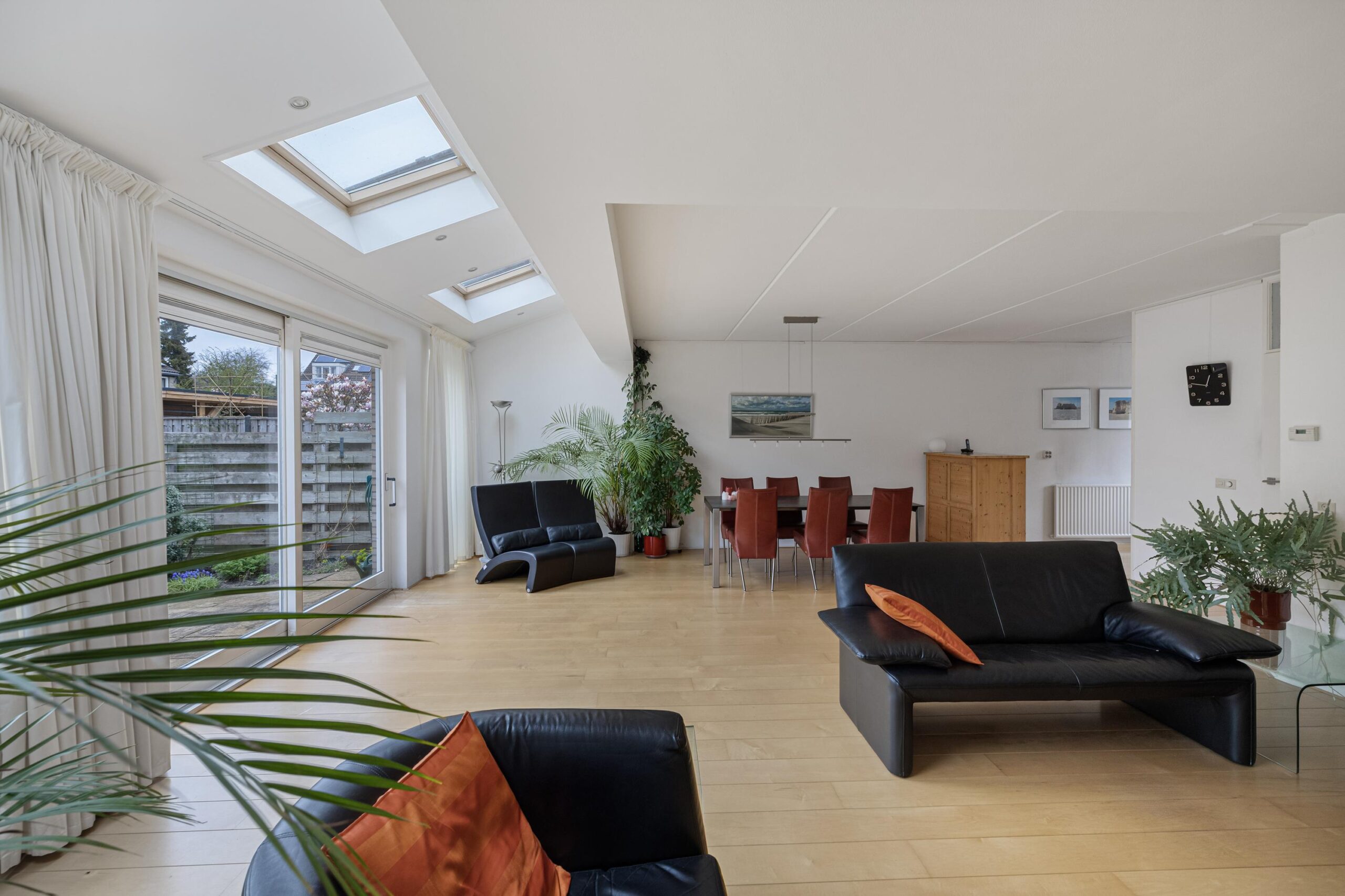 Bij binnenkomst treft u een verzorgde entree met garderobe, meterkast en een modern toilet met fontein. Vanuit de hal bereikt u de royale, uitgebouwde woonkamer die dankzij de grote dakvensters heerlijk licht is. De schuifpui en loopdeur zorgen voor een prettige verbinding met de zonnige achtertuin, waar u in alle rust kunt genieten van het buitenleven.
