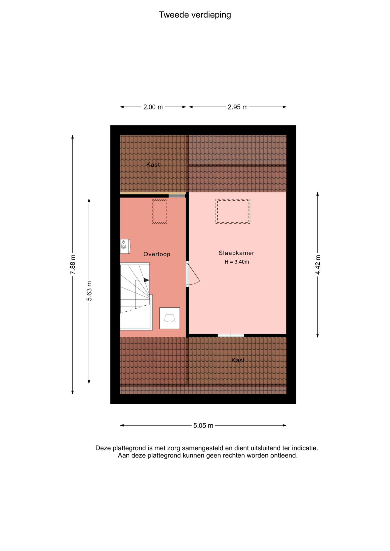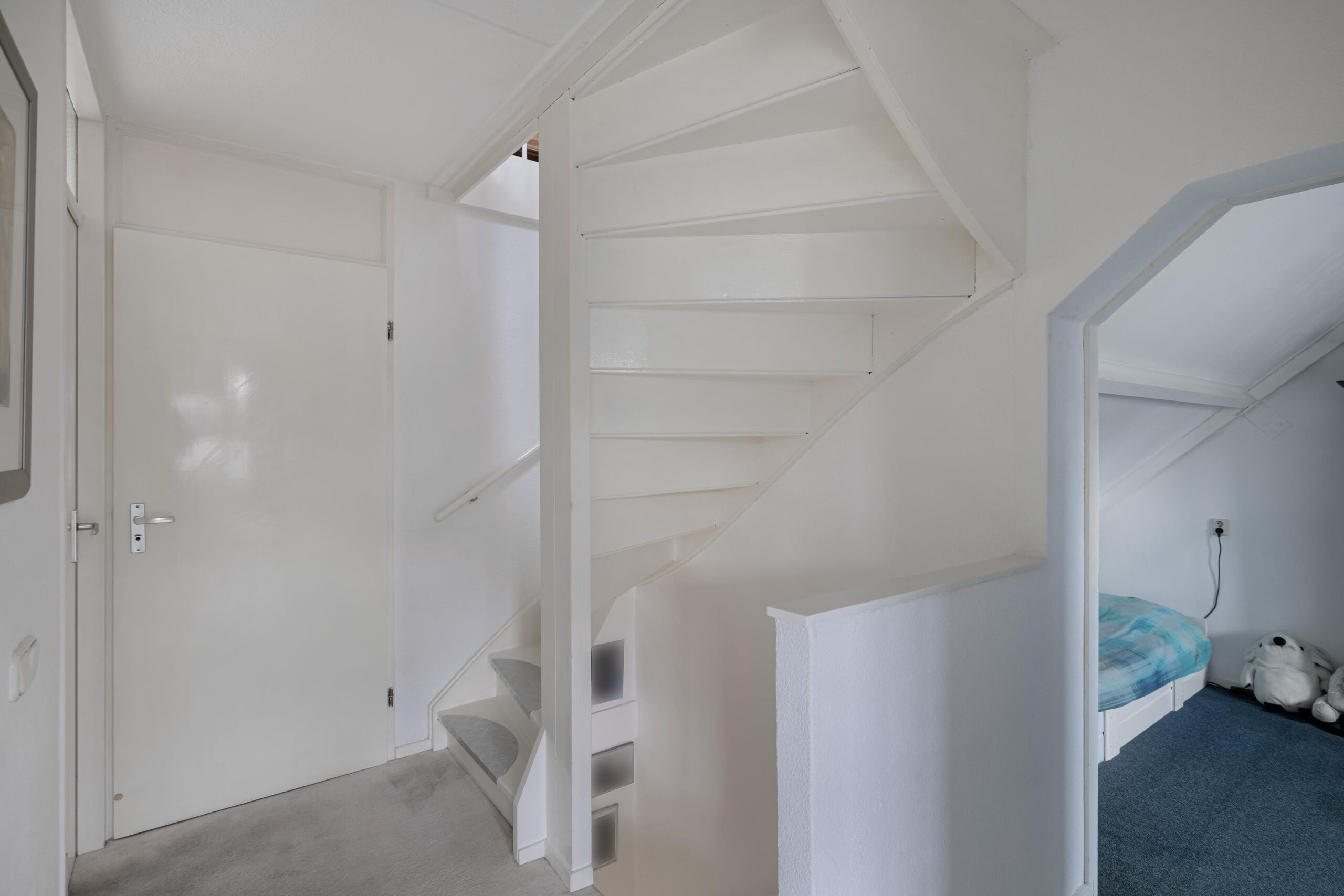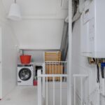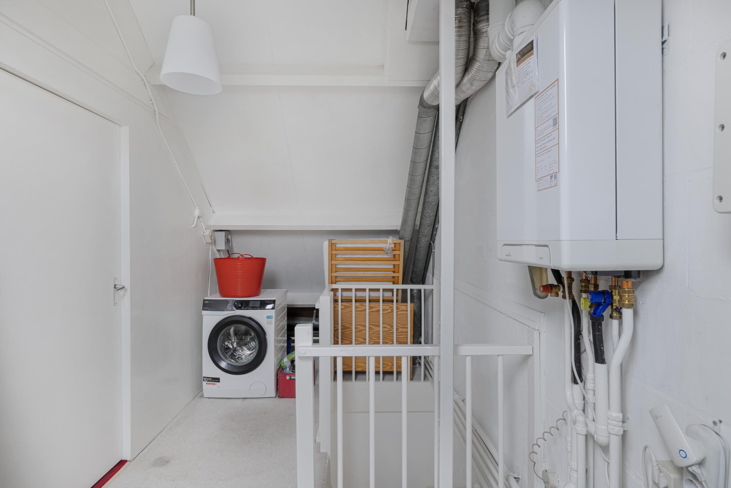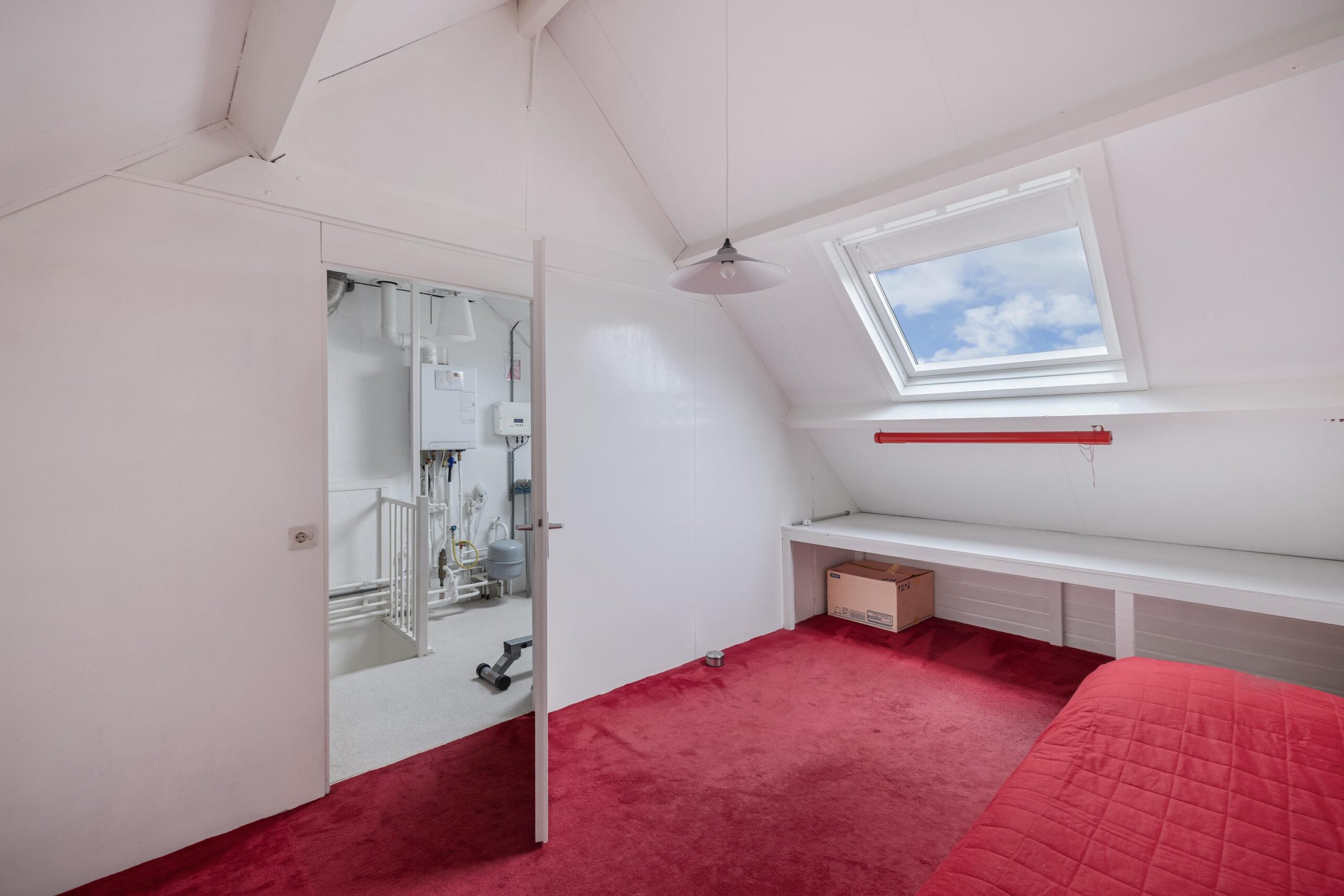 De tweede verdieping biedt een overloop met bergruimte, aansluitingen voor wasmachine en cv-ketel en een vierde ruime slaapkamer met dakvenster en extra bergruimte.