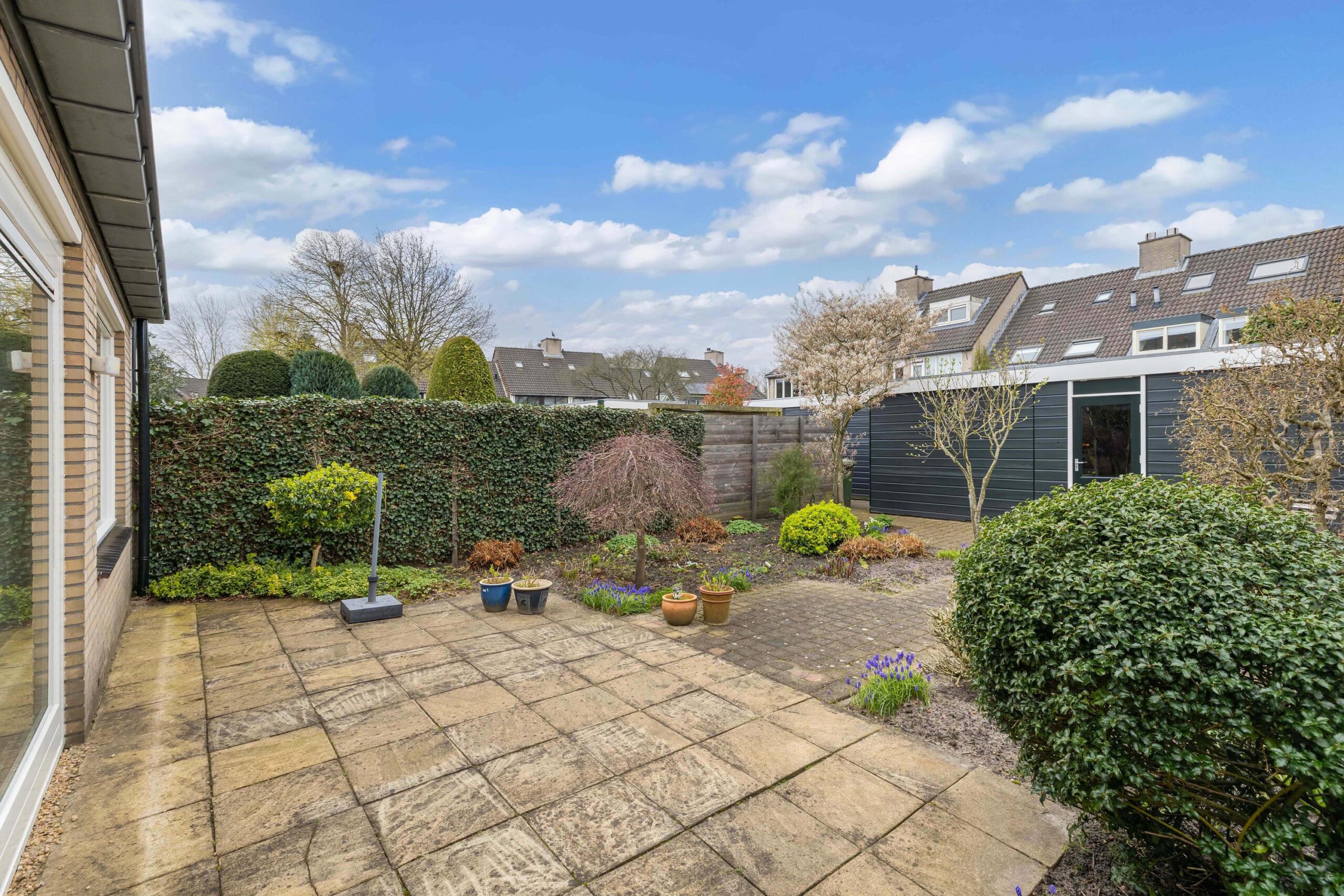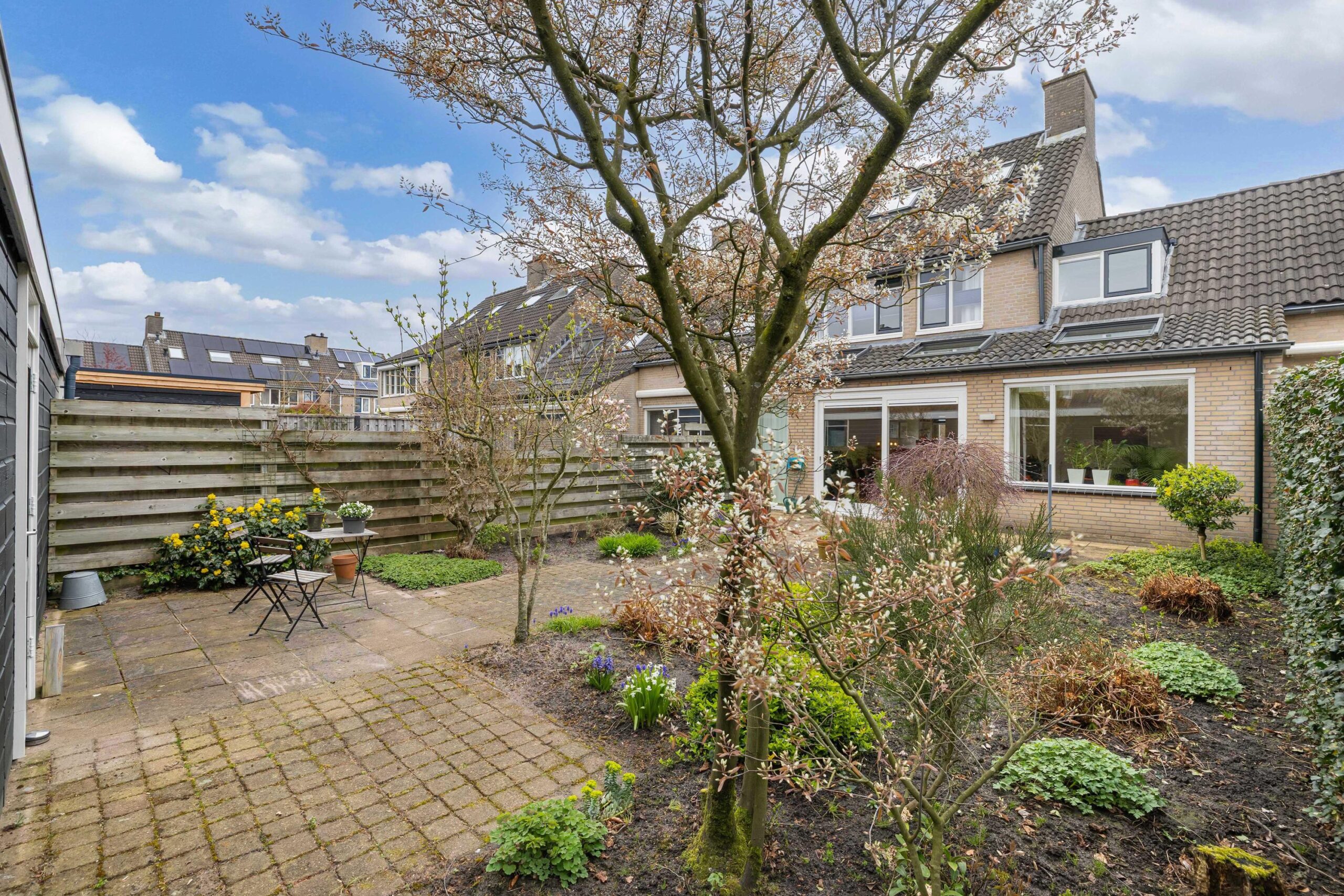 De diepe en brede achtertuin op het noordwesten biedt volop mogelijkheden om te genieten van zon en buitenleven. Door de royale afmetingen is er altijd een fijne plek in de zon of schaduw te vinden.