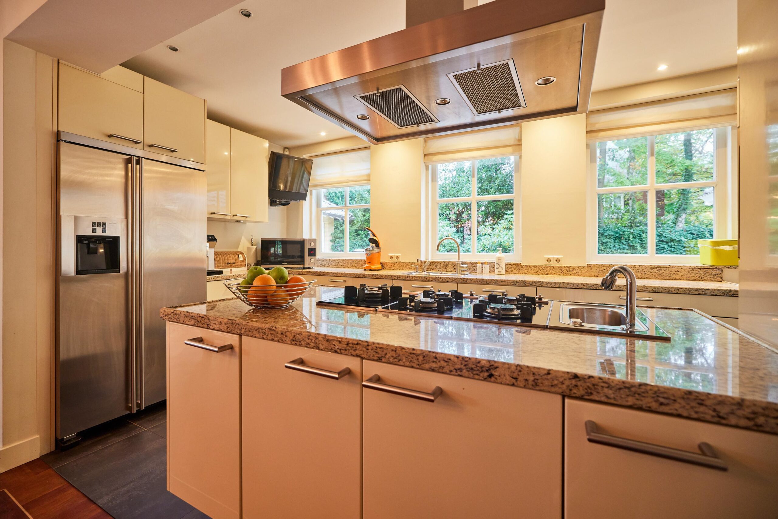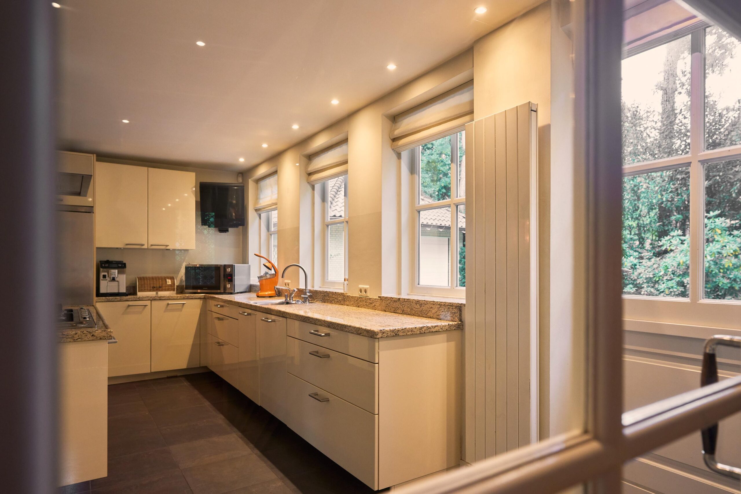 De ruime en charmante woonkeuken is gesitueerd aan de achterzijde. Via openslaande deuren heb je directe toegang tot het zonnige terras dat naadloos overgaat in de tuin. Vanuit de keuken is ook het souterrain met bijkeuken en wijnkelder bereikbaar - ideaal voor het bewaren van bijzondere flessen wijn.