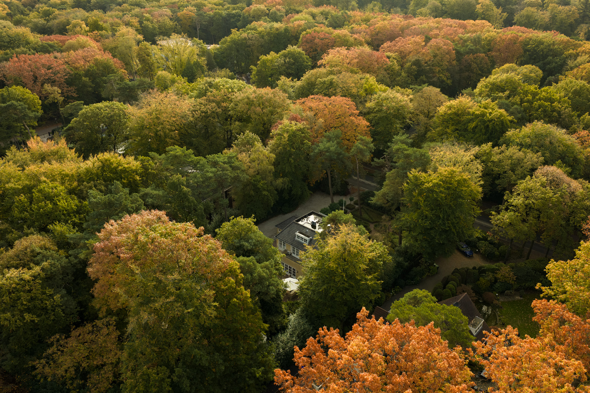 De villa ligt in de exclusieve Koningsbuurt, precies tussen het Goois Natuurreservaat Blaricummerheide/Noorderheide en de uitvalsweg naar de A1. Dankzij de ligging is de bereikbaarheid uitstekend: het busstation bevindt zich op slechts 200 meter afstand, waardoor de Randstad echt binnen handbereik ligt. De bus brengt je in circa 20 minuten naar Amstel station, maar ook Utrecht en Hilversum zijn eenvoudig en snel bereikbaar.