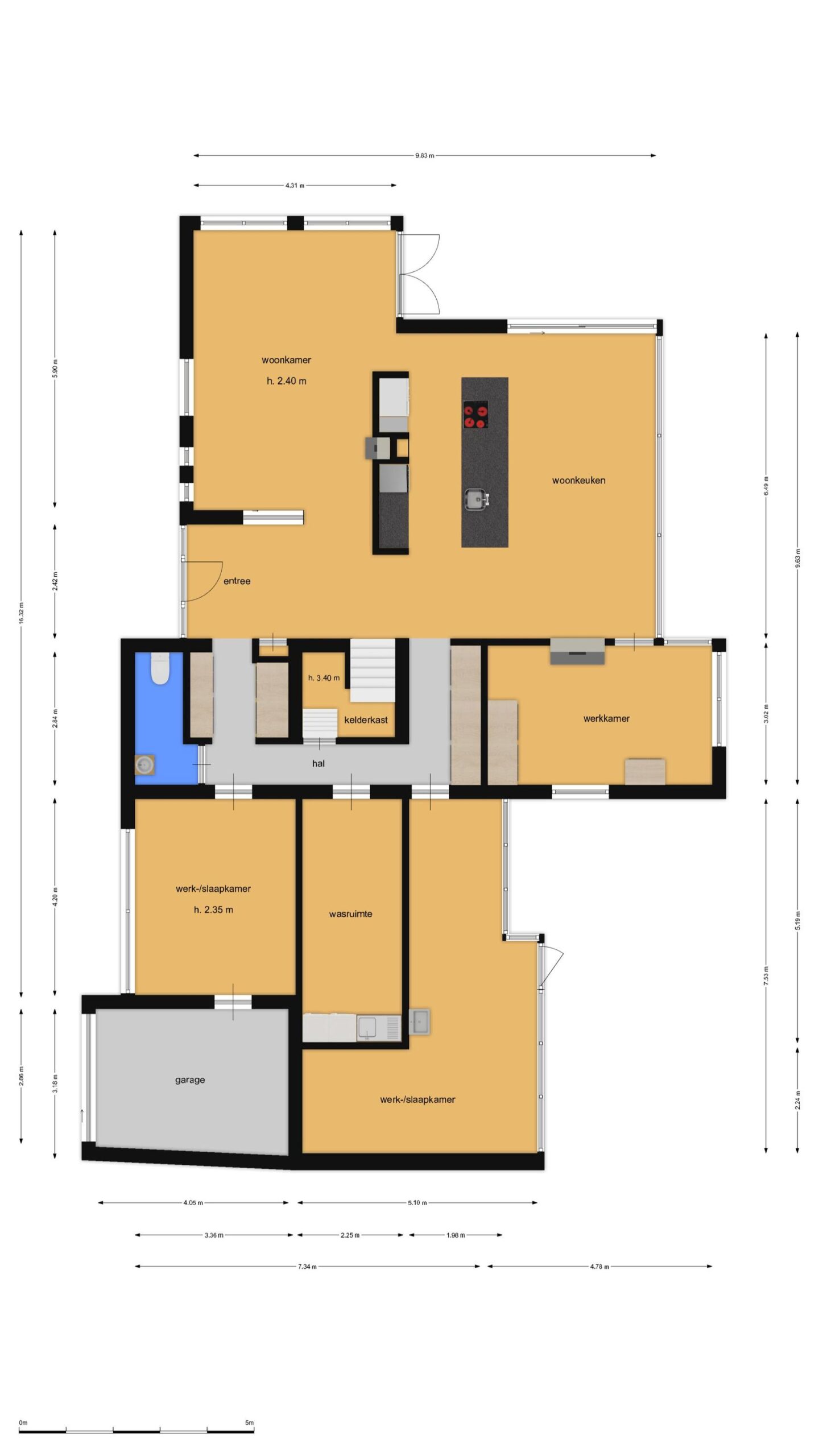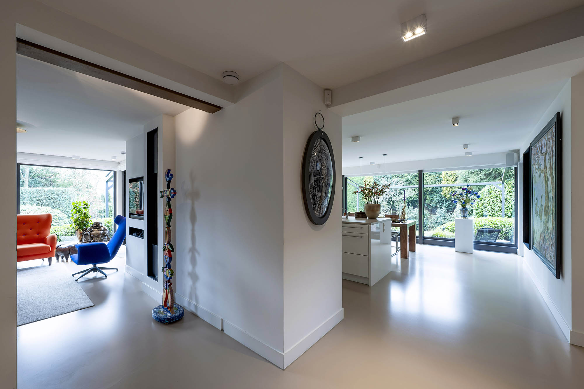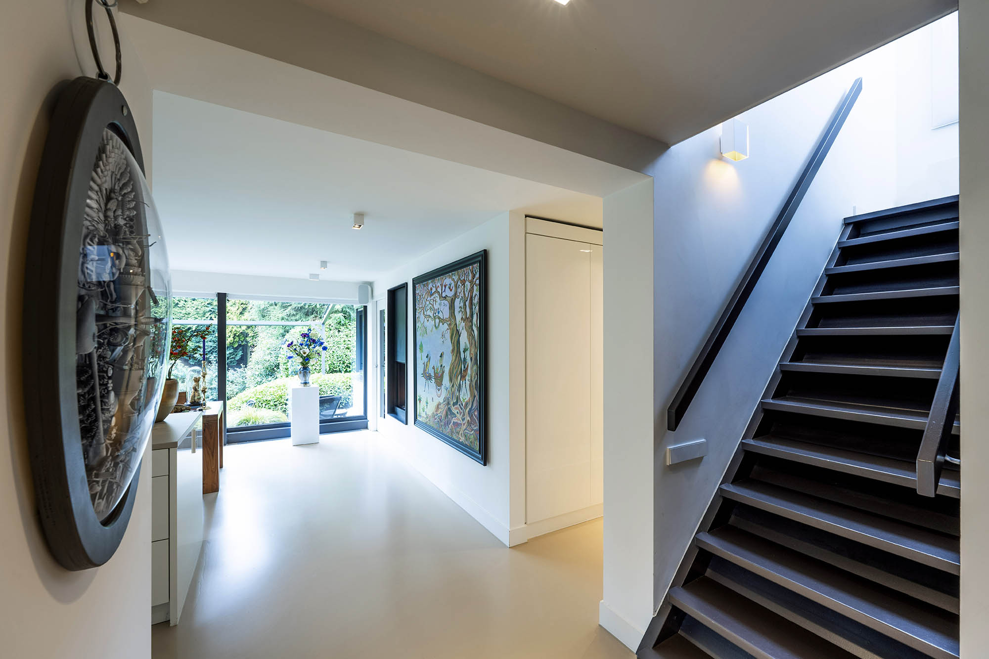 De begane grond is voorzien van een gietvloer met comfortabele vloerverwarming (uitgezonderd de garage).