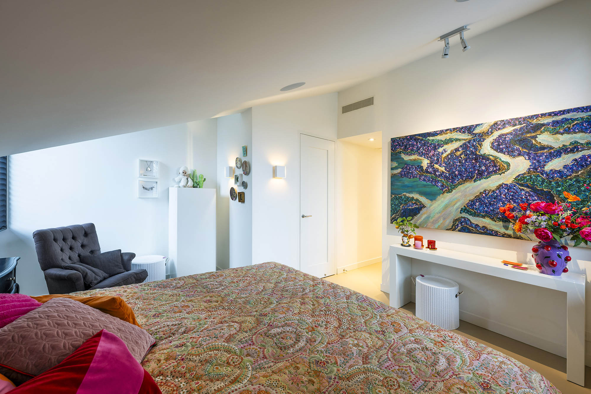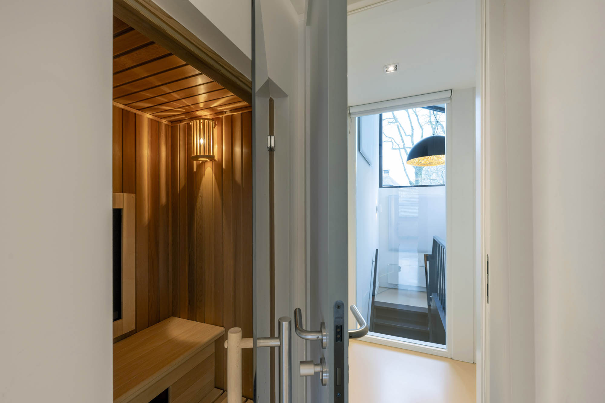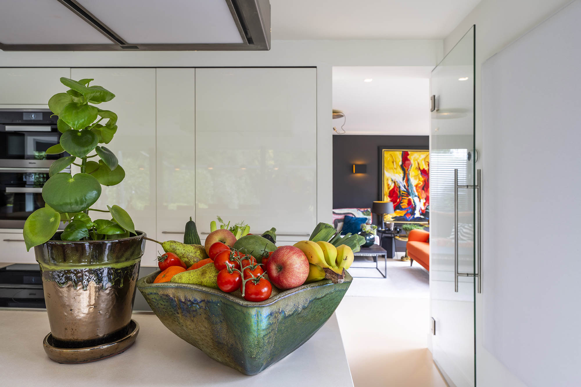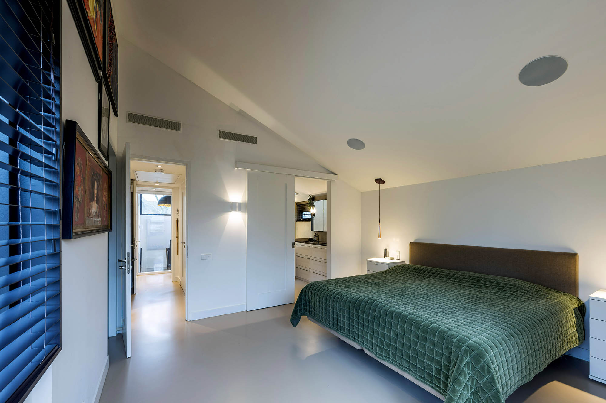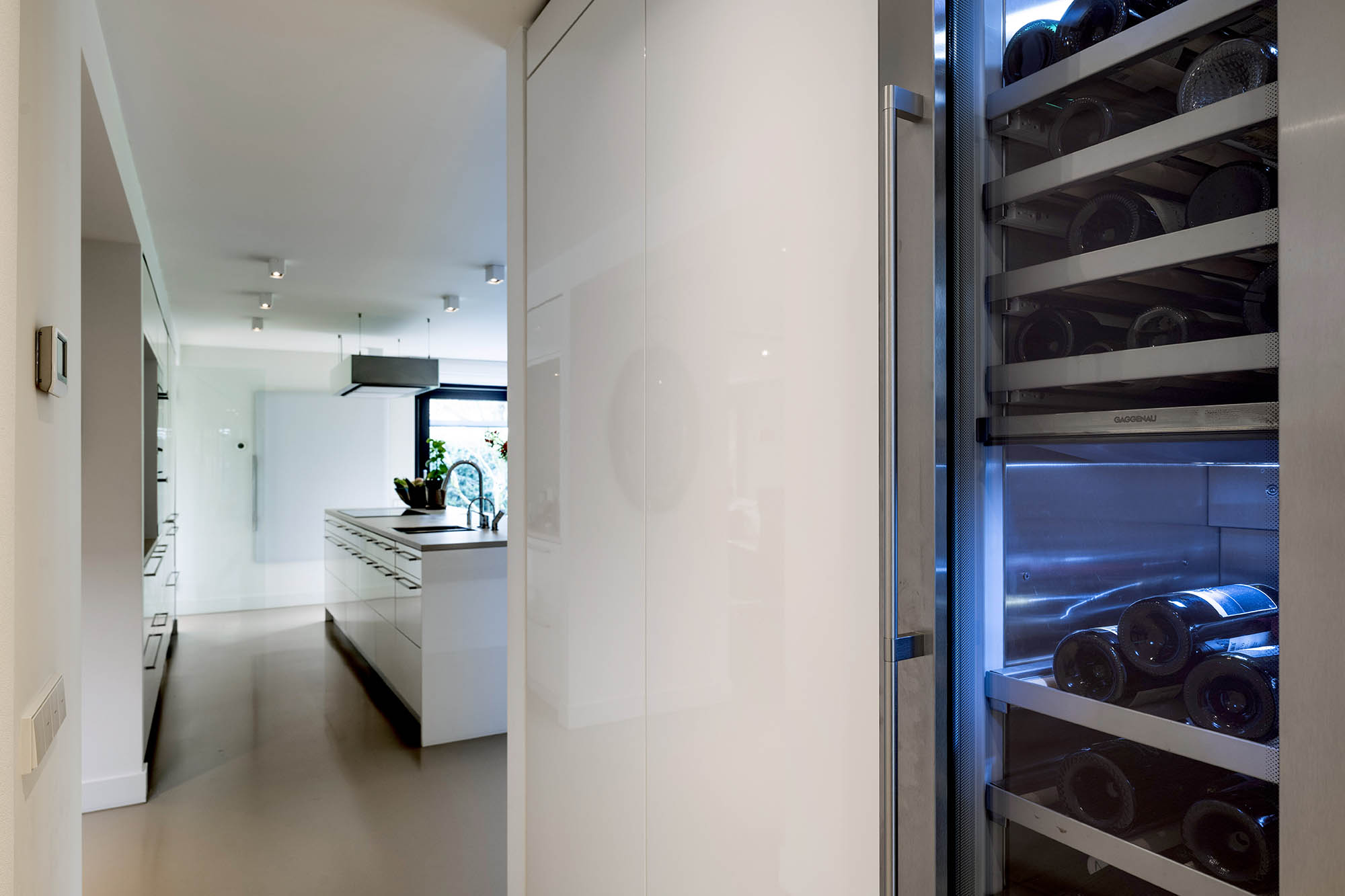 De sfeer in de keuken wordt extra versterkt door de doorkijk gashaard, die deze ruimte verbindt met de ‘blue room’: een gave werk- en leeskamer met maatwerkkasten. Tussen de keuken en het atelier bevindt zich praktische kastruimte en een wijnklimaatkast. Daarnaast zijn er een technische ruimte en een royale wasruimte aanwezig.